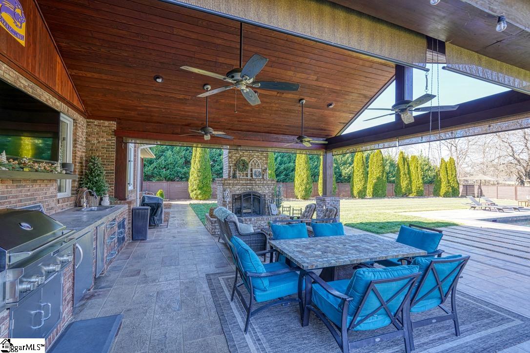 Beautifully maintained 3 bedroom/2.5 bath home with luxurious in-ground pool, located in Boiling Springs. Open the front door, and homeowners are welcomed by beautiful Brazilian Cherry hardwood floors, and raised ceilings. The living room features a cozy fireplace, wet bar area, and an immaculate view of the resort style backyard. The kitchen is equipped with bar seating, beautiful countertops, a gas cook top, and a double oven with convection and microwave. The master bedroom is complete with a large walk-in closet, a full bathroom featuring a double vanity, oversized tub, heated floors and newly tiled walk-in shower with dual shower heads. The master bedroom, and an additional bedroom also have access to a private screened porch. The laundry room features ample cabinet space perfect for extra storage space. Two additional bedrooms and a full bath allow for comfortable space for family and guests! Invite your friends and family over for fun outdoor entertaining, and sit back and relax by the salt water gunite pool. The backyard also features a covered porch with a vaulted ceiling, a custom built fireplace designed during current ownership, and a fully equipped outdoor kitchen. The pool house has double entrance on the front and rear entrance perfect for storing lawn equipment and/or pool supplies. Make this home your own and schedule a showing today! Additional updates during ownership include: 2 new heat & air units with dual fuel, some windows replaced, concrete resurfacing/painting around pool, outdoor living area, pool house and walkways, built masonry outdoor fireplace, refinished hardwood floors, new tile in master bathroom shower, replaced kitchen refrigerator and dishwasher, installed vapor barrier with drain system underneath house, installed French drains throughout property, new pool pump, new salt cell converter and new interior paint.