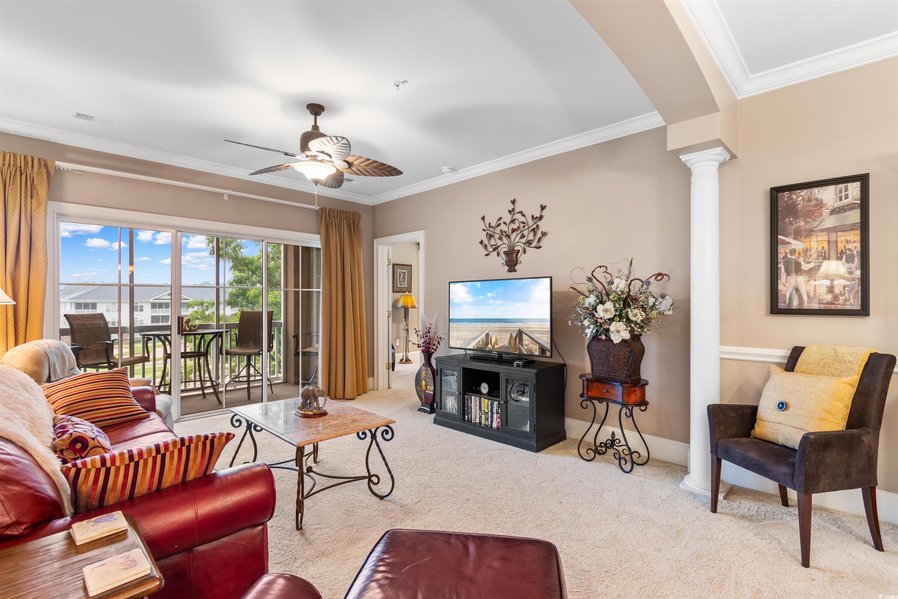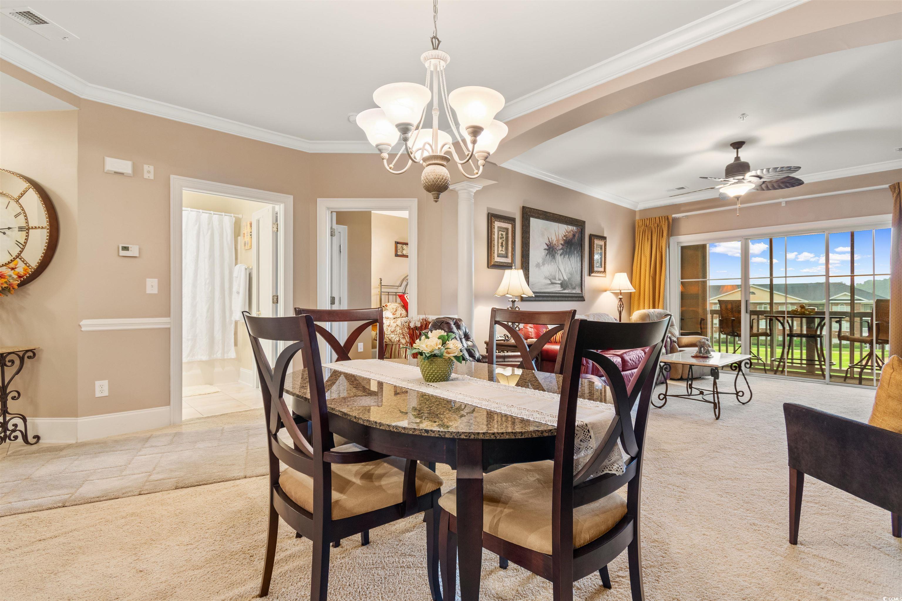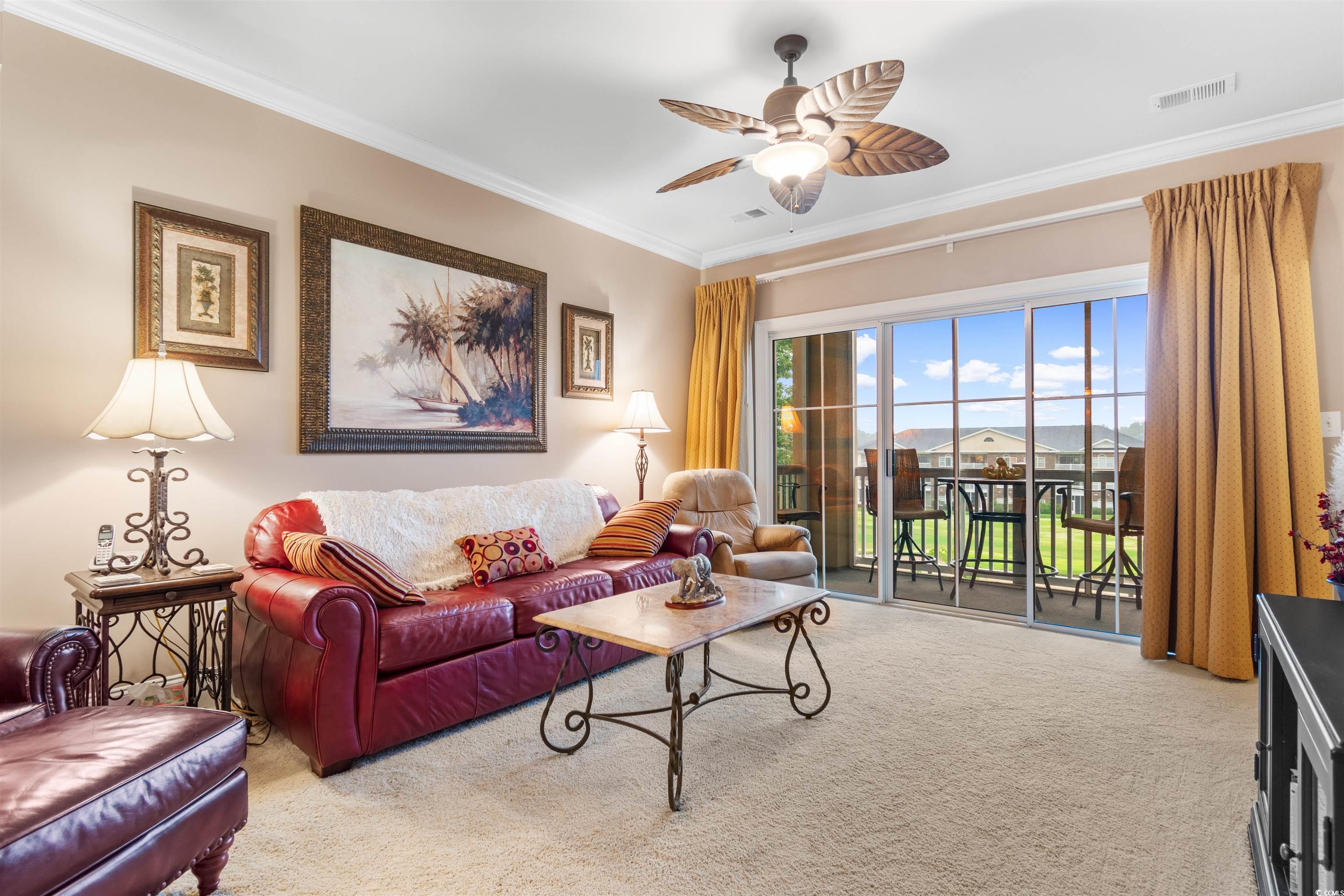 **Luxury Condo in Barefoot Edgewater - Overlooking the 15th Hole of the Norman Course** Experience unparalleled luxury living in the prestigious Barefoot Edgewater community, an exclusive Intracoastal Waterway enclave. This exquisite two-bedroom, two-bath condo offers breathtaking views of the 15th hole on the Norman course, making it a golfer's paradise. Step inside to discover a spacious, fully furnished living area adorned with crown molding and tray ceilings, creating an atmosphere of sophistication. The modern kitchen boasts stainless steel appliances and solid surface countertops, perfect for culinary enthusiasts. The master suite is a sanctuary of comfort, featuring a his-and-her walk-in closet, a luxurious bathroom with a dual vanity, a Jacuzzi-style tub, and a separate shower. Additional conveniences include climate-controlled storage upstairs, extra storage in the garage, and garage parking. Relax on the screened-in balcony while enjoying the serene views. As part of this gated community, you'll have access to a range of amenities, including a private community pool on the Intracoastal Waterway, a clubhouse with an exercise room, and secure punch code entry to both the building and neighborhood. Don't miss your chance to own a slice of paradise in one of the most sought-after locations on the coast! Barefoot is a 2300-acre master-planned community featuring a marina, 4 championship golf courses, sidewalks, lakes, pools, on-site restaurants, shopping and private beach cabana. Come enjoy the Barefoot life! All showings must be accompanied by an licensed/active SC agent.