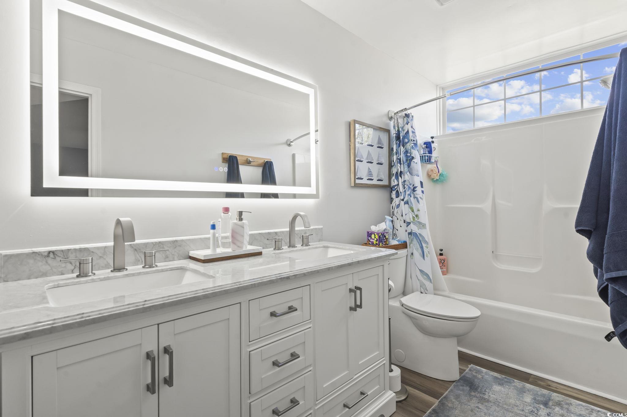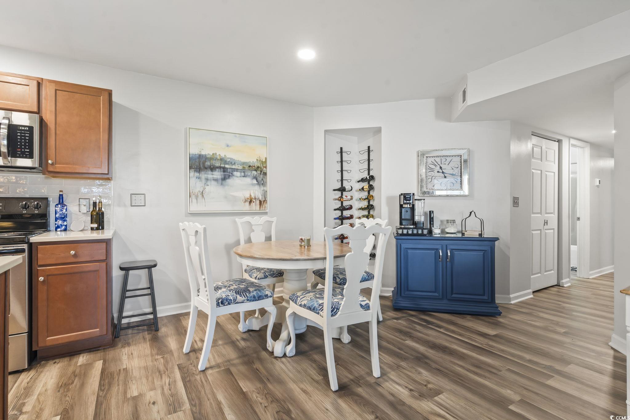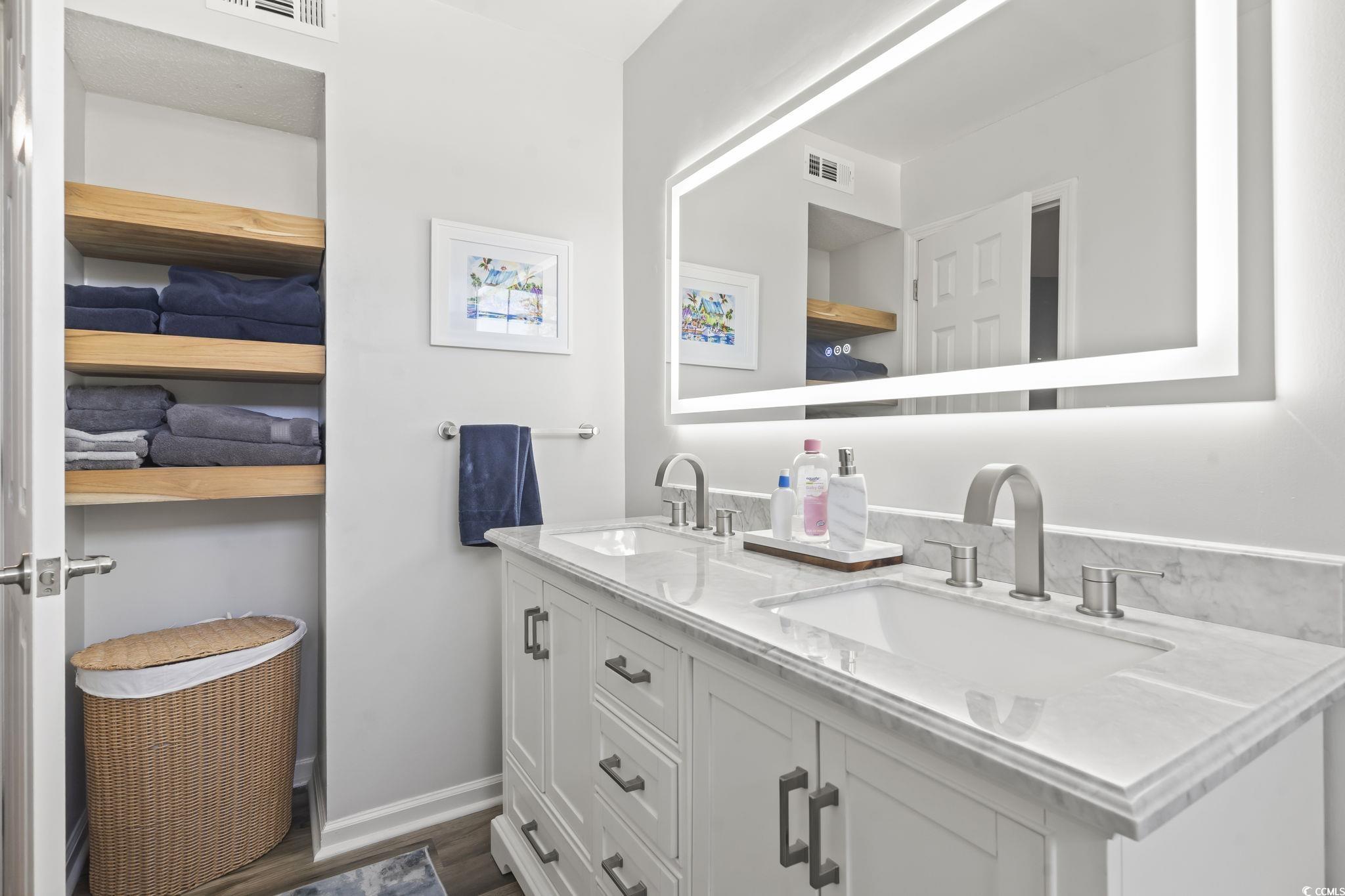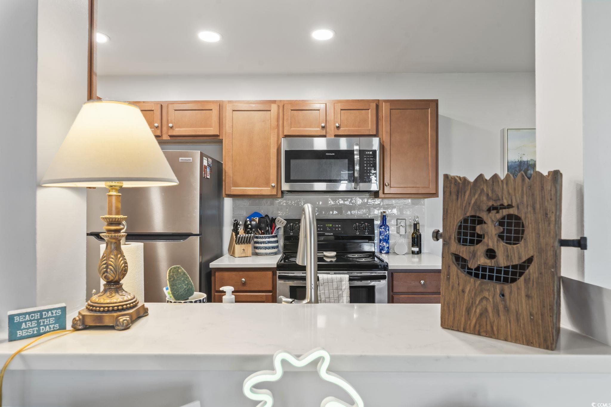 Welcome to 2181 Clearwater Dr. in Surfside Beach! Just minutes from the beach, shopping, dining, and attractions, this beautifully maintained condo is packed with upgrades. Updates include: appliances (2023), new windows/siding (2023), heat pump with wi-fi thermostat (2024), and water heater (2024). Kitchen remodel (2025) with quartz countertops, new cabinets, sink & faucet. Master suite offers dual custom closets; master bath (2024) features teak shelving, double vanity, heated/fog-free mirror & upgraded bluetooth/night-light vent. Both baths include upgraded vents. Additional highlights: custom storage, all new lighting, outdoor storage converted to workshop, freshly screened patio (2024) with Alexa lighting overlooking the pond. Truly move-in ready with modern comfort and beachside living! Square footage is approximate and not guaranteed. Buyer is responsible for verification.