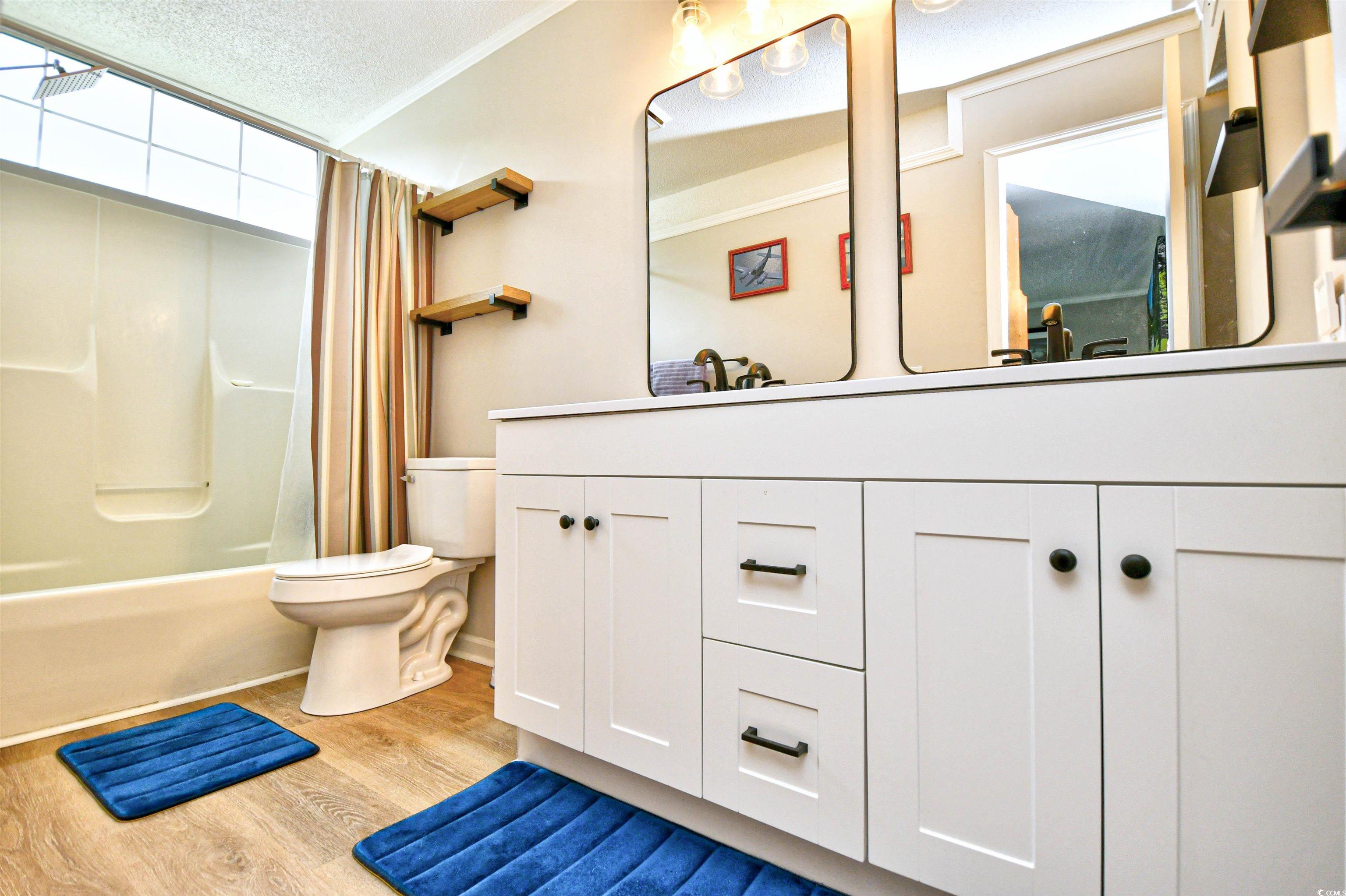 Contemporary, opulent, and poised for you to make it your residence in the picturesque Surfside Beach, SC. Experience authentic luxurious southern living in this entirely renovated top-floor, end unit within this remarkable community, located just minutes from both the airport and the beach! Introducing this 3-bedroom, 2-bathroom condominium in the highly sought-after South Bay Lakes. You can relish a view of the pond from your screened-in deck, which also features a spacious storage room. With only an 8-minute drive to the Atlantic Ocean and excellent amenities within the community, you could not desire anything more. No costs were spared in this renovation, and the results are evident! New luxury vinyl plank (LVP) flooring extends throughout the entire unit, enhanced by custom blinds and crown molding throughout the 1,200 square feet. The unit has been freshly painted, and new hurricane-grade windows have been installed. The kitchen showcases stunning white quartz countertops, new soft-close shaker cabinets, and Whirlpool stainless steel appliances. A fireplace with a new wood mantel is as a striking centerpiece in the living and dining area. Both guest bedrooms come with their own closets and upgraded ceiling fans, while the full guest bathroom has been modernized with a new toilet, vanity, mirror, and lighting. Enjoy the convenience of a full-size washer and dryer, along with a laundry room that offers ample shelf space for storage. At the end of the unit, you will discover an oversized master suite that features TWO closets and a private bathroom, completely renovated with a double vanity, mirrors, and shelving. A new storm door on the unit is on it's way with new paint for front door. The HOA is responsible for maintaining the exteriors, trash removal, water/sewer, landscaping, and maintenance. Your HOA fees also encompass cable (Spectrum Premium Cable), high-speed internet, semi-annual dryer duct cleaning, and quarterly pest control. "Condo+2 pools+beach = Paradise"