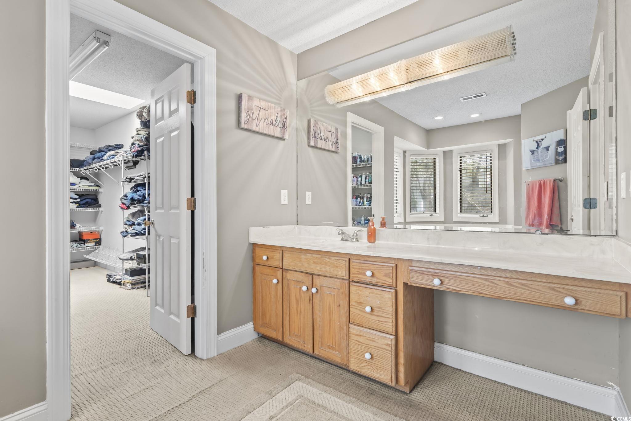Situated in the gated golf community of Prestwick, this 4-bedroom, 3.5-bathroom home offers both comfort and convenience. Featuring a large kitchen with solid surface countertops and stainless steel appliances, this home is perfect for those who love to cook and entertain. The primary suite provides a relaxing retreat with an en-suite bathroom and a walk-in closet, while the additional bedrooms offer plenty of space for family or guests. The expansive fenced-in backyard is great for outdoor gatherings or pets, and the three-car garage ensures ample parking and storage. Prestwick is a well-maintained community known for its mature landscaping and top-tier amenities, including full-time security, an Olympic-sized pool, and tennis courts. Conveniently located east of Hwy 17 Bypass, this home is just minutes from the beach, shopping, and dining. ____For more information, contact the listing realtor or your real estate professional. All measurements and data are reliable but not guaranteed; purchasers and agents are encouraged to verify.