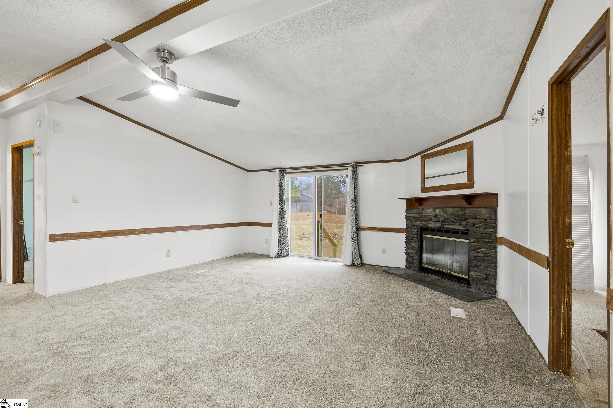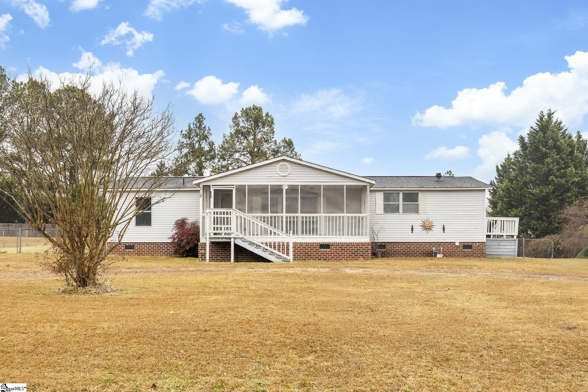 219 Campbell Lake Road offers a flexible opportunity on just over half an acre with NO HOA, conveniently located in the heart of Greer. The 3-bedroom, 2-bath home features a huge screened front porch, providing a great space for relaxing and spending time with friends and family. The open-concept floor plan includes a living room with a fireplace and a spacious dining area. The kitchen provides ample prep space and connects easily to the main living areas. A walk-in laundry room off the kitchen includes a separate exterior door for added convenience. The split bedroom floor plan allows privacy for the primary suite, which features an attached bath with dual vanities and a walk-in shower. Two secondary bedrooms share a hall bath. The large, fully fenced backyard includes multiple outbuildings suitable for workshops, storage, or even a she-shed while still offering plenty of space for gardens, playsets, and furry family members! Conveniently located just off Highway 14 in Greer and minutes from Wade Hampton Boulevard and downtown Greer’s shopping, dining, and entertainment. Sold AS IS.