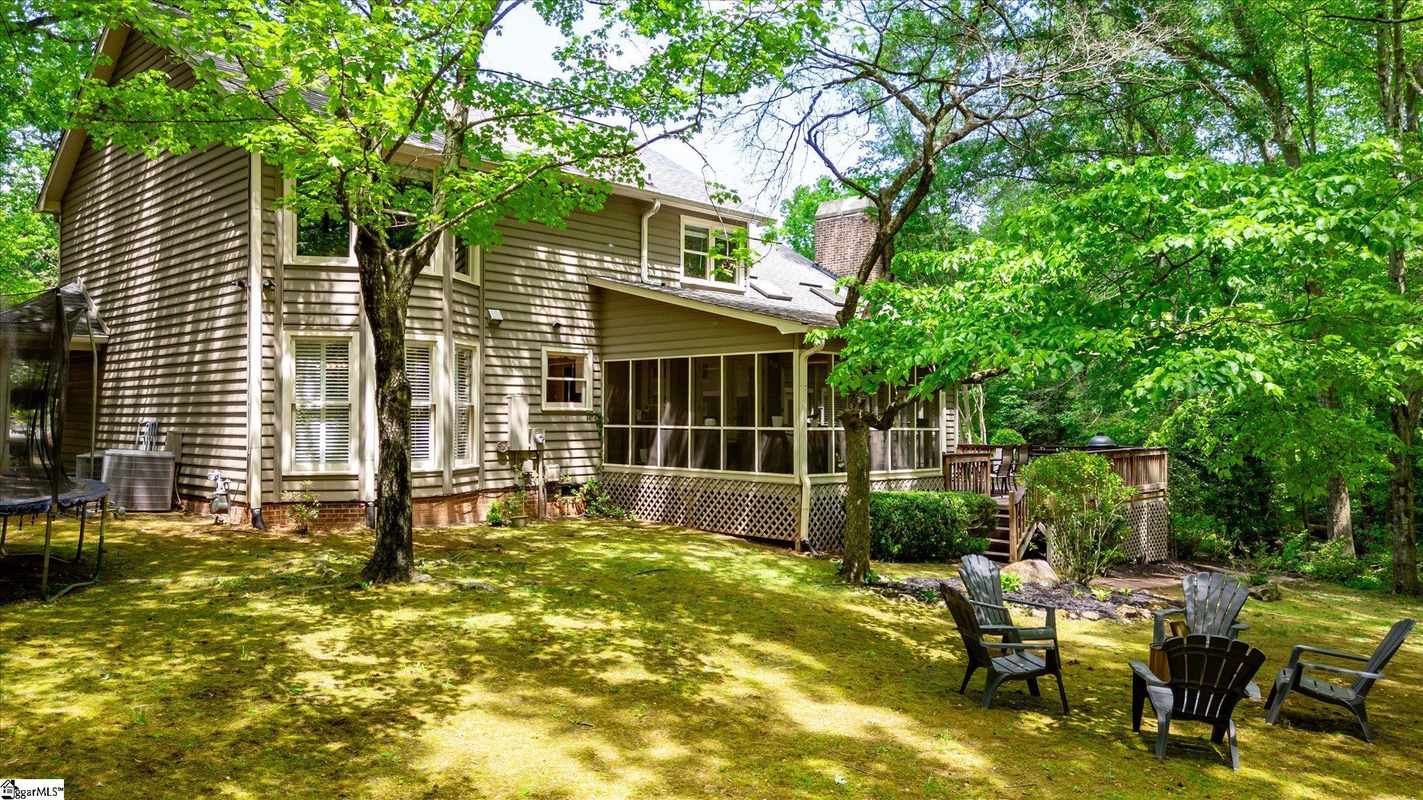 Tucked on a quiet cul-de-sac in the desirable Pelham Road area, this well-maintained 4-bedroom, 3-bath home sits on nearly an acre of private, wooded land that delivers a rare sense of seclusion just in a small community with no HOA and only minutes from Greenville's conveniences. A long driveway and mature trees set the tone for this peaceful setting. Inside, the home blends traditional character with thoughtful improvements and a comfortable, functional layout. The main level includes a guest bedroom and full bath, ideal for visitors or flexible use. The vaulted great room features built-in shelving and a gas fireplace, while the kitchen connects seamlessly to the breakfast area overlooking the backyard. Improvements completed during the current ownership include updated tile flooring, vanity, and toilet in the second-floor bathroom, interior painting, replacement of the upstairs carpet, updated screening on the back porch, and an epoxy-coated garage floor. Upstairs, the primary suite enjoys peaceful backyard views, a spacious walk-in closet, and a private bath. Two additional bedrooms share a Jack-and-Jill layout, along with a bonus room and a large laundry area. Outdoor living includes a screened porch and expansive wooded yard with a creek, creating a quiet, natural retreat. Conveniently located near I-385, downtown Greenville, hospitals, shopping, and dining. A private setting, thoughtful improvements, and an exceptional location come together in this inviting home. Note: Special Financing available on this property from SIRVA Mortgage.