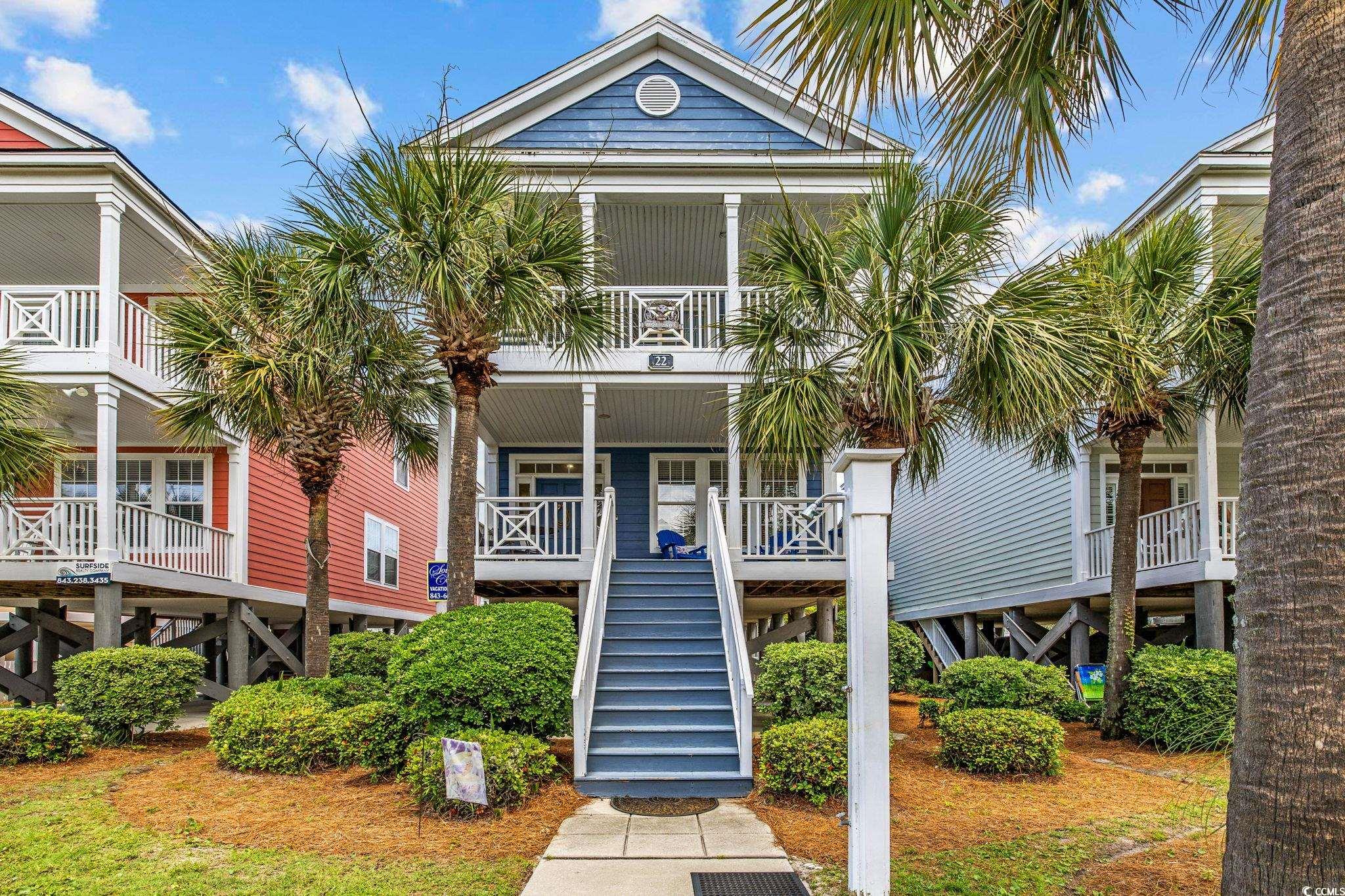 LOCATION LOCATION LOCATION Raised Beach House – 4 Bed / 4 Bath. This fully furnished charming, raised beach house offers four bedrooms and four full bathrooms and provides a seamless turnkey experience—perfect as a vacation rental or full-time coastal home. The main floor includes a family room, dining area, laundry, bedroom, full bath and a fully equipped kitchen with breakfast bar. Also on the first floor is the main entrance with a deck and stairs leading to Ocean Blvd. The spacious second floor has 3 additional bedrooms including the master bedroom with an ensuite bathroom and a second-floor balcony offering ocean views, a bunk area that can be used for storage and 2 additional full baths. Durable LVP flooring and tile flooring throughout. The raised beach-style construction offers lots of parking underneath and a storage area. Part of the Portobello III community, just steps from the beach, with shared access to a community pool. Ideal vacation rental or coastal retreat: fully furnished and move-in ready. PRIME SURFSIDE BEACH LOCATION: walk to the pier, beach restaurants, and entertainment.