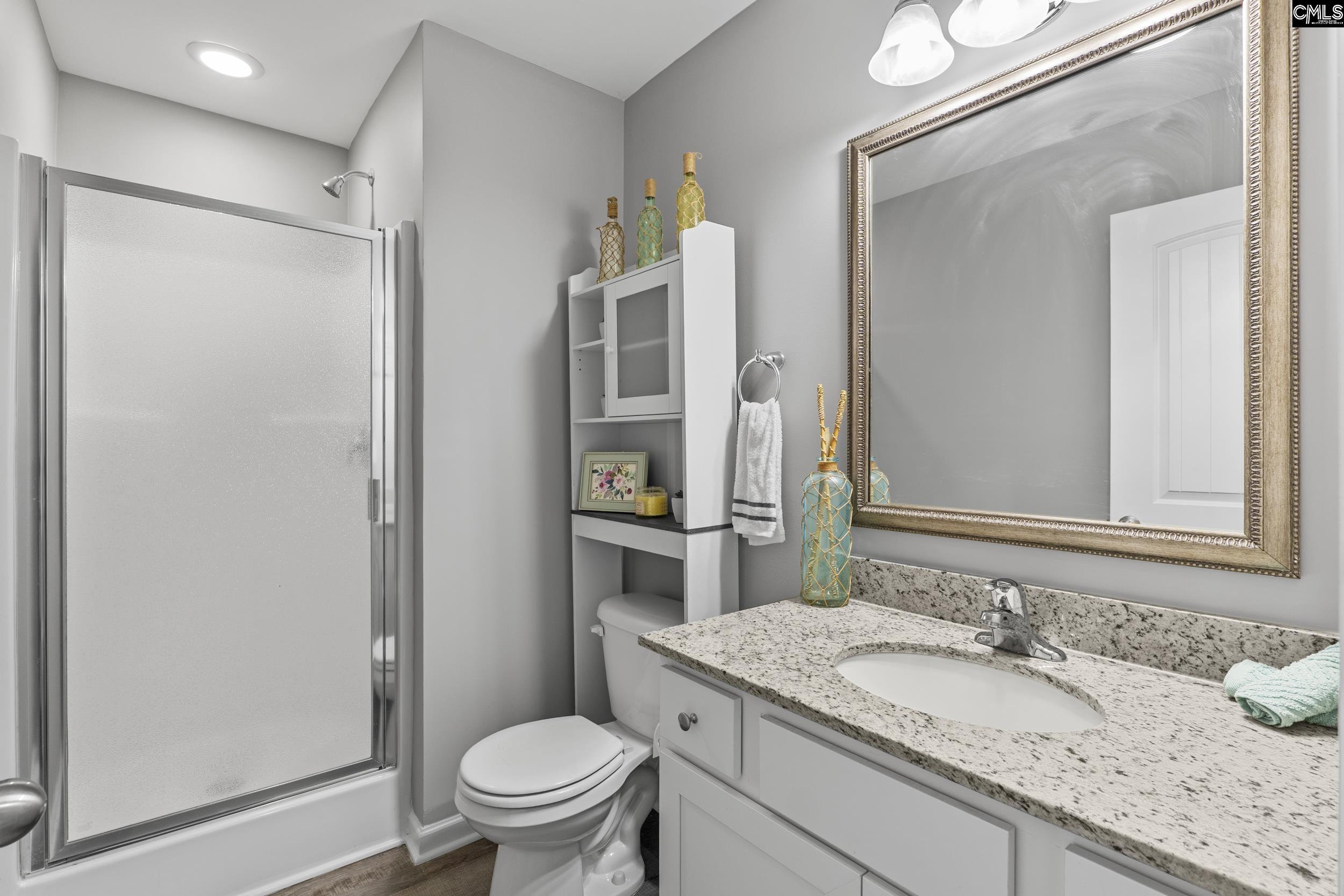 Sitting on over a half acre lot and nestled in a quiet cul-de-sac, this spacious 5 bedroom 3 bath home meets modern comfort with elegant details. The Bentgrass "B" floor plan features a bedroom and full bath on the main level. The kitchen offers a large island with granite countertops, white cabinets and stainless steel appliances, gas stove with a spacious eat in area. The main level has luxury vinyl hardwoods throughout and offers an open floor plan with a gas fireplace. Upstairs is the spacious primary bedroom with primary on-suite featuring double vanities, granite countertops, tub and separate shower. Also upstairs you will walk into an extra large flex space and laundry room. Completely fresh paint throughout the home including the garage! Covered back porch and lots of outdoor space. Extra long driveway. Washer and dryer convey. Refrigerator conveys. VA assumable loan @ 3.99! Close to I-20, Shaw AFB, Downtown Camden and shopping. Make an appointment to see this home! Disclaimer: CMLS has not reviewed and, therefore, does not endorse vendors who may appear in listings.