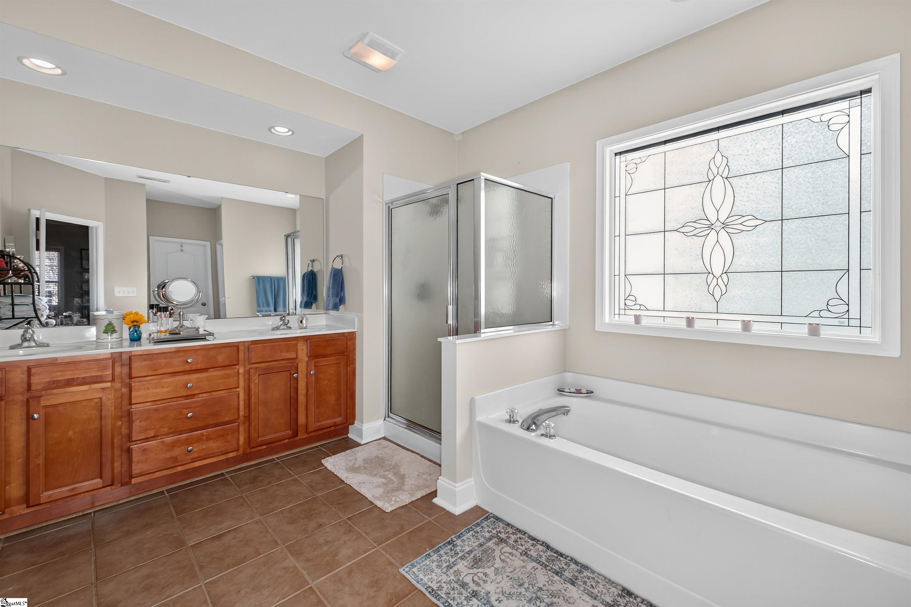 ‘Tis the Season to Find Your Next HOME! This spacious 4-bedroom, 3-bath beauty offers over 2,700 sq. ft. of comfortable living with a highly desirable layout. Enjoy main-level living with the primary suite and a second bedroom with full bath—ideal for guests or multigenerational needs. Step inside to soaring ceilings and stunning floor-to-ceiling windows that flood the home with natural light. The open-concept design features a chef’s kitchen with granite countertops, abundant cabinetry, and updated appliances. Hardwood floors flow through the main living areas, leading to a great room with a cozy fireplace—perfect for entertaining. The formal dining room and breakfast area provide flexible spaces for everyday living. Upstairs offers two additional bedrooms, a full bath, and a spacious bonus/media room with a large closet—great for storage or a potential 5th bedroom. Relax outdoors on your private covered porch overlooking the fenced backyard. A welcoming front porch and true two-car garage complete the package. Located in one of Simpsonville’s most sought-after neighborhoods, Verdmont offers wonderful amenities including a community pool, playground, and green spaces—all minutes from shopping, dining, and medical facilities. Convenient to downtown Simpsonville, Fountain Inn, and Greenville. Recent updates: 2025 roof, A/C unit (second level), microwave, smoke alarms, carpet, and garage doors; 2024 range; 2023 dishwasher and disposal! Move right in and celebrate the holidays in style!
