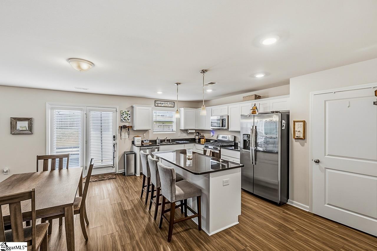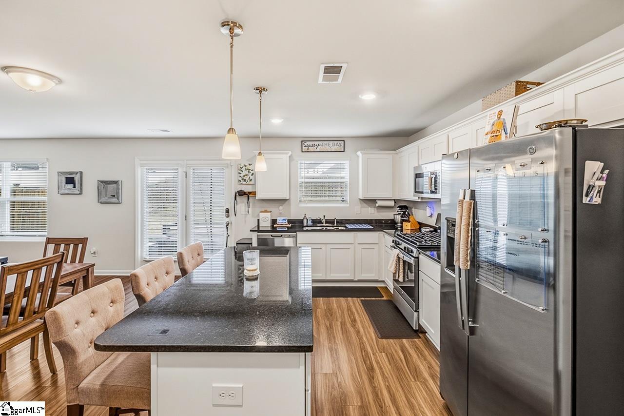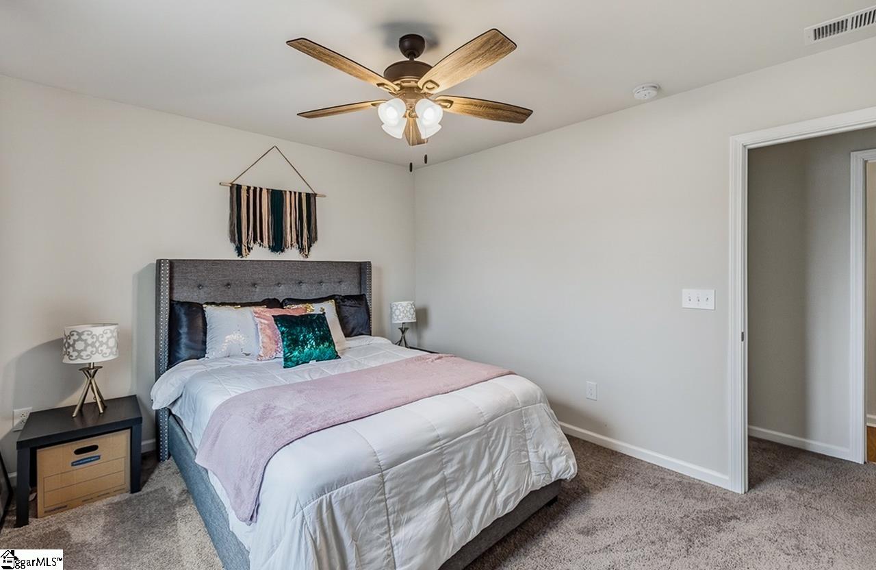 Nestled in the sought-after 29605 zip code, this stunning, better-than-new home offers an unparalleled location near the Conestee Nature Preserve, a brand-new Publix just two minutes away, and easy access to premier shopping, dining, schools, and hospitals of Greenville, Mauldin, Simpsonville, and Fountain Inn via nearby I-385 and I-85. Residents of the Harrington community enjoy luxury amenities, including two sparkling pools, a cabana, expansive green spaces, and cozy fire pits. The home itself is a showcase of thoughtful upgrades, featuring a large front flex room and a butler’s pantry that opens to a gourmet kitchen with quartz countertops and stainless steel appliances with a gas stove. The open first floor includes LVP flooring and a gas fireplace with a slate surround, while the upstairs opens into a massive loft and spacious bedrooms, all featuring newly installed ceiling fans. The master suite serves as a true retreat with a double vanity and a glass-enclosed shower. The exterior is equally impressive, boasting a fenced backyard with solar lights that backs onto a protected green area, ensuring permanent privacy. Entertaining is effortless on the rear patio, which includes a mounted television with a protective cover. To ensure peace of mind and property integrity, a French drain system and gutters tied directly into the swale lines provide a permanent drainage solution so there is never any standing water. The home is positioned so the evening sun shines on the front, keeping the backyard cool and shaded for summer nights. The garage houses a gas tankless water heater, the main water valve, and an additional 220V outlet. Buyers also have the option to transfer the current HVAC protection plan for just $200 per year and take over the existing pest control contract and termite bond at $53.50 every 3 months. Ask about 100% financing options with $0 down and NO monthly PMI for qualified buyers through our preferred lender! This rare opportunity makes homeownership more accessible than ever in today’s market.