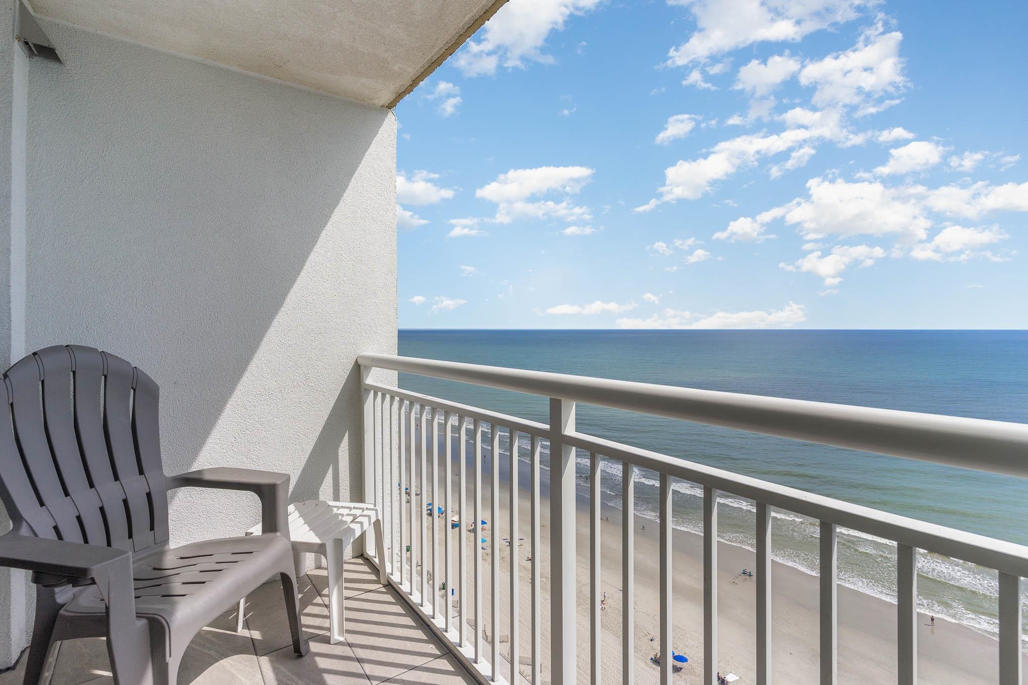 Experience coastal luxury living at its finest in this exquisite oceanfront one-bedroom, one-bath condominium nestled on the 17th floor of Paradise Resort in the vibrant South Beach area of Myrtle Beach. Revel in the unparalleled panoramic views that stretch as far as the eye can see from this elevated oasis. Paradise Resort spoils its residents with a plethora of on-site amenities, including indoor and outdoor pools, a lazy river, rejuvenating hot tubs, delectable dining options such as Sandals restaurant and Ben & Jerry's Ice Cream, and charming oceanfront picnic areas. Engage in friendly competition with games like cornhole or a game of chess on the giant board, stay active in the fitness center, or simply unwind in paradise. Upon entering, you're greeted by a spacious bedroom boasting two queen beds, ample storage space, and a flatscreen TV for your entertainment. A convenient closet houses a stackable washer and dryer, adding to the convenience of beachfront living. The full bathroom, adorned with a single sink bowl vanity and ceramic tile flooring, offers a serene retreat with a tub/shower combo. The galley-style kitchen exudes elegance with ceramic tile flooring, quartz countertops, and a stylish backsplash, complemented by a full set of white appliances. Whether you're preparing a gourmet meal or a quick snack, this kitchen is equipped to meet your culinary needs. Natural light floods the living room through sliding doors leading to your private oceanfront balcony, where you can savor breathtaking sunrises and sunsets. Additional sleeping space is provided by a convenient pull-down Murphy bed, ensuring comfort for additional guests. The living room also features a dining area with a table and chairs set and another flat-screen TV. Meticulously maintained by its current owners, this unit boasts recent upgrades, including luxurious vinyl plank flooring and enhanced molding, exuding a fresh and modern ambiance. Whether you're seeking a lucrative investment opportunity or a serene vacation retreat, this turn-key property is poised to exceed your expectations. Experience the epitome of coastal living at one of Myrtle Beach's top-rated properties, offering proximity to the endless attractions of the Grand Strand. Don't miss the chance to make this exquisite retreat your own. Note that this unit is on a lease plan and it is not on the on-site rental. Please contact the listing agent for further details. Owner is a licensed SC broker.