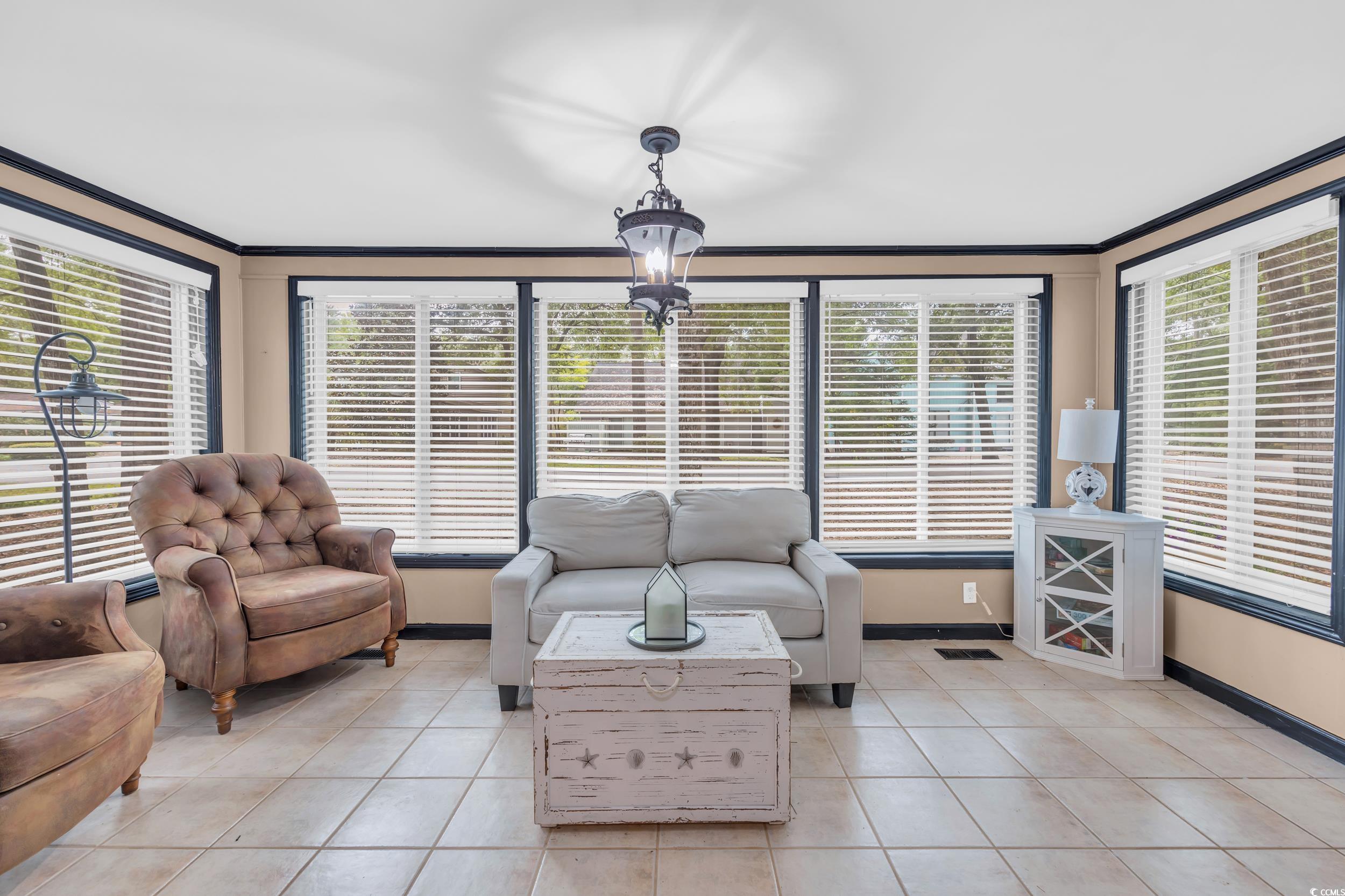 Discover this inviting 3-bedroom, 2 full bath ranch-style home perfectly situated in the sought - after gated waterway community of Windjammer Village! This charming property offers flexible/spacious living and dining areas, an updated kitchen, a cozy sunroom, a screened porch, and a 1-car garage—all set on a wooded .25 acre lot. All new windows, new siding and a newer HVAC Trane (2020). Windjammer Village provides outstanding amenities, including a community pool, private boat ramp, boat docks, RV and boat storage, a playground, and 24-hour security. The clubhouse is fully equipped with exercise facilities, pool table, ping pong, air hockey, and a library. Enjoy the best of coastal living with LOW HOA fees and a fantastic location on the waterway in Little River, at the northern end of the Grand Strand with easy access to Highway 17. Schedule your showing today!