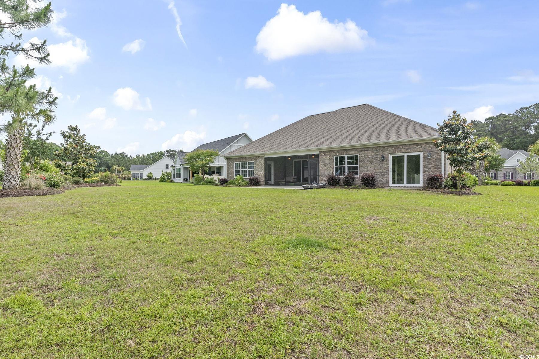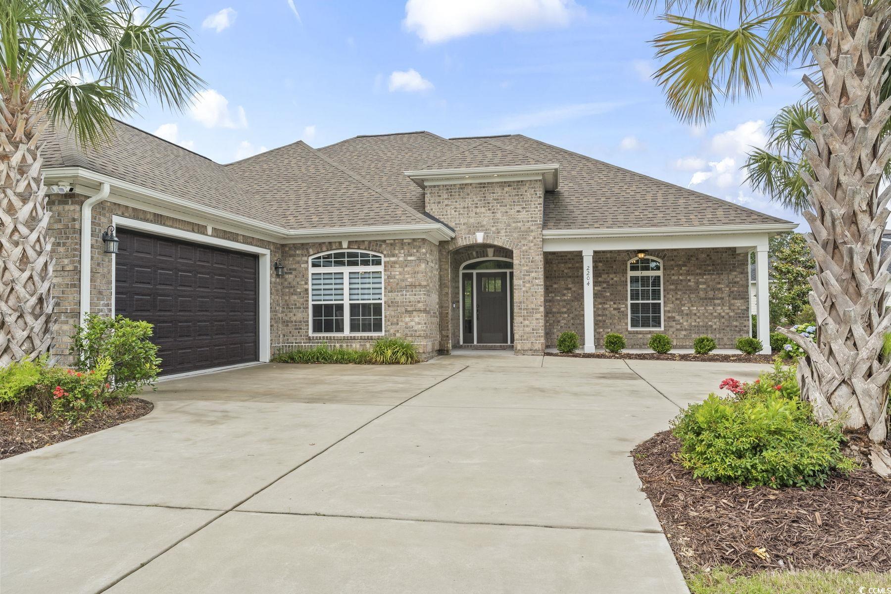 This meticulously maintained custom all brick ranch home offers 4 bedrooms and 2.5 bathrooms nestled on a lake view lot in the quiet golf course community. The open floor plan provides comfortable flow in the main living spaces and a split bedroom layout ensures added privacy. The spacious primary suite offers plenty of room for a sitting area and access to the screened in patio. This room features lake views, double tray ceiling with fan, custom walk-in closet, en-suite with double sink vanity, tiled shower with body jets and bench, and a modern garden tub. The main living area has a great room with double tray ceiling, a multi-sliding door that opens to the screened in porch expanding the inside out for all your entertaining needs. A formal dining area and breakfast nook can be found on either side of the kitchen. The gourmet chef's kitchen includes plenty of custom cabinets with soft close dovetail drawers and doors, stainless steel appliances including a natural gas range with tiled backsplash and pot filler, garbage disposal, and massive kitchen island with bar seating and pendant lighting. Luxury granite countertops that can be found in the kitchen, bathrooms, and laundry room. The laundry room also has custom cabinets over the washer/dryer with a stainless sink situated in between. Two of the bedrooms are adjoined with a jack and jill bathroom that has a double sink, tiled tub/shower with multi jet shower head. The 4th bedroom that can also be used as an office has beautiful glass French doors and a slider that leads to a patio in the backyard. The oversized 2 car side load garage has a utility sink, tankless gas water heater, and pull down steps to the attic. This home will not disappoint with it's natural hardwood and tiled floors through-out, plenty of closets for storage and natural light. The yard has been professionally landscaped with palm trees, has beautiful relaxing views of the lake in the back and offers plenty of parking. The amenities include a swimming pool, clubhouse, and sports courts offering a well rounded lifestyle.
