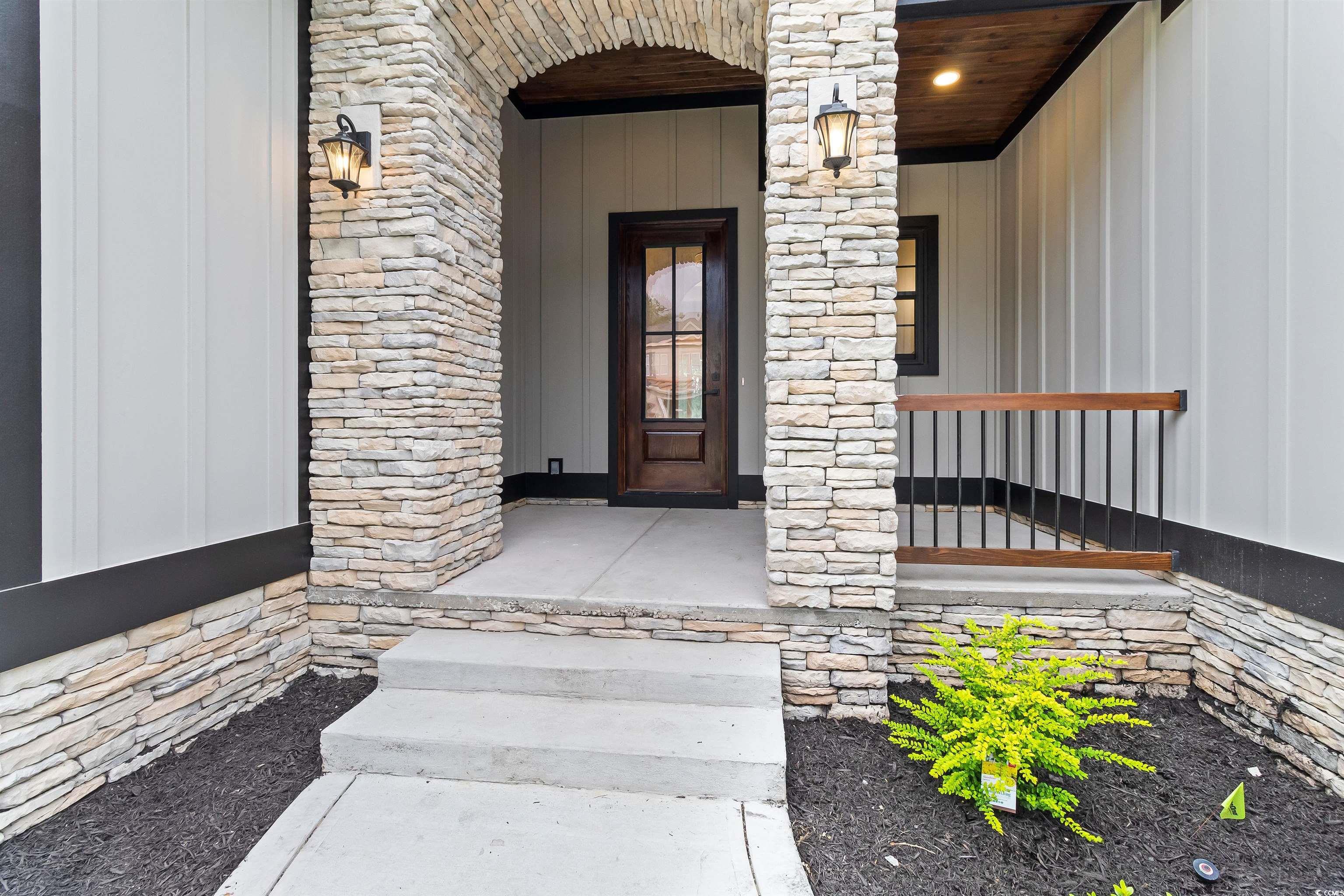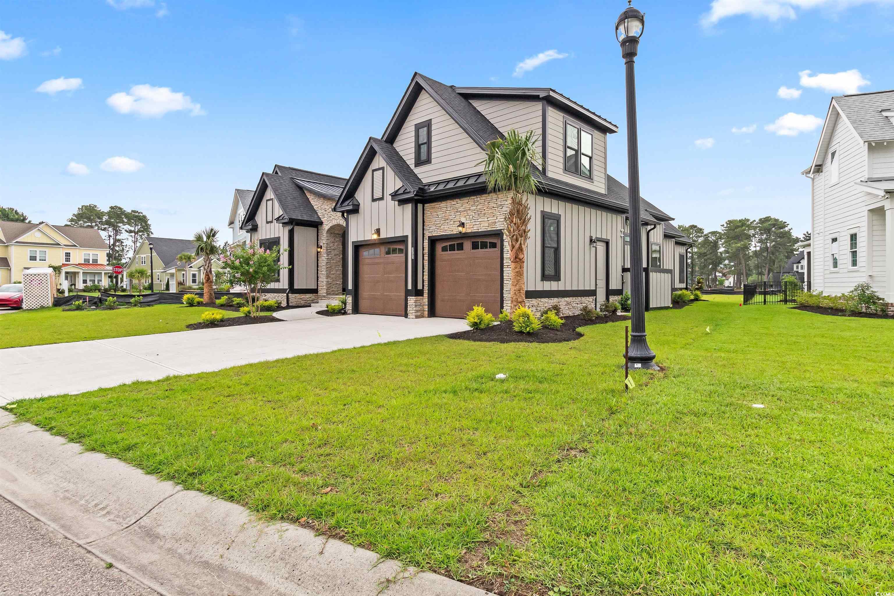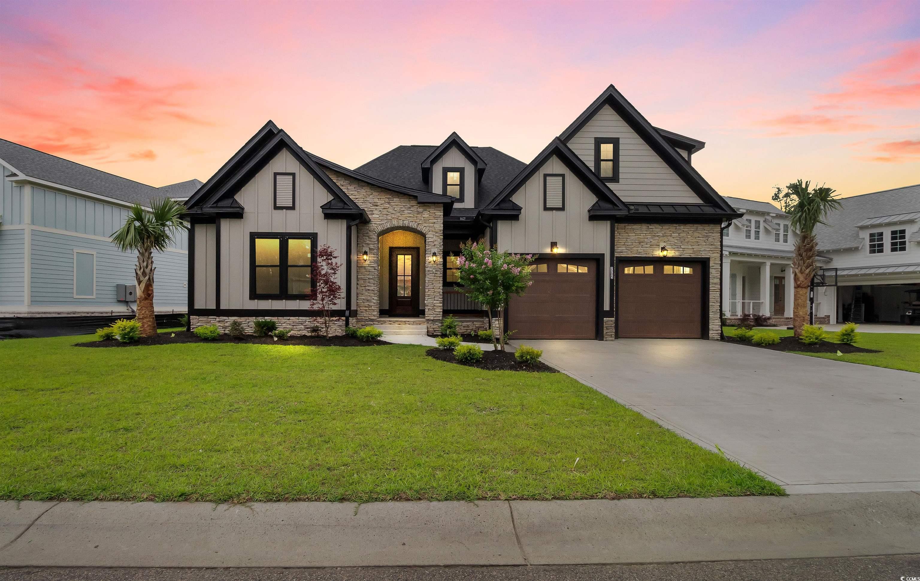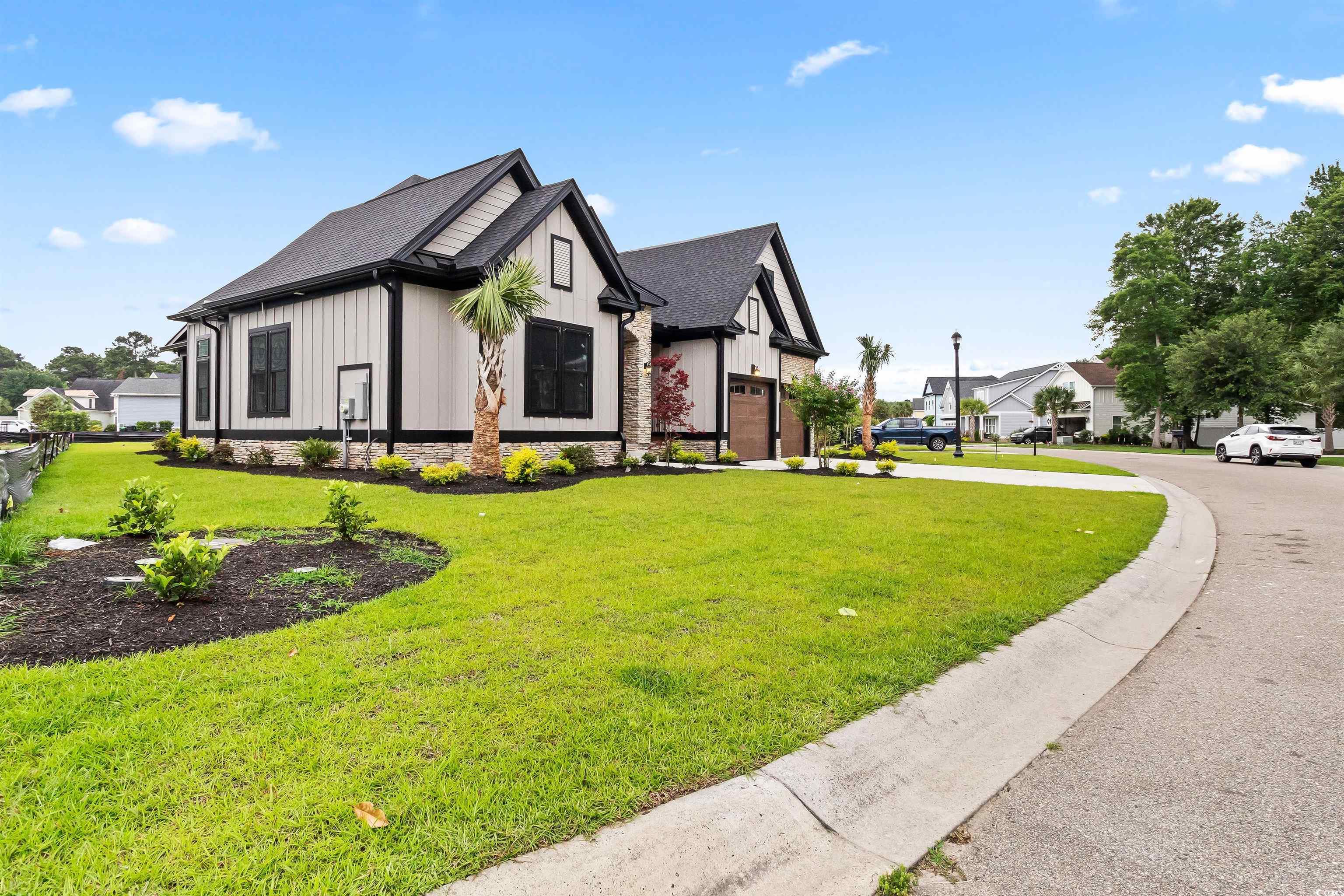 Introducing a Rare Opportunity: Brand-New Custom Lowcountry Home in Waterbridge Welcome to your dream home—an exquisite pre-custom residence nestled in the prestigious, resort-style community of Waterbridge. Crafted with architectural elegance and timeless Southern charm, the home’s exterior showcases board and batten siding, stone veneer accents, and painted metal roofing highlights that complement the asphalt shingle roofing. From the masonry front steps to the covered front porch, every detail has been meticulously designed to offer curb appeal with lasting sophistication. Step inside and be greeted by a spacious foyer that seamlessly transitions into a grand open-concept living space—boasting 12-foot ceilings, crown molding, and designer ceiling fans throughout. The heart of the home is an expansive great room, chef’s kitchen, and elegant dining area, designed for effortless entertaining and luxurious daily living. The gourmet kitchen is a culinary masterpiece, featuring a large center quartz waterfall island with bar seating, walk-in pantry, and plenty of space to gather. A thoughtfully placed powder room provides convenience for guests. Two generously sized guest bedrooms with ample closet space and a shared full bathroom are tucked away for privacy, ideal for family or visiting guests. The Owner’s Suite is a sanctuary of comfort, offering tray ceilings, a spa-inspired bathroom with a soaking garden tub, a luxurious walk-in shower, double vanity, and a private water closet. The suite also includes a walk-in closet with direct access to the laundry room—a feature as practical as it is elegant. The bonus room upstairs, complete with a full bathroom and closet, is the perfect flex space—whether you envision a media room, home office, or guest retreat. Additional features include a two-car garage with extra storage, and an irrigated, professionally landscaped yard adorned with coastal palm trees, magnolias, azaleas, and crepe myrtles, ensuring your home makes a lasting first impression. Sliding glass doors seamlessly connect your interior space with your covered outdoor area, creating the ideal setting for year-round indoor/outdoor living. This is more than a home—it’s a lifestyle. Don’t miss the opportunity to own a custom-built masterpiece in one of the Grand Strand’s most desirable gated communities. Schedule your private tour today and experience luxury coastal living at its finest. Closet shelving and finishing details are available for personalization and may be seamlessly integrated into offer considerations.