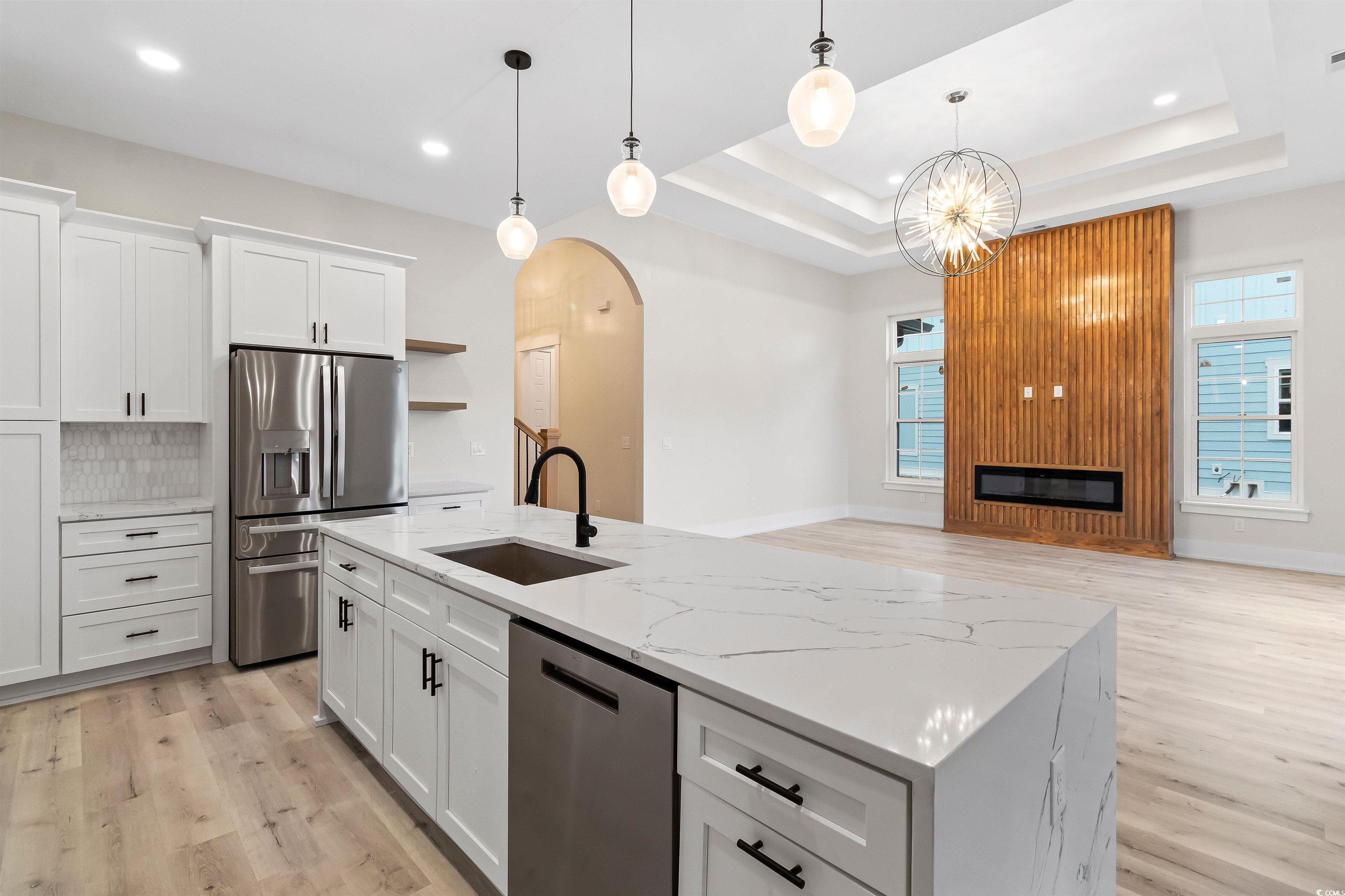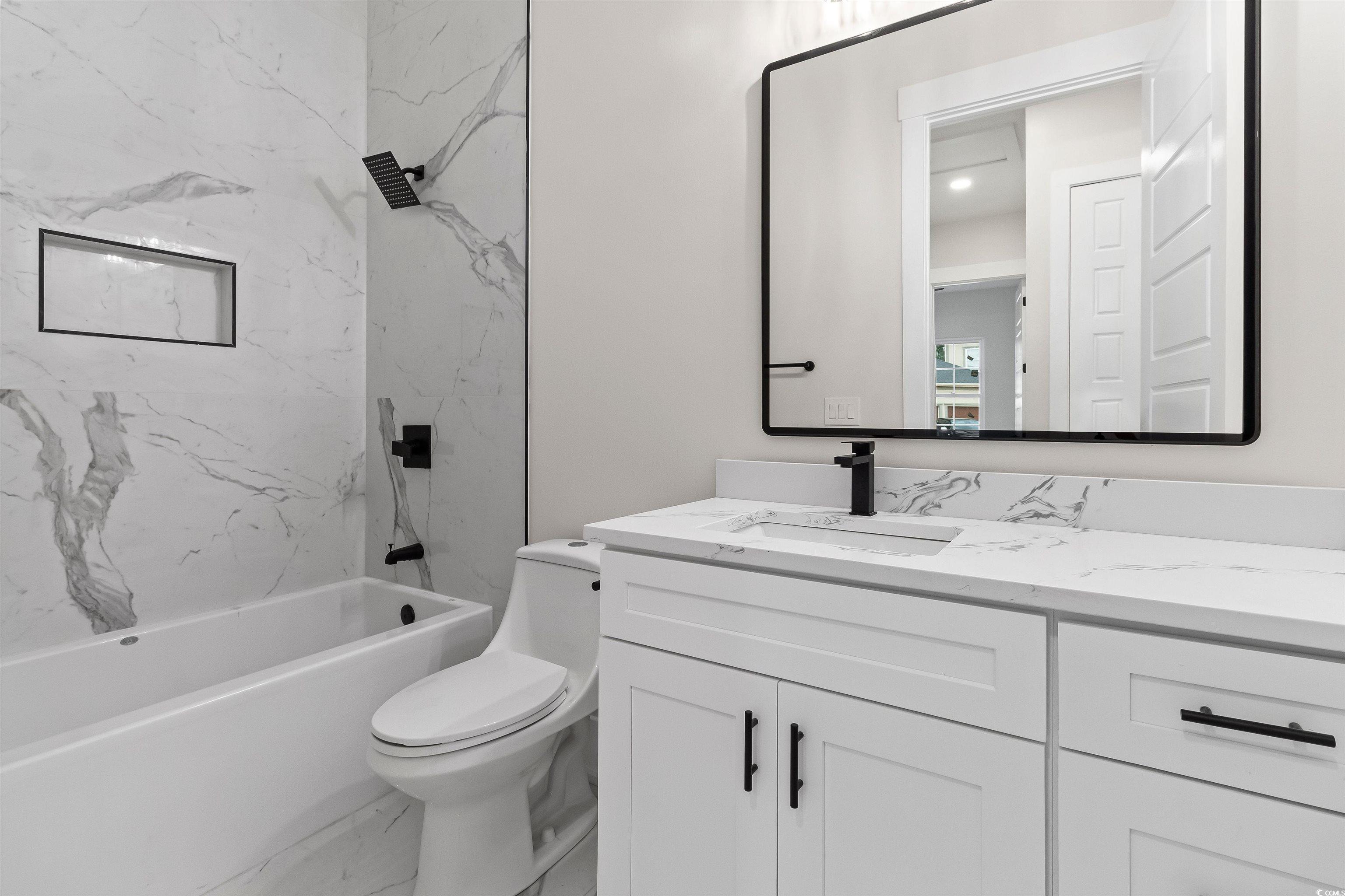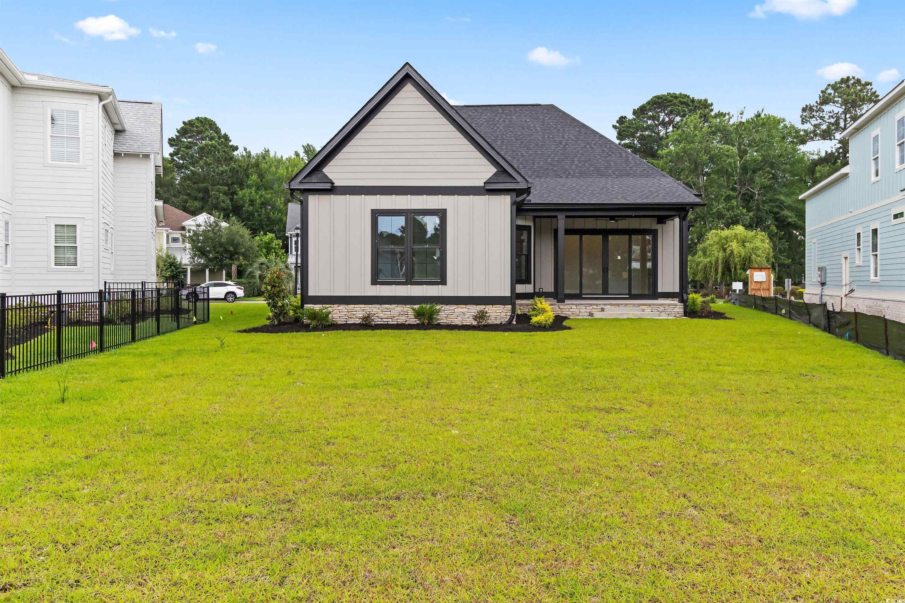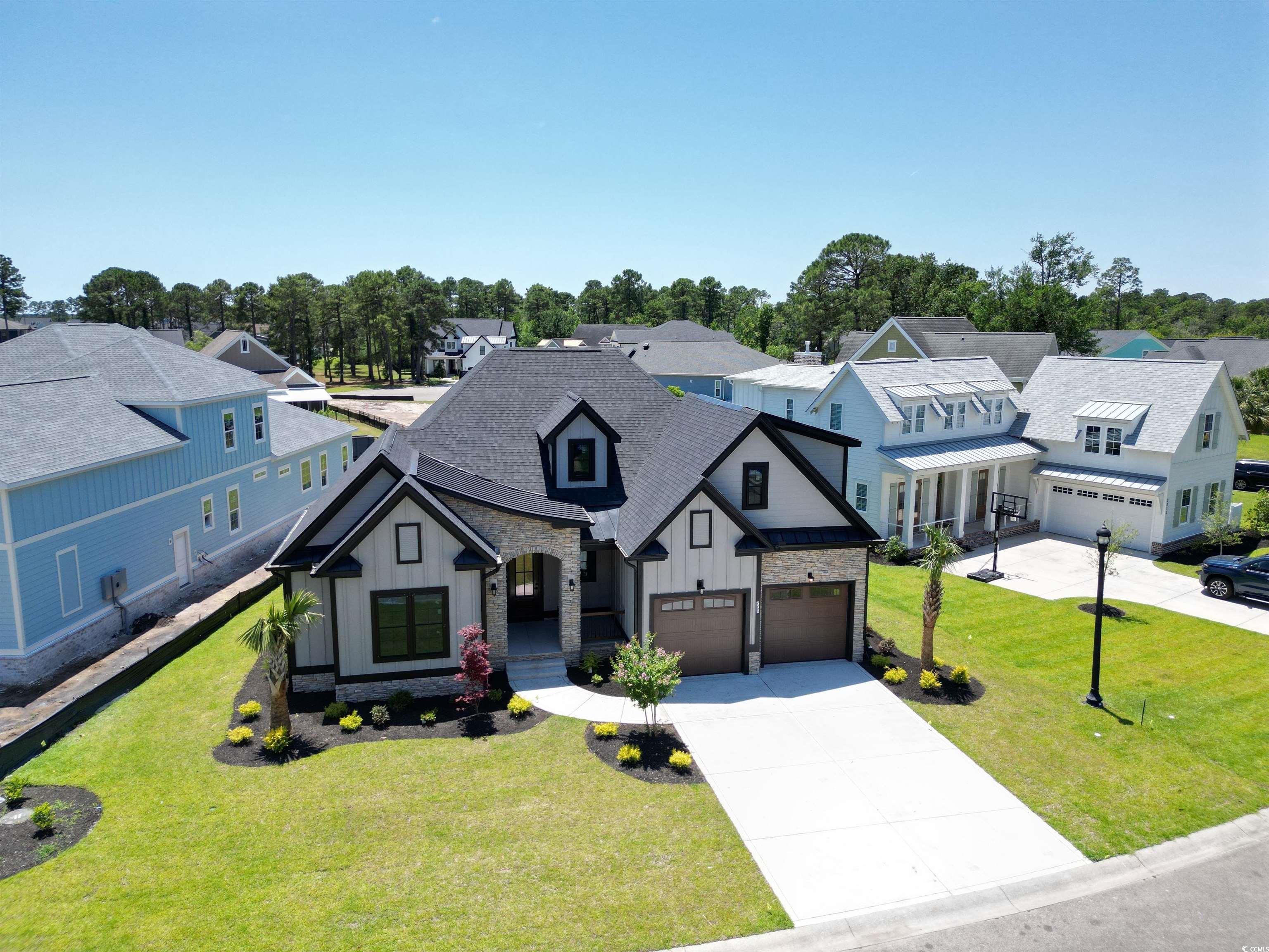 Introducing a Rare Opportunity: Brand-New Custom Lowcountry Home in Waterbridge Welcome to your dream home—an exquisite pre-custom residence nestled in the prestigious, resort-style community of Waterbridge. Crafted with architectural elegance and timeless Southern charm, the home’s exterior showcases board and batten siding, stone veneer accents, and painted metal roofing highlights that complement the asphalt shingle roofing. From the masonry front steps to the covered front porch, every detail has been meticulously designed to offer curb appeal with lasting sophistication. Step inside and be greeted by a spacious foyer that seamlessly transitions into a grand open-concept living space—boasting 12-foot ceilings, crown molding, and designer ceiling fans throughout. The heart of the home is an expansive great room, chef’s kitchen, and elegant dining area, designed for effortless entertaining and luxurious daily living. The gourmet kitchen is a culinary masterpiece, featuring a large center quartz waterfall island with bar seating, walk-in pantry, and plenty of space to gather. A thoughtfully placed powder room provides convenience for guests. Two generously sized guest bedrooms with ample closet space and a shared full bathroom are tucked away for privacy, ideal for family or visiting guests. The Owner’s Suite is a sanctuary of comfort, offering tray ceilings, a spa-inspired bathroom with a soaking garden tub, a luxurious walk-in shower, double vanity, and a private water closet. The suite also includes a walk-in closet with direct access to the laundry room—a feature as practical as it is elegant. The bonus room upstairs, complete with a full bathroom and closet, is the perfect flex space—whether you envision a media room, home office, or guest retreat. Additional features include a two-car garage with extra storage, and an irrigated, professionally landscaped yard adorned with coastal palm trees, magnolias, azaleas, and crepe myrtles, ensuring your home makes a lasting first impression. Sliding glass doors seamlessly connect your interior space with your covered outdoor area, creating the ideal setting for year-round indoor/outdoor living. This is more than a home—it’s a lifestyle. Don’t miss the opportunity to own a custom-built masterpiece in one of the Grand Strand’s most desirable gated communities. Schedule your private tour today and experience luxury coastal living at its finest. Closet shelving and finishing details are available for personalization and may be seamlessly integrated into offer considerations.