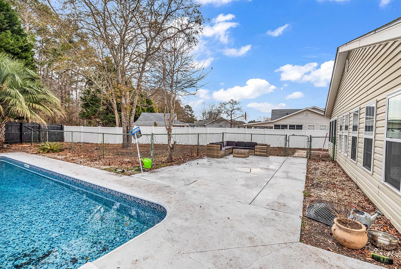 Welcome to 2208 Blair Ct, a beautifully updated home, conveniently located near both Conway and Carolina Forest. This spacious 4-bedroom, 2-bathroom residence offers a blend of modern updates and comfortable living, making it the perfect place to call home. Step inside and be greeted by fresh, new interior paint that brightens every room and enhances the home's open, airy feel. The kitchen is a standout feature, showcasing new appliances and a stunning epoxy-finished countertop on the island, creating a sleek and durable space for cooking and entertaining. Outside, your very own private oasis awaits! The inground pool and spa are ideal for relaxing or hosting guests, offering the ultimate in outdoor living. The large backyard is perfect for family gatherings, BBQs, or simply unwinding in a tranquil setting. Located in a quiet cul-de-sac, this home offers both peace and convenience, with easy access to local schools, shopping, dining, and major routes into Conway and Carolina Forest. Roof approximately 4 years old. Updates in 2025 include: Brand new pool liner and pool entry stairs, new variable speed pool pump and saltwater system. Outdoor hot tub, new water heater and Recessed Lighting Updated. Don't miss out on the opportunity to own this beautiful home! Schedule your private tour today and see why 2208 Blair Ct is the perfect place to call home.