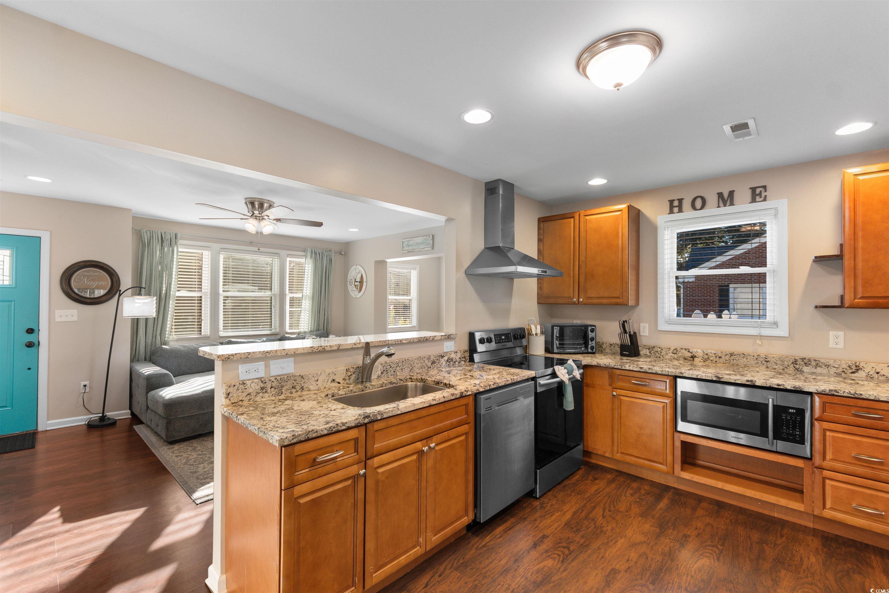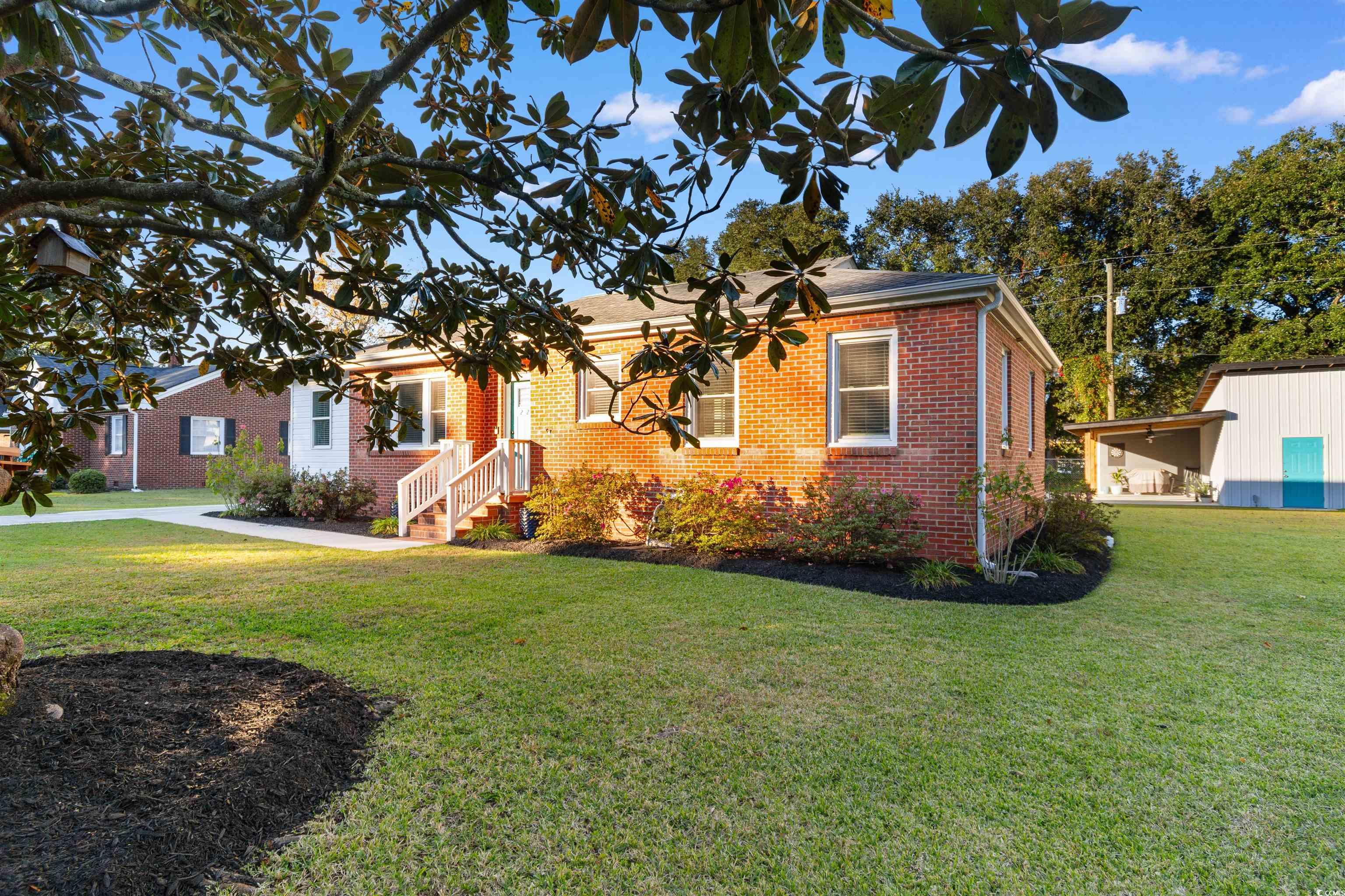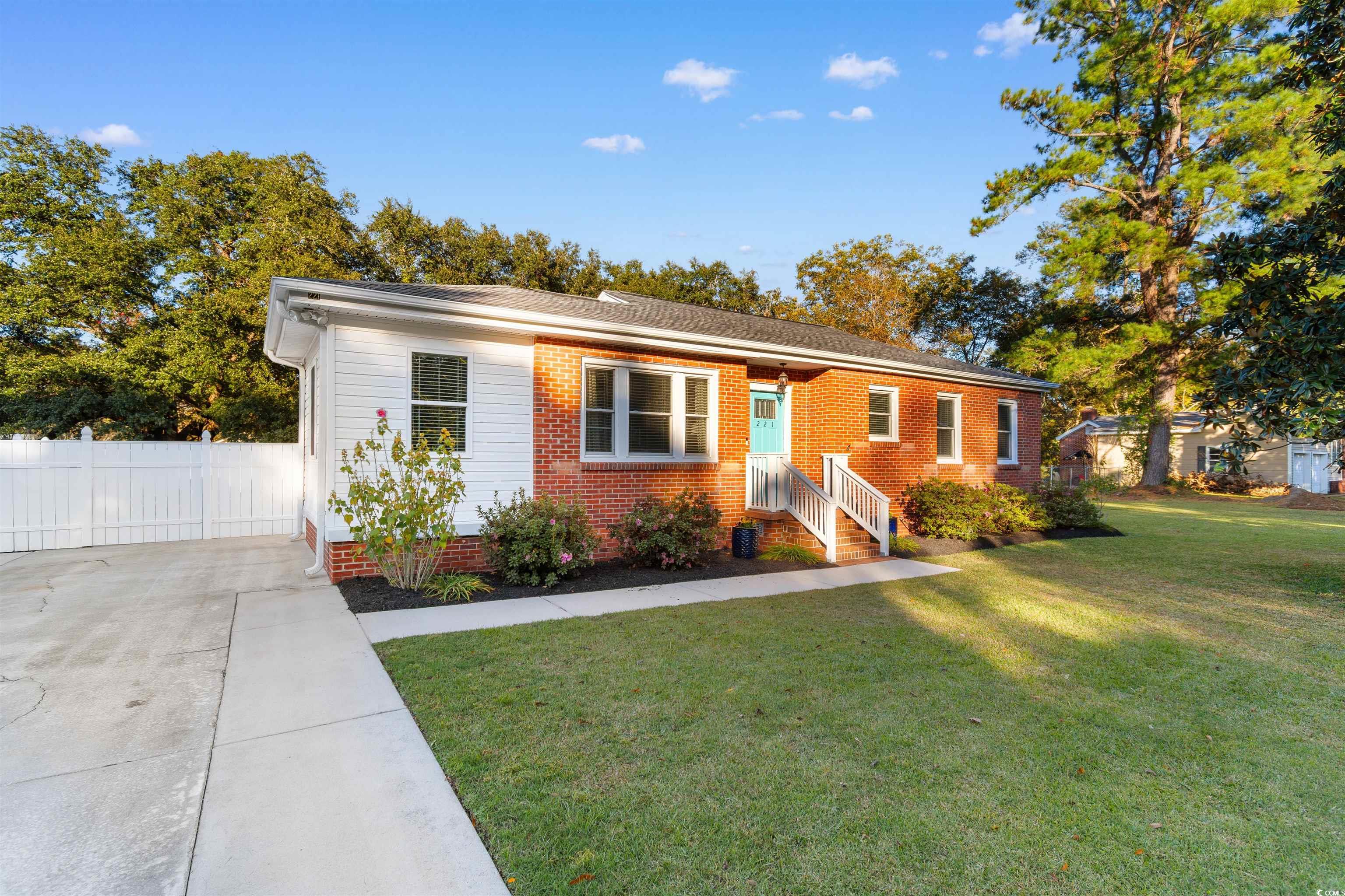 221 Bragdon Avenue - CUTE recently remodeled brick ranch home in the Kensington area of coastal Georgetown, South Carolina. Three bedrooms, two bathrooms, LVP flooring throughout, smooth ceilings, new fans and fixtures, and neutral paint colors here - just bring your things and move in! Open great room / dining / and kitchen with granite countertops, breakfast bar, stainless appliances and large adjacent laundry room. Outdoors you will find a large fenced patio/courtyard area perfect for bonfires and grilling, a detached shed plus a large 24 x 16 workshop with roll up door, 24 x 12 patio lean-to and 24 x 14 boat shed. The location provides an easy walk or bike ride to Kensington Elementary School and is located close to historic downtown Georgetown waterfront Harbor Walk with quaint shops, wonderful restaurants, fresh seafood vendors, and access to five rivers that surround the area. Easy drive to Pawleys Island, the closest beach access, and south to Charleston for a fun day trip. *Buyer is responsible for verifying home and lot square footage.