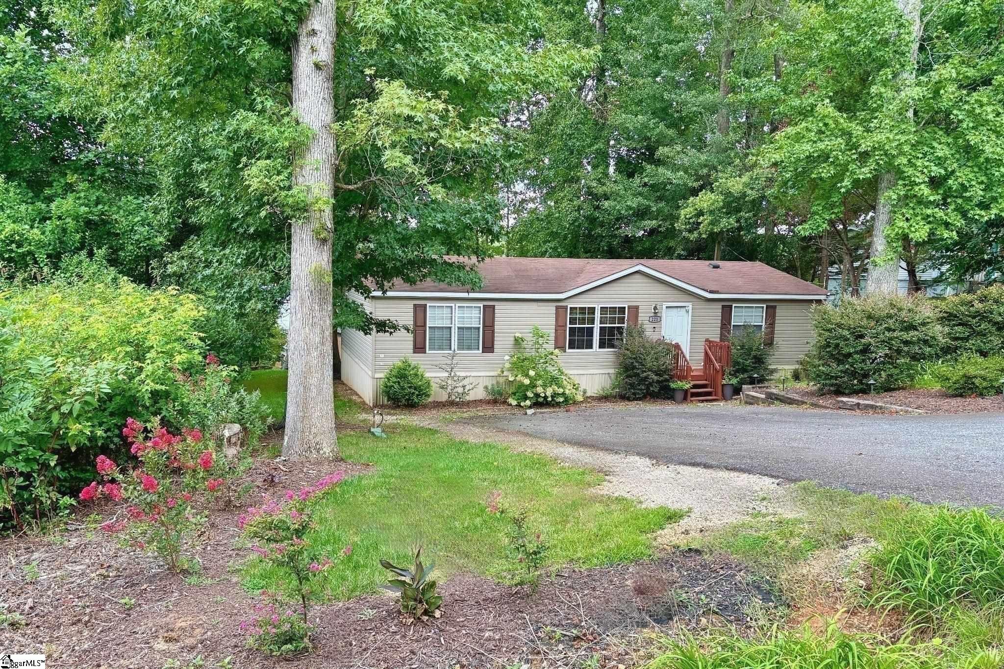 OPEN HOUSE SAT. FEB. 14 11 a.m. - 1 p.m. Well-maintained 3-bedroom, 2-bath doublewide lakefront home offers the perfect blend of relaxation, recreation, and natural beauty. Level walk to the lake - no steep paths or stairs to navigate—making it ideal for families, entertaining, or effortless lakeside living. Spacious eat-in kitchen has lake views and access to back yard. Step outside to your private waterfront oasis: a floating dock is already in place, ready for boating, fishing, or simply lounging over the water. Waterskiing and pulling water toys are permitted this lake is made for fun on the water. 90 hp outboard motors, 135 hp inboard motors. A covered picnic pavilion provides the ideal shaded spot for barbecues, outdoor dining, or watching the kids play, all while soaking in the lake setting. Inside, the generously sized bedrooms offer plenty of space to spread out, with stylish barn doors on the closets adding a touch of rustic charm and modern flair. Best of all? This home captures magical sunsets. Whether you're seeking a peaceful retreat or an active lake lifestyle, this property delivers it all. Welcome home to lakeside living at its finest. Conveniently located near Greer and between Downtown Greenville and Spartanburg. GSP airport, Greer hospitals, dining, shopping, BMW plant are all nearby. $350,000.