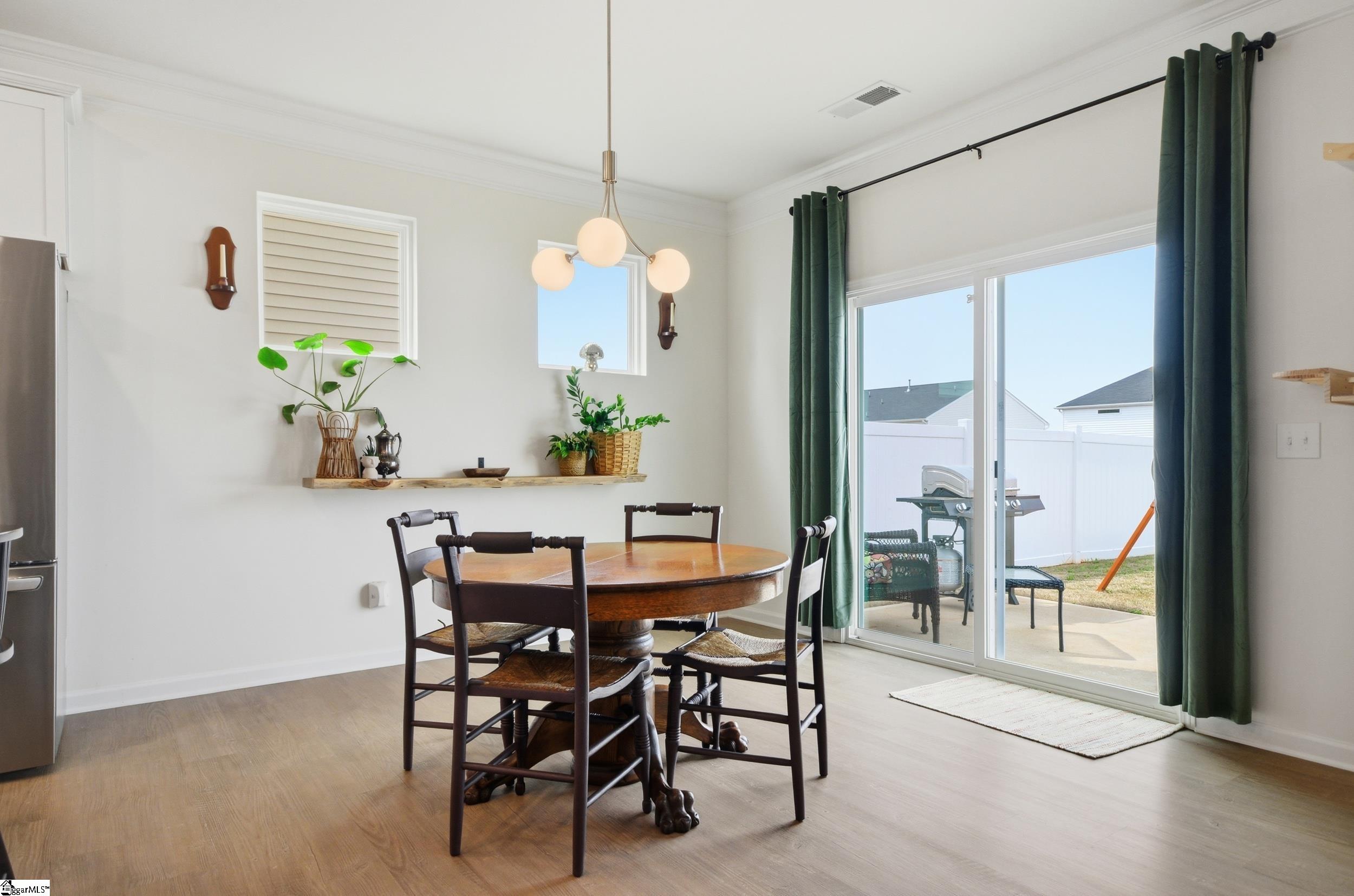 Welcome home to 221 Pendergast Rd—an almost-new 3 bedroom, 2.5 bath home with an open loft and a bright, airy layout in the Harrington neighborhood. The main level showcases an open floor plan with LVP flooring, abundant natural light, and upgraded finishes throughout. The kitchen is a standout with shaker cabinetry, granite countertops, stainless steel appliances, tile backsplash, and upgraded lighting including pendants over the island. Enjoy indoor-outdoor living with rear glass doors leading to a fully fenced backyard with vinyl fencing—a major bonus since many new construction homes do not include fencing. Upstairs you’ll find a generous loft, two additional bedrooms, full hall bath, and laundry, plus a private primary suite tucked away at the back of the home. The primary bath features dual sinks, a tiled walk-in shower, and EVP flooring, with quartz countertops throughout all bathrooms. Additional upgrades include trim, lighting and plumbing packages, a finished (drywalled and painted) garage with lighting/outlets, and a built-in pest control system. Harrington residents enjoy two pools, a playground, and sidewalks throughout the neighborhood.