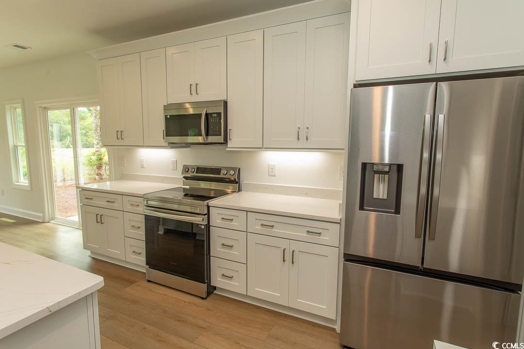 Now Ready for Move-In! Don’t miss this beautifully built new construction home in the sought-after gated community of Windjammer Village! This charming 2-story, 3-bedroom, 3-bathroom home offers an impeccable view and a thoughtfully designed layout that maximizes space and natural light. The main level features a bright and open kitchen with stainless steel appliances, quartz countertops, under-cabinet lighting, and a convenient pantry. The kitchen flows into the dining area and a cozy living room highlighted by a shiplap fireplace and abundant windows. Upstairs, the extra-large primary suite includes a private balcony with a view, a spacious walk-in closet, and an elegant en-suite bath complete with a double vanity, garden tub, walk-in shower, and a large window for natural light. Also located on the second floor are a drop zone, laundry area, and a secondary bedroom with its own full bath. Located just minutes from shopping, dining, and more, this home offers the perfect blend of style, comfort, and convenience. Schedule your tour today—this one won’t last!