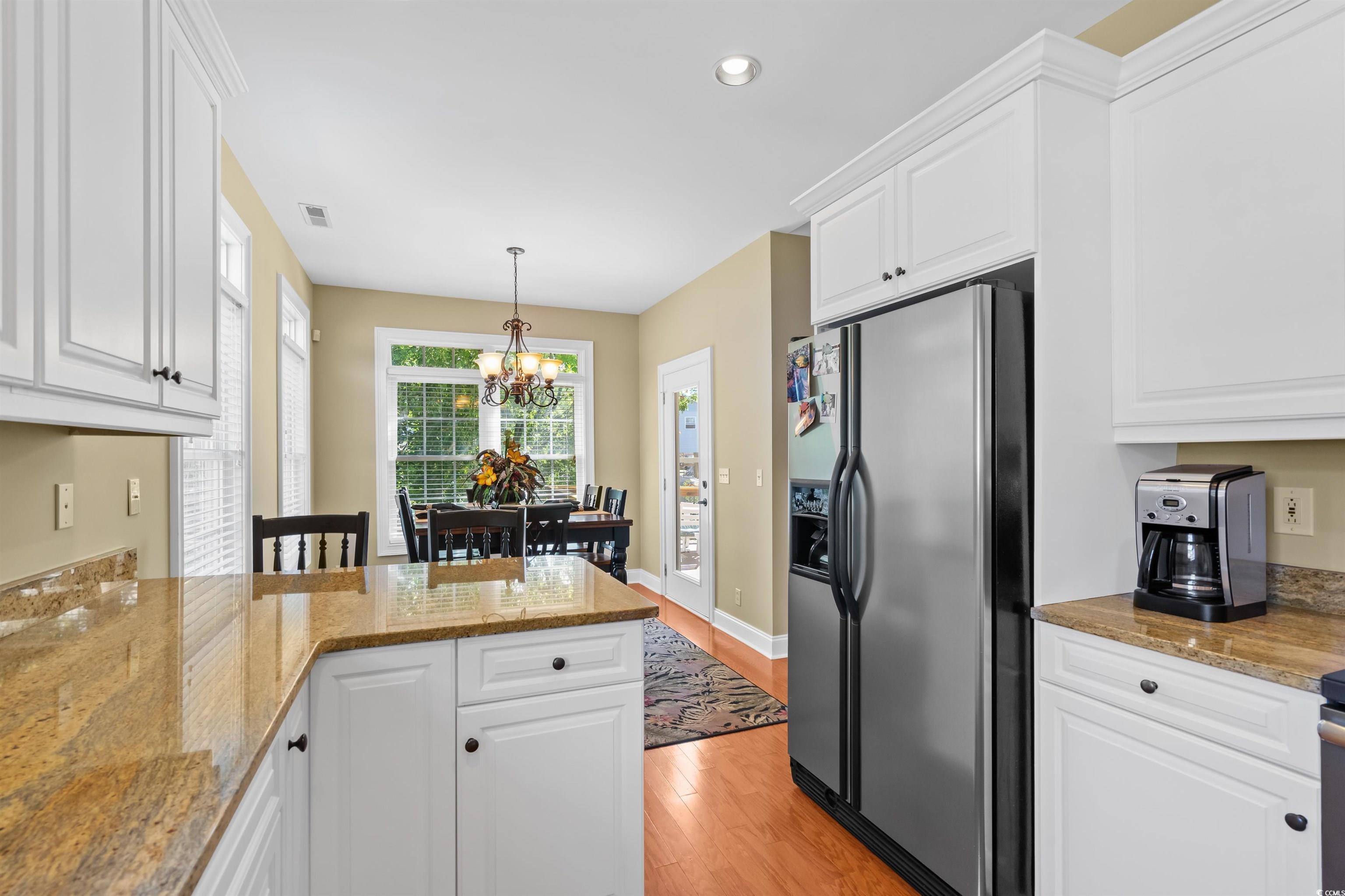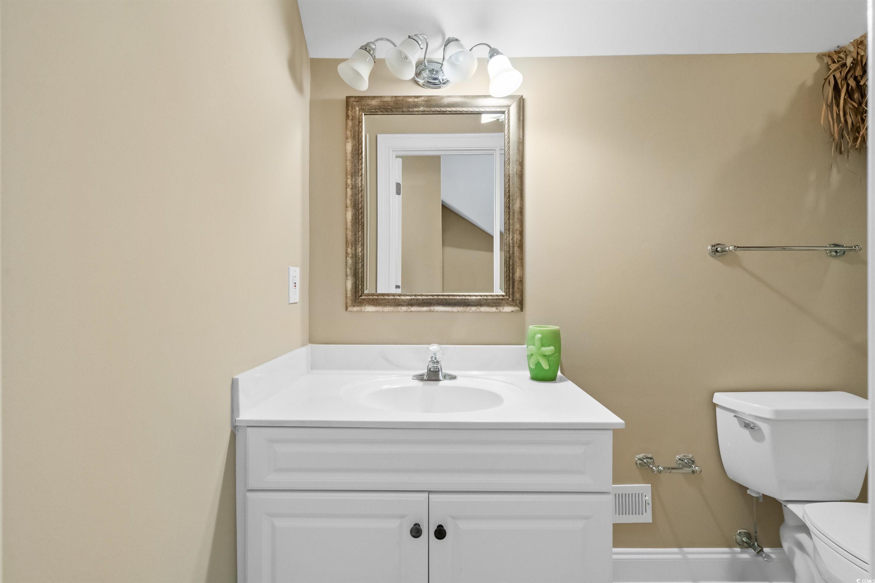 Welcome home to this gem located in the Willow Springs community in Cherry Grove, North Myrtle Beach! As soon as you enter through the foyer you'll appreciate every detail this home has to offer. The living area features vaulted ceilings and a fireplace. The kitchen is equipped with stainless steel appliances, all white cabinets, granite countertops, a brand new dishwasher, and a pantry. It has an attached dining area that overlooks the screened porch which is sure to be one of your favorite places in this home. The screened porch is connected to a large deck that has a serene view of the pond. A new sea wall was installed this year! It's the perfect place for entertaining guests and grilling out. You can also view the pond from the spectacular primary suite located on the first floor. It features tray ceilings, a double sink vanity, a jetted tub, and a walk-in shower. From the windows you can see the pond and it allows for lots of natural lighting! Upstairs you'll find two additional bedrooms and a full bath. You're sure to appreciate all of the details in this home including the central vacuum system! This home is being sold furnished with some exceptions. A brand new water heater was just installed! The home is located in the North Myrtle Beach school district. Close to everything you could need including: shopping, dining, entertainment, and just a short golf cart ride to the BEACH! Seller is a licensed real estate agent in South Carolina.