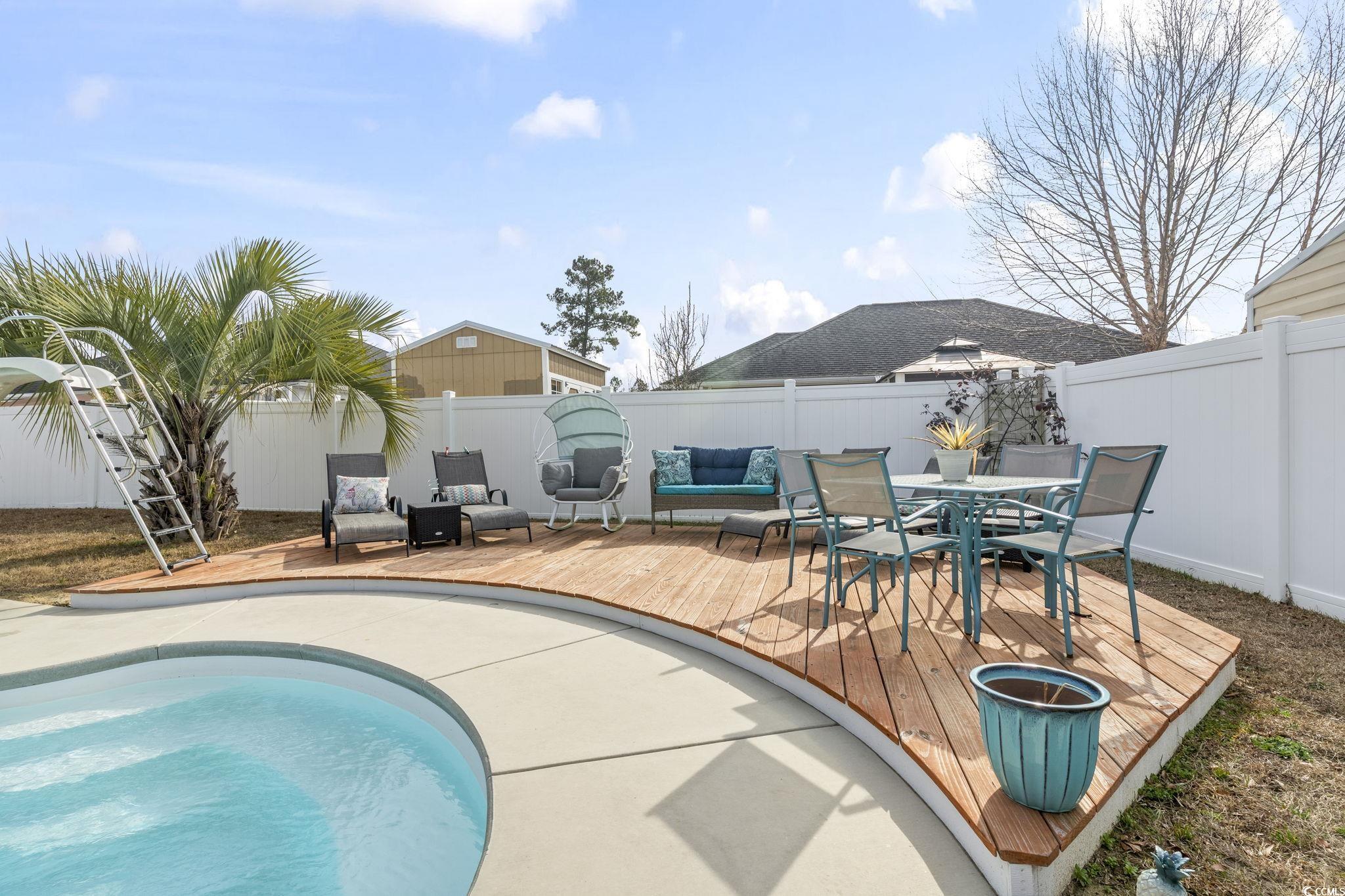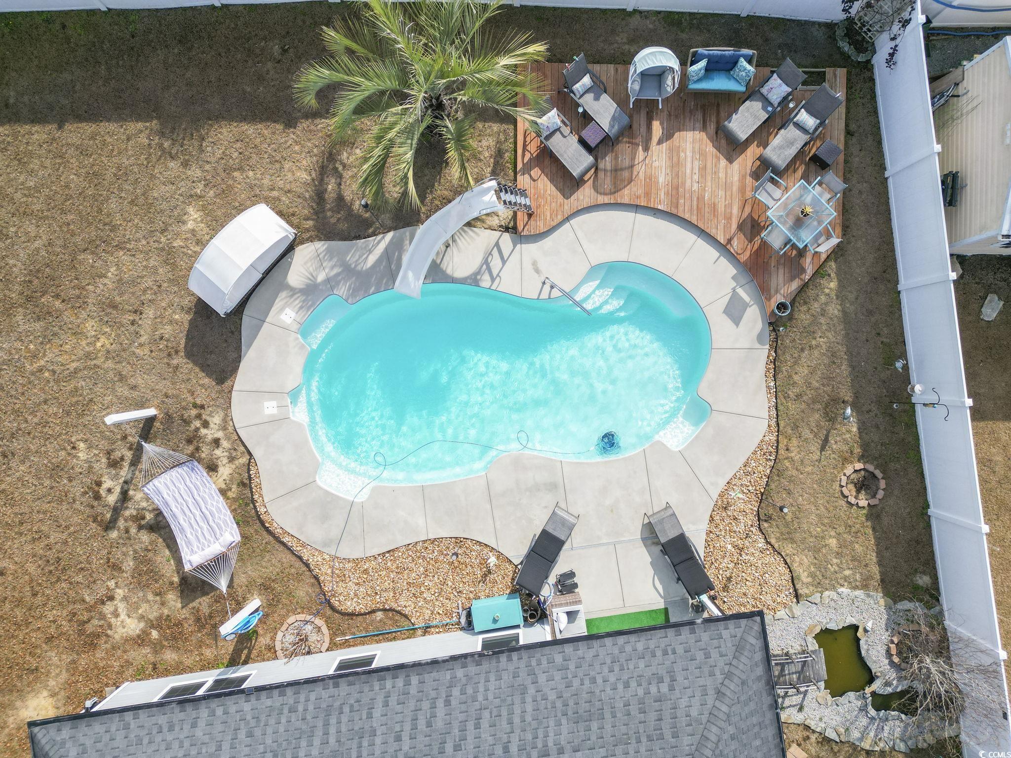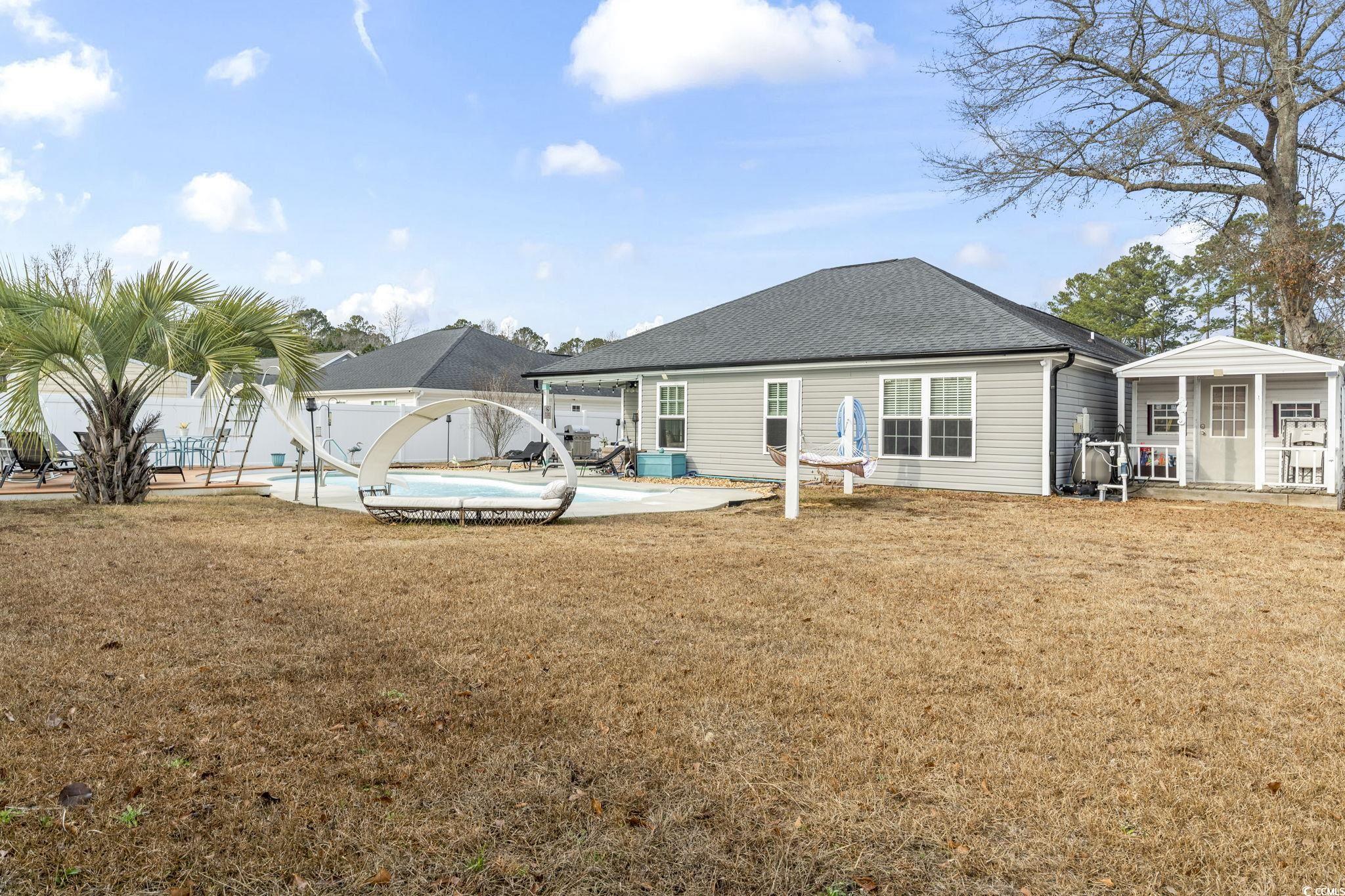Step into your own private backyard oasis—designed for both relaxing and entertaining. A fully fenced yard features a saltwater pool with a tanning deck, a peaceful two-tier pond, and space that feels like a retreat right at home. A detached, finished building with electric adds incredible flexibility, perfect for a home office, pool house, playroom, or extra storage. Inside, the home offers a smart, functional layout with an open floor plan and split-bedroom design that balances connection and privacy. The kitchen opens seamlessly to the main living area and features granite countertops, stainless steel appliances, and a breakfast bar ideal for casual meals or hosting guests. The spacious primary suite includes two walk-in closets, while the secondary bedrooms share a Jack-and-Jill bathroom, making the layout both practical and comfortable. A two-car garage, extended parking, climate-controlled garage space, and a full security system add everyday convenience and peace of mind. Conveniently located near downtown Conway, Coastal Carolina University, major highways, and just a short drive to Myrtle Beach, shopping, dining, and entertainment. Homes with outdoor spaces like this are rare—schedule your private showing today and experience it for yourself.