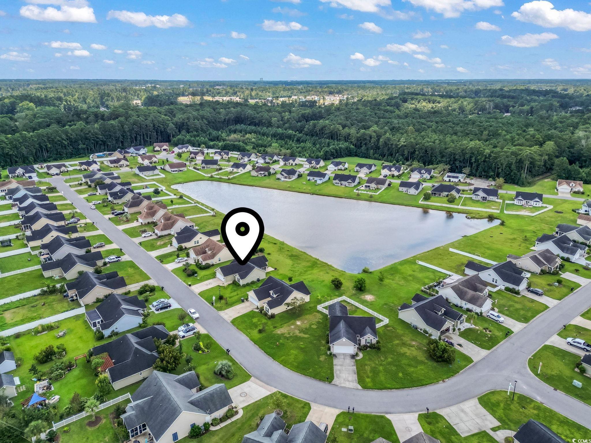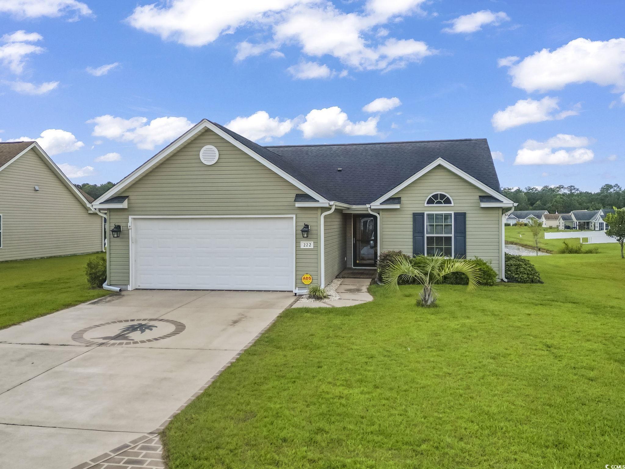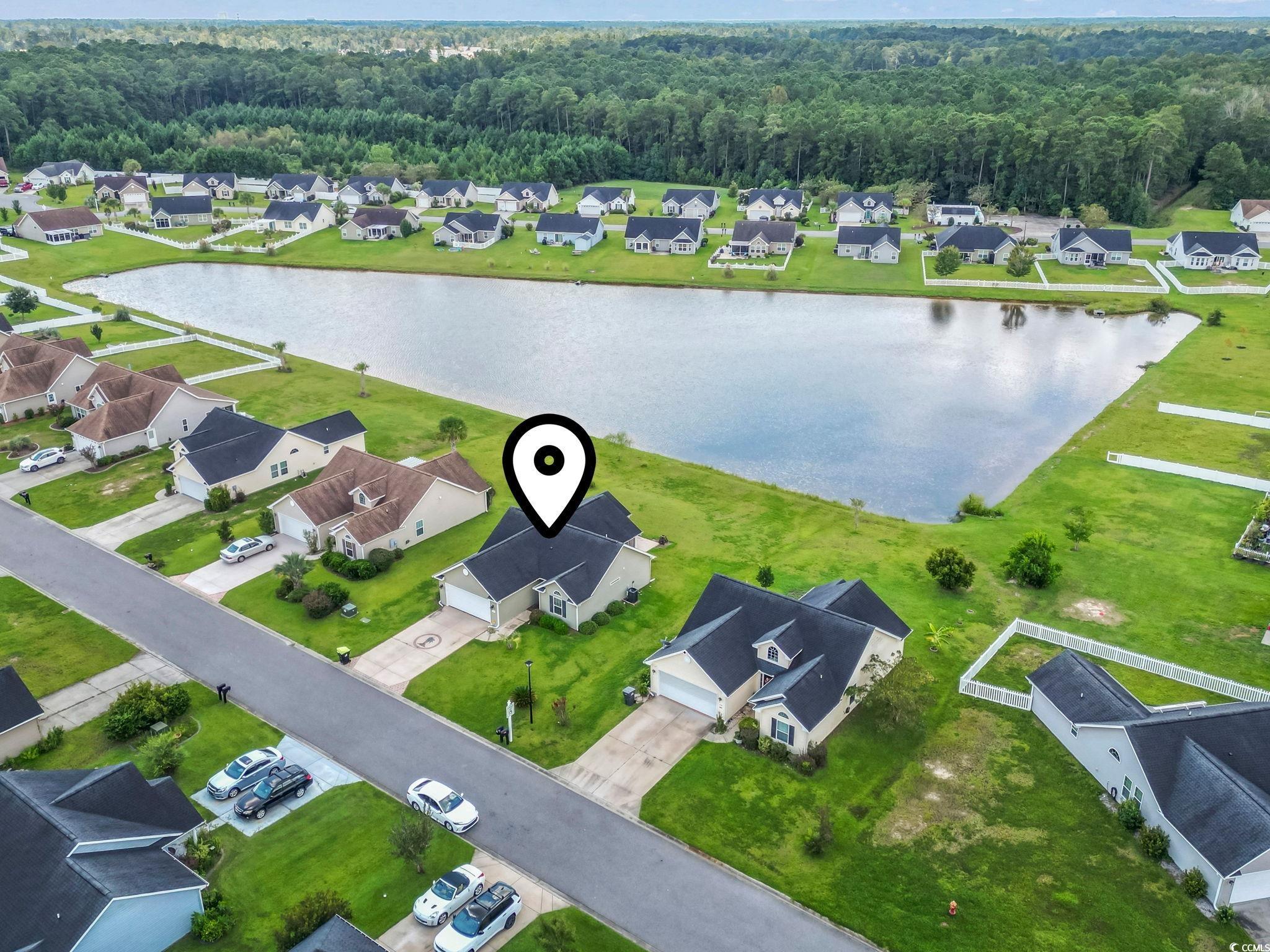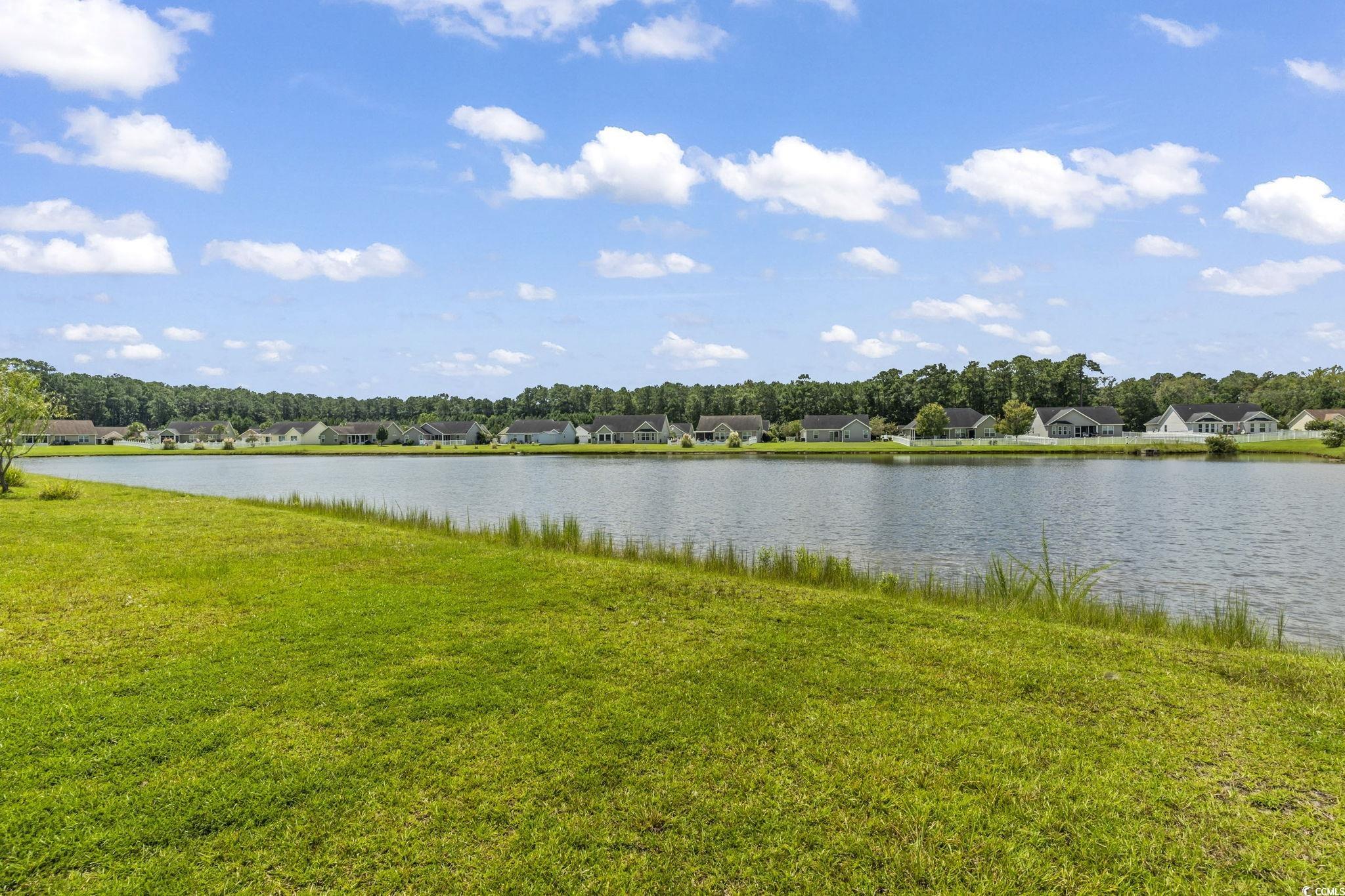 Welcome to this beautiful 3 bedroom, 2 bath single-level home complete with a spacious two-car garage. Designed with convenience and comfort in mind, this home features a split bedroom floor plan that offers privacy for the primary suite, while still providing an open and inviting layout for everyday living. Step inside to find vaulted ceilings and an open floor plan where the kitchen seamlessly flows into the dining area and the large living room—perfect for entertaining or relaxing with family. The kitchen is well-appointed with plenty of cabinet and counter space along with stainless steel appliances. The primary bedroom is a retreat with a tray ceiling, walk-in closet, and a private bath featuring a handicap-accessible shower. Both guest bedrooms are generously sized, each with spacious closets, and share a full bath conveniently located between them. Outside, you’ll love the fantastic lot with panoramic water views. Relax on your screened porch or enjoy the fresh air from your patio while taking in the peaceful scenery. Additional highlights include a security system and a spacious garage offering extra storage. This wonderful community also offers residents a sparkling pool just a short walk away. And when you’re ready for a day at the beach, the Grand Strand’s beautiful shoreline, shopping, dining, and golf courses are only a short drive from your doorstep. If you’re searching for the perfect place to call home at the beach, look no further—this one has it all!