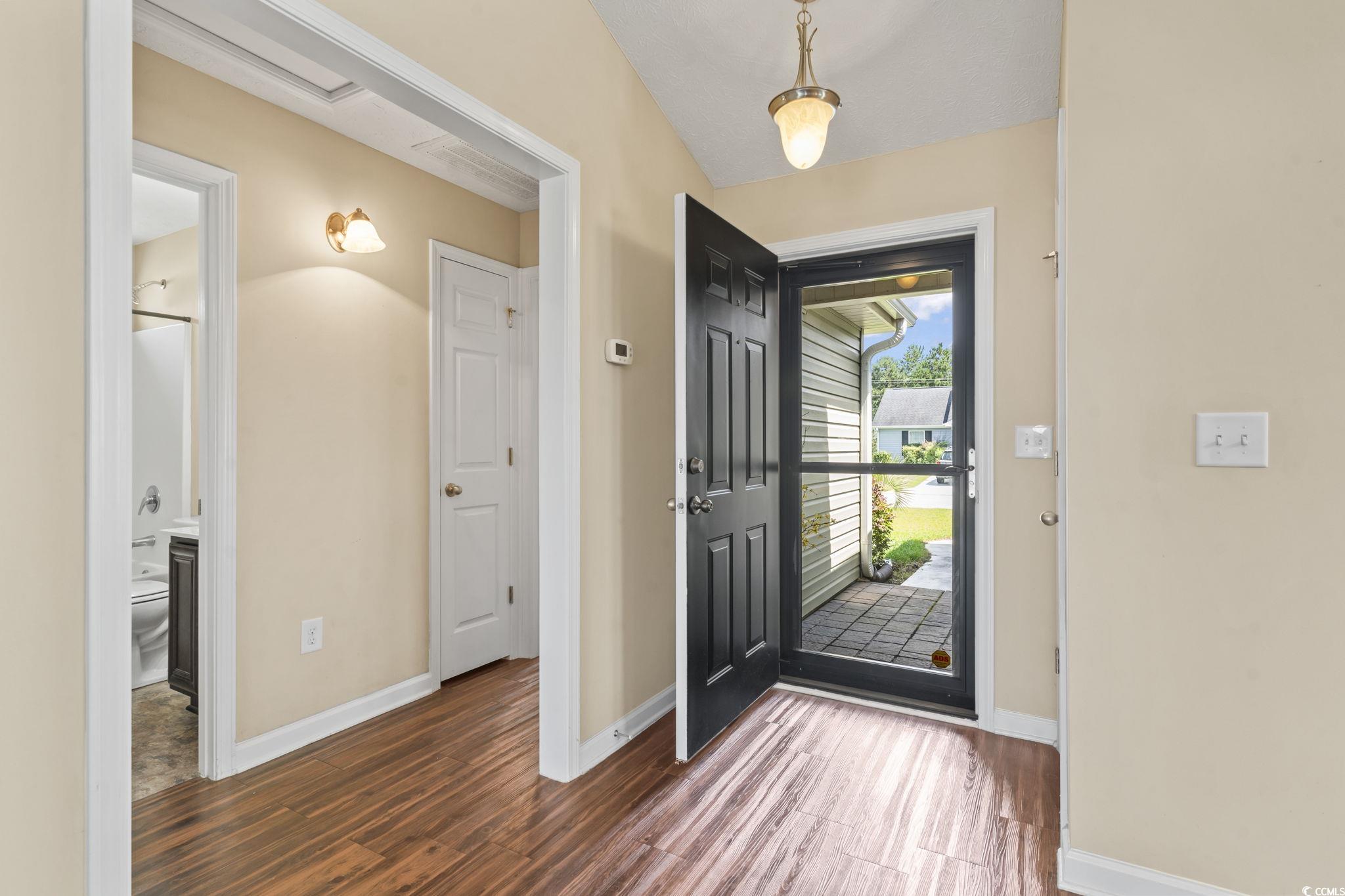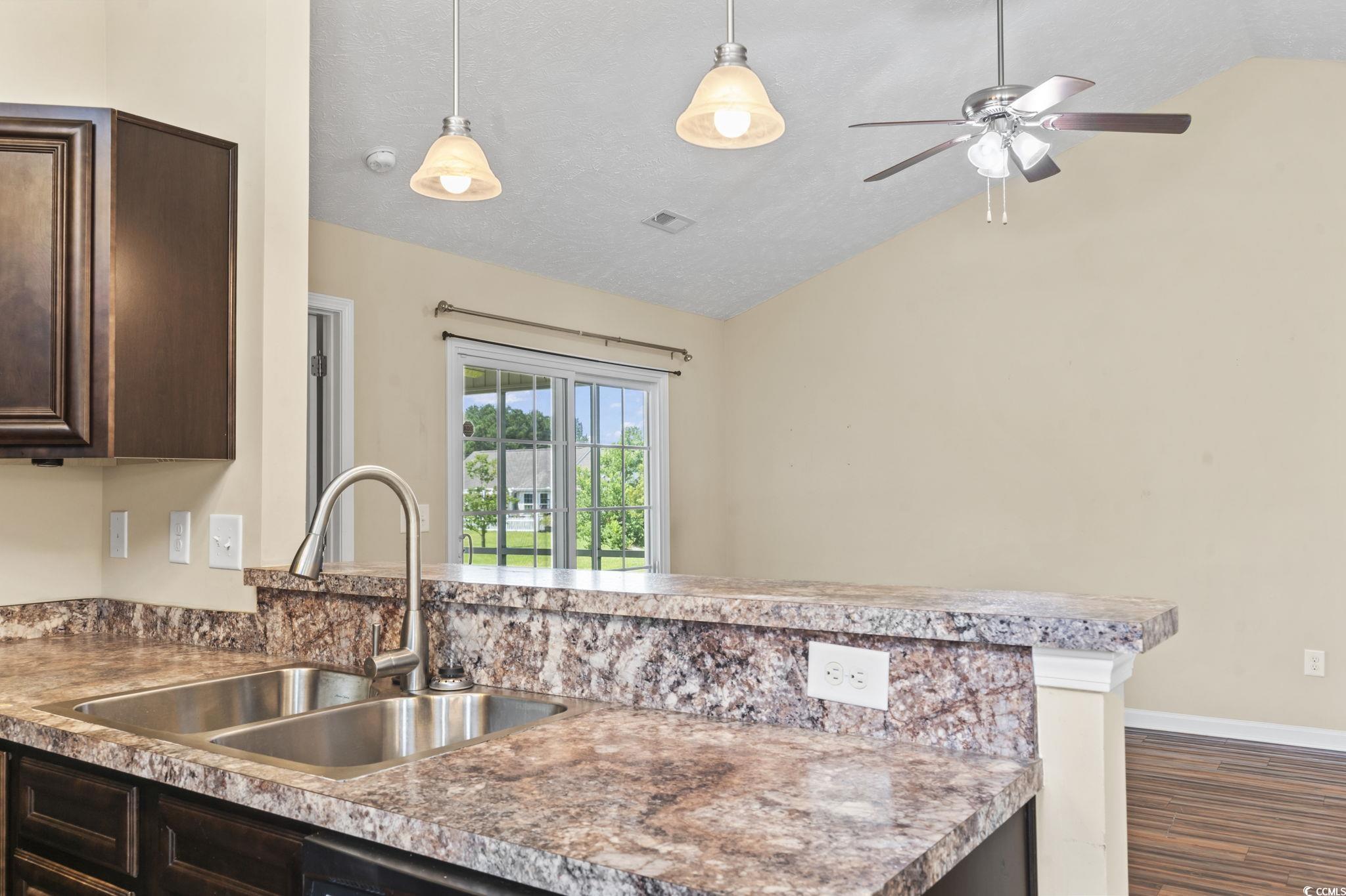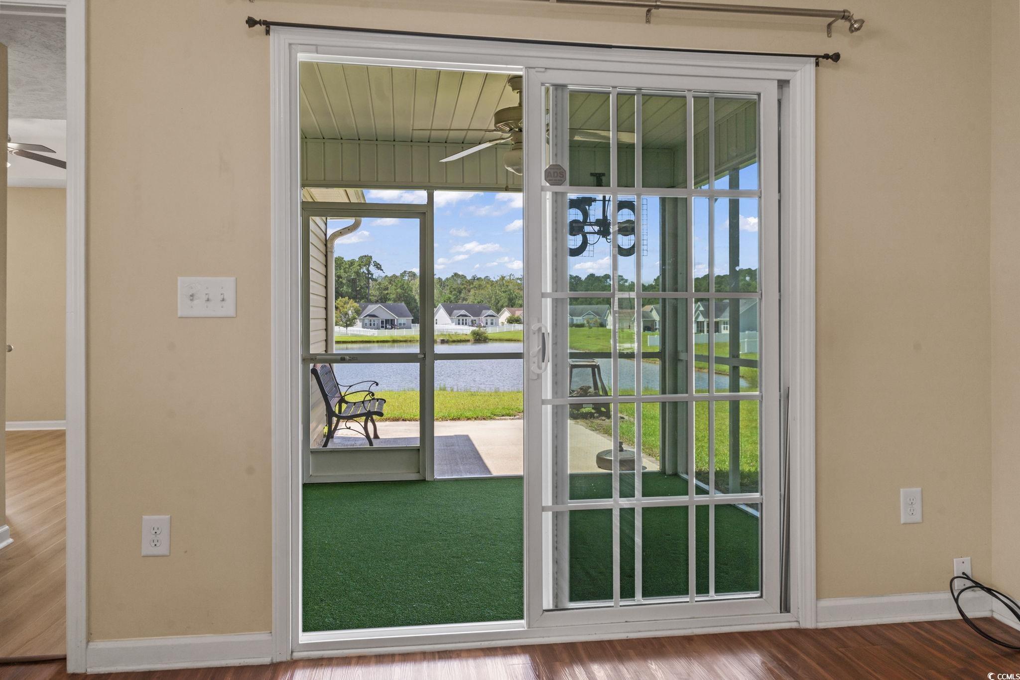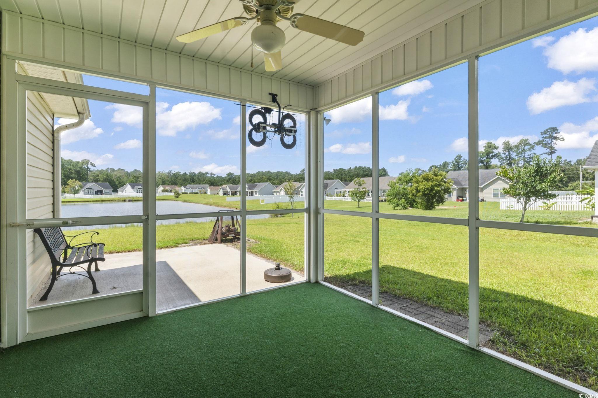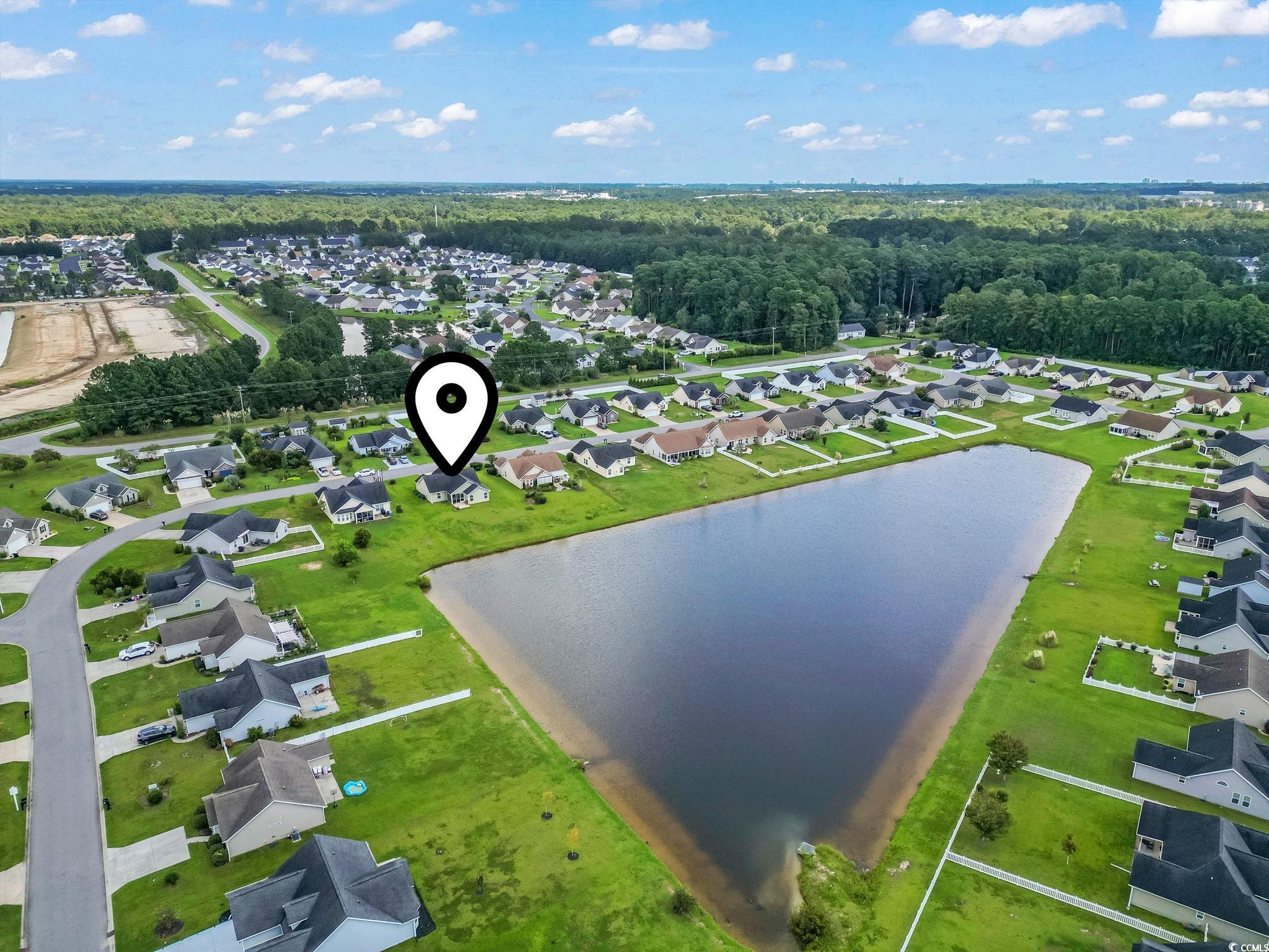 Welcome to this beautiful 3 bedroom, 2 bath single-level home complete with a spacious two-car garage. Designed with convenience and comfort in mind, this home features a split bedroom floor plan that offers privacy for the primary suite, while still providing an open and inviting layout for everyday living. Step inside to find vaulted ceilings and an open floor plan where the kitchen seamlessly flows into the dining area and the large living room—perfect for entertaining or relaxing with family. The kitchen is well-appointed with plenty of cabinet and counter space along with stainless steel appliances. The primary bedroom is a retreat with a tray ceiling, walk-in closet, and a private bath featuring a handicap-accessible shower. Both guest bedrooms are generously sized, each with spacious closets, and share a full bath conveniently located between them. Outside, you’ll love the fantastic lot with panoramic water views. Relax on your screened porch or enjoy the fresh air from your patio while taking in the peaceful scenery. Additional highlights include a security system and a spacious garage offering extra storage. This wonderful community also offers residents a sparkling pool just a short walk away. And when you’re ready for a day at the beach, the Grand Strand’s beautiful shoreline, shopping, dining, and golf courses are only a short drive from your doorstep. If you’re searching for the perfect place to call home at the beach, look no further—this one has it all!