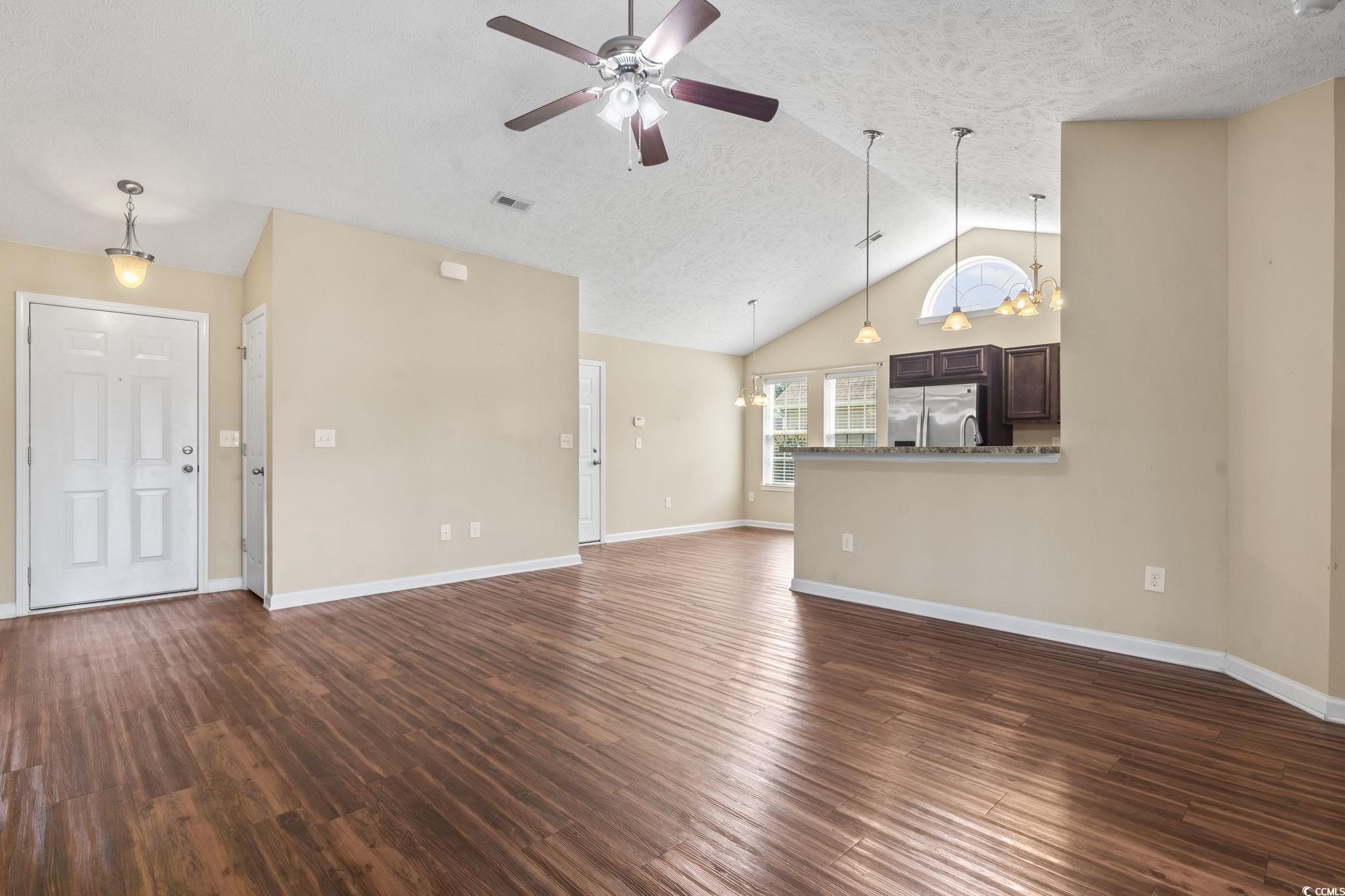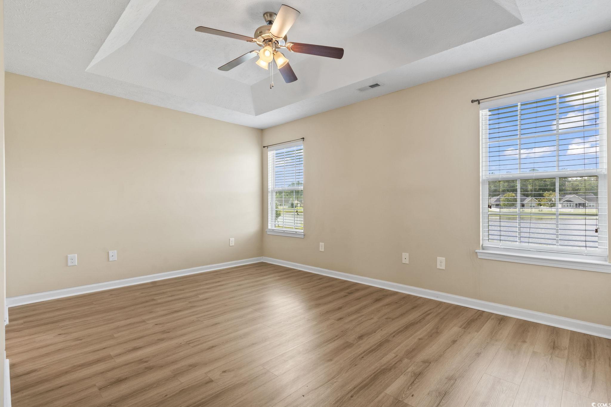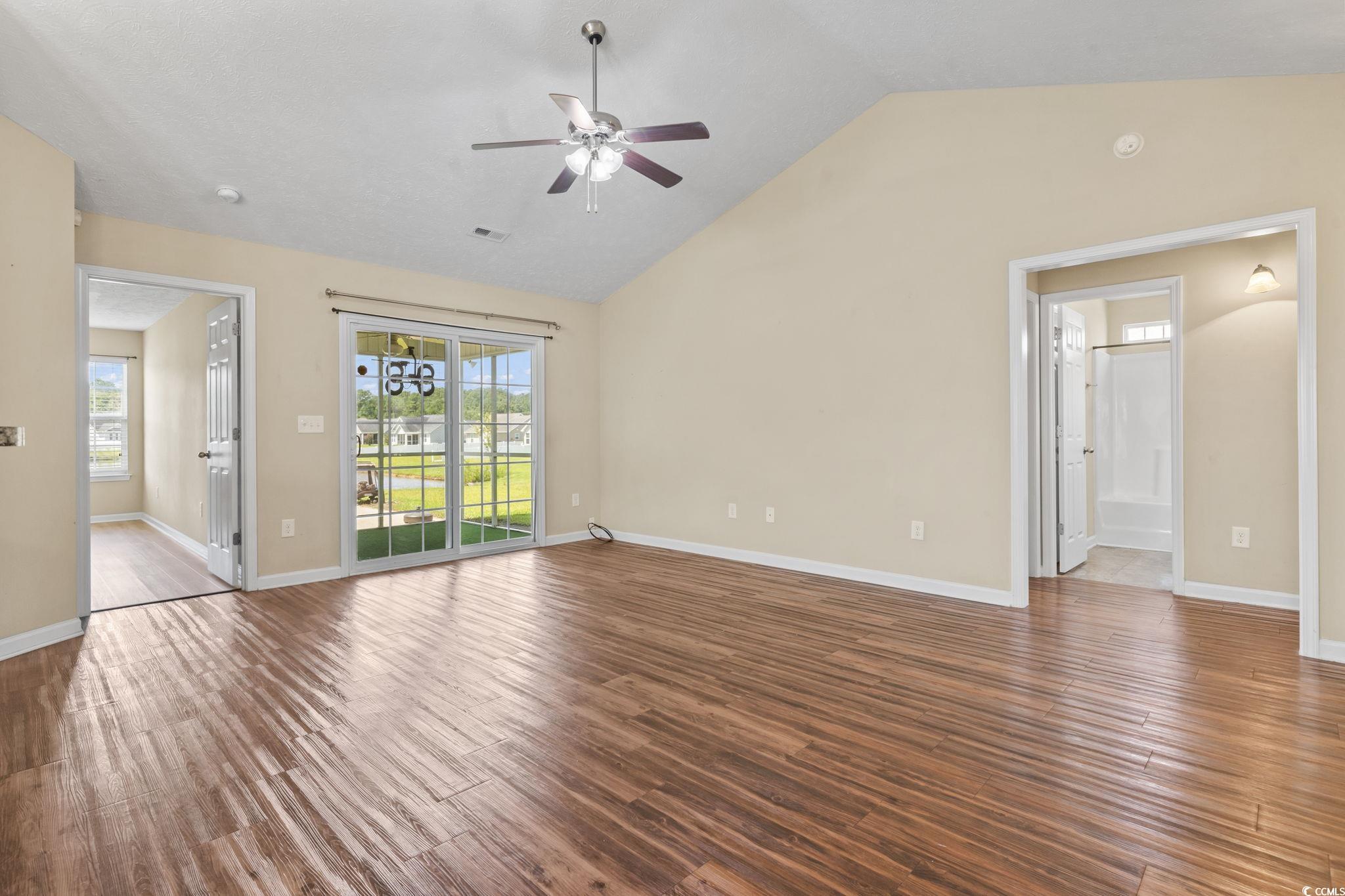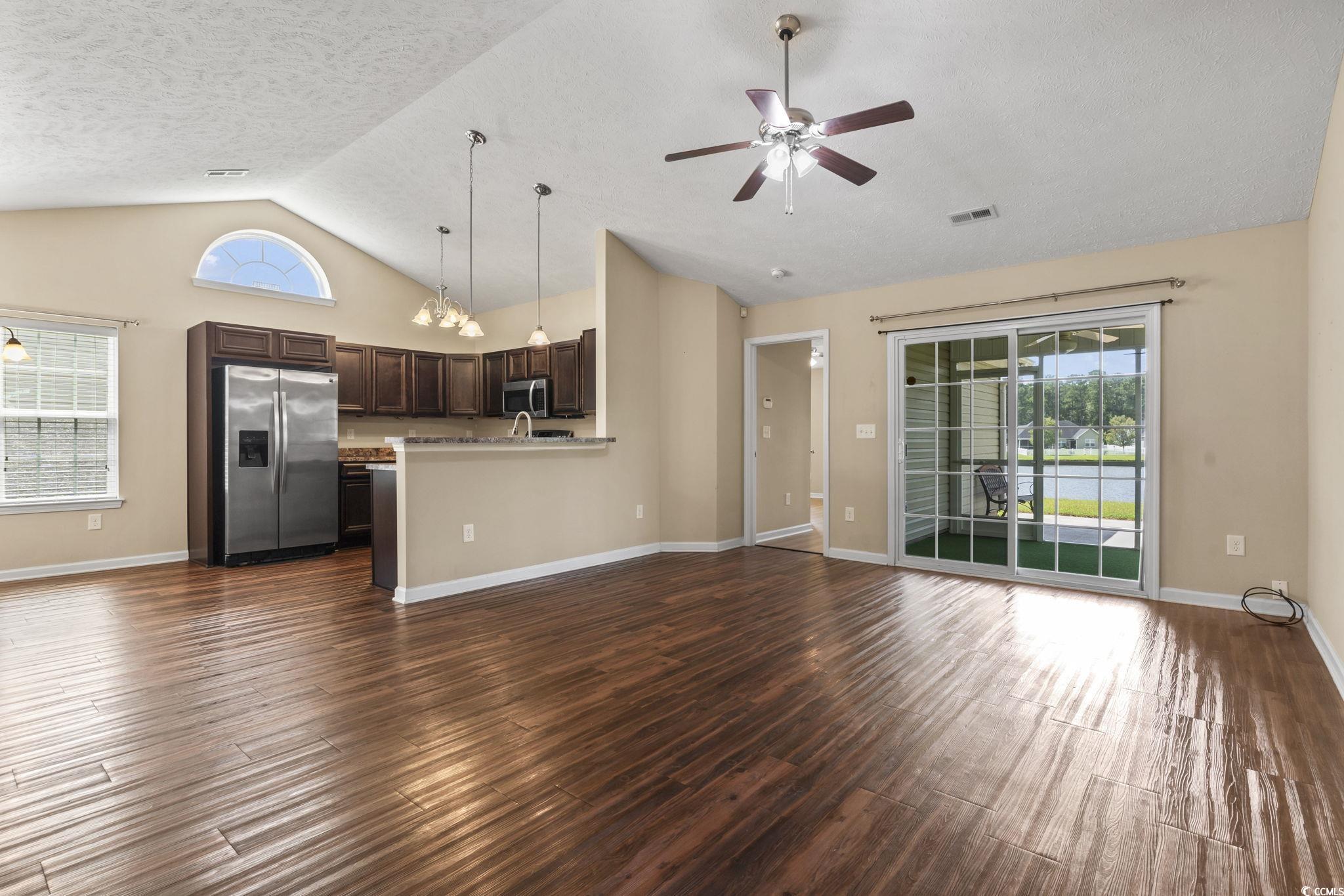 Welcome to this beautiful 3 bedroom, 2 bath single-level home complete with a spacious two-car garage. Designed with convenience and comfort in mind, this home features a split bedroom floor plan that offers privacy for the primary suite, while still providing an open and inviting layout for everyday living. Step inside to find vaulted ceilings and an open floor plan where the kitchen seamlessly flows into the dining area and the large living room—perfect for entertaining or relaxing with family. The kitchen is well-appointed with plenty of cabinet and counter space along with stainless steel appliances. The primary bedroom is a retreat with a tray ceiling, walk-in closet, and a private bath featuring a handicap-accessible shower. Both guest bedrooms are generously sized, each with spacious closets, and share a full bath conveniently located between them. Outside, you’ll love the fantastic lot with panoramic water views. Relax on your screened porch or enjoy the fresh air from your patio while taking in the peaceful scenery. Additional highlights include a security system and a spacious garage offering extra storage. This wonderful community also offers residents a sparkling pool just a short walk away. And when you’re ready for a day at the beach, the Grand Strand’s beautiful shoreline, shopping, dining, and golf courses are only a short drive from your doorstep. If you’re searching for the perfect place to call home at the beach, look no further—this one has it all!