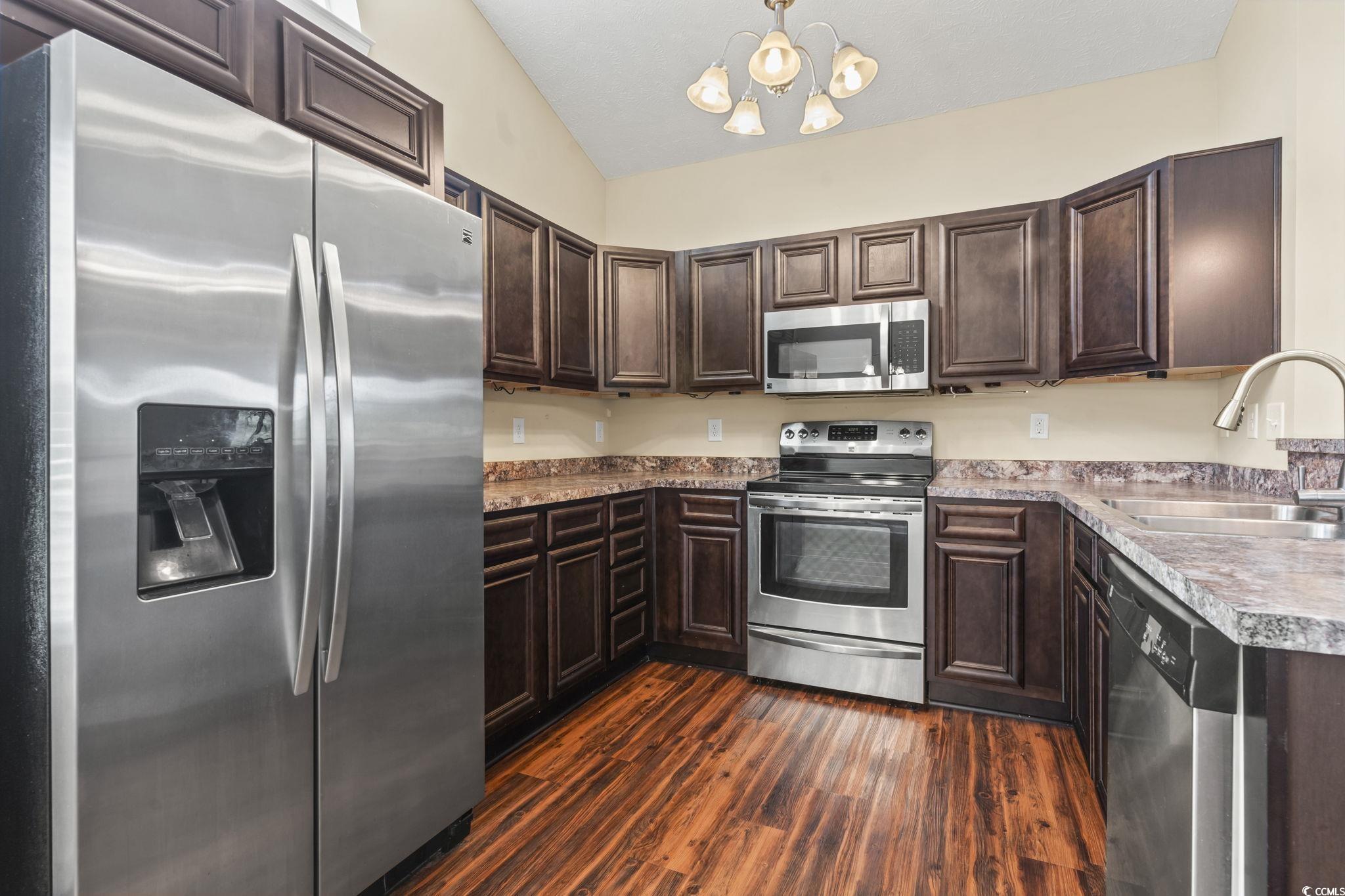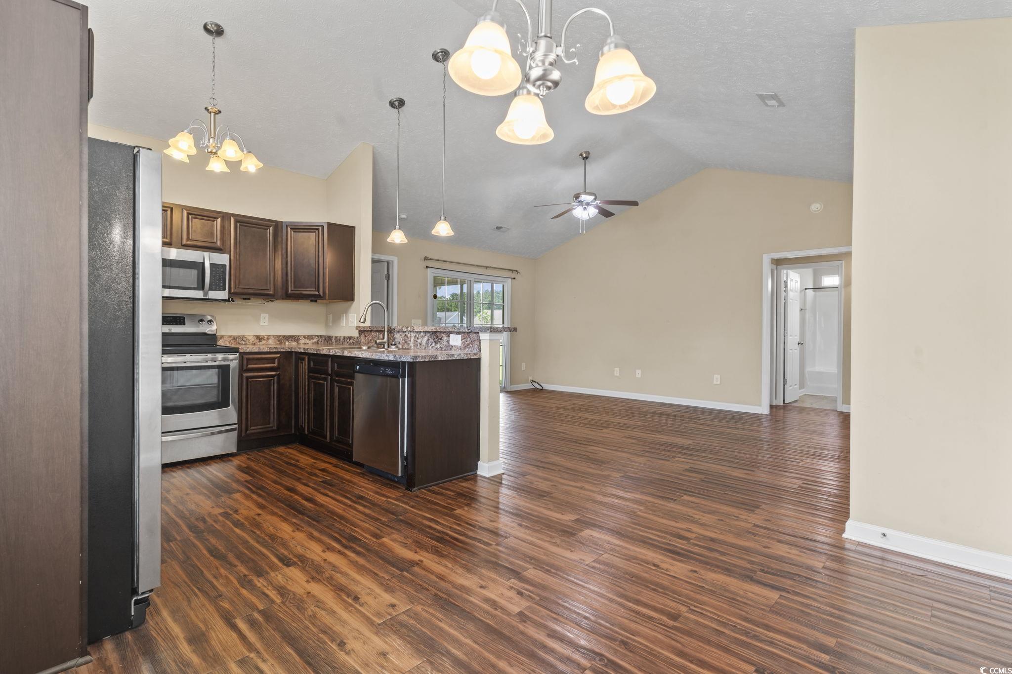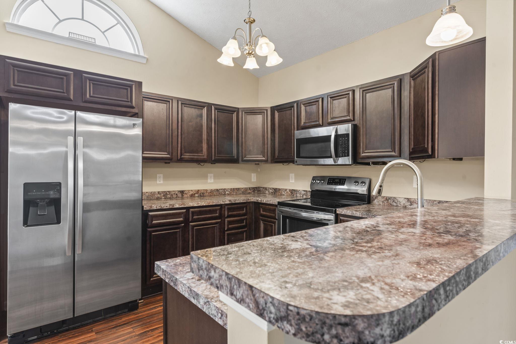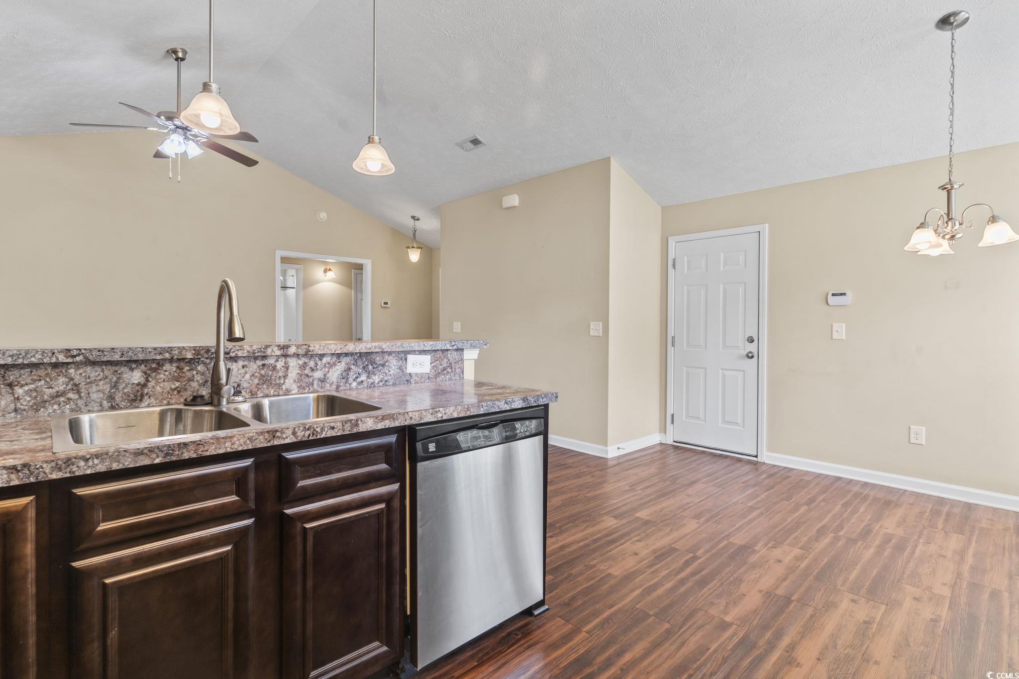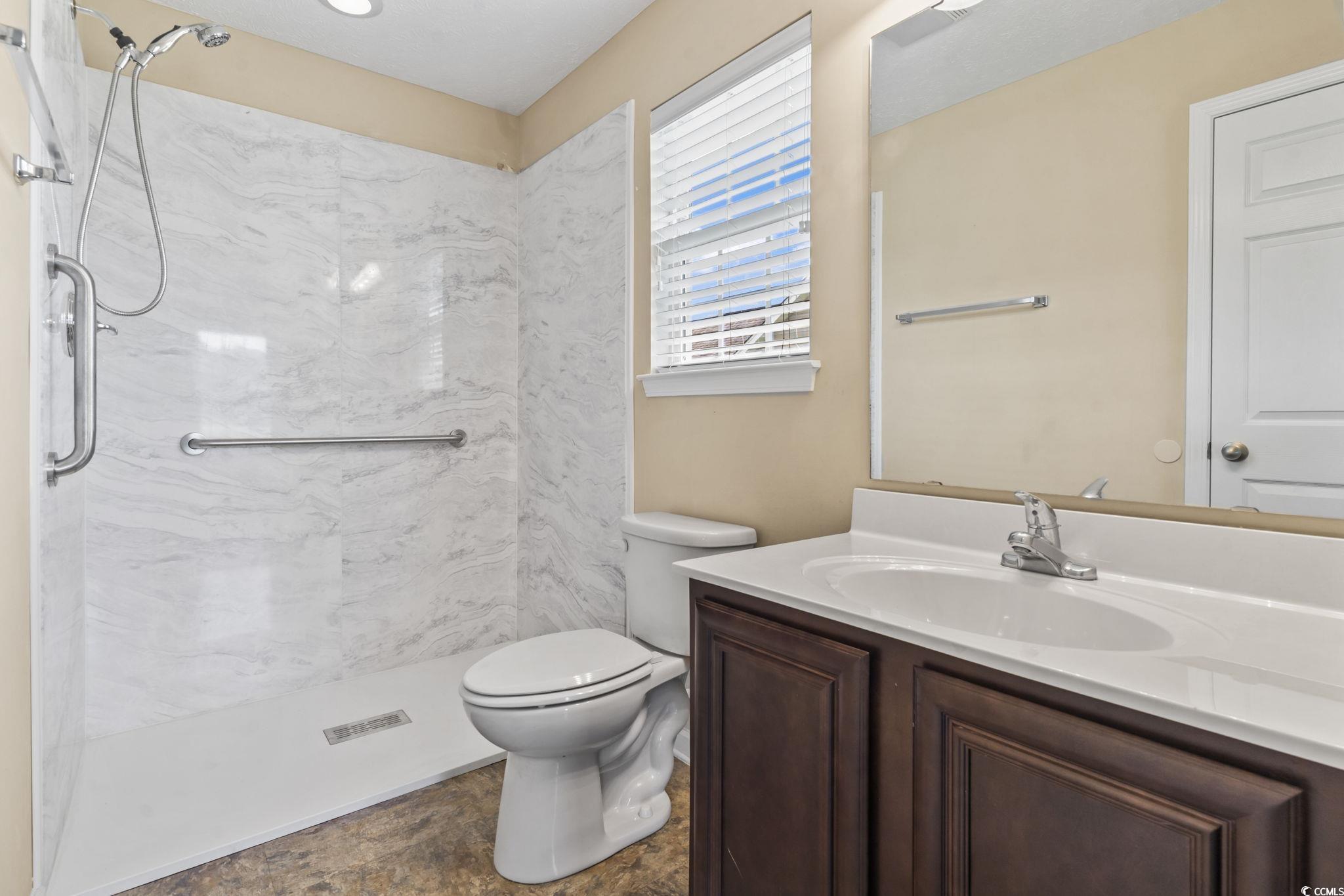 Welcome to this beautiful 3 bedroom, 2 bath single-level home complete with a spacious two-car garage. Designed with convenience and comfort in mind, this home features a split bedroom floor plan that offers privacy for the primary suite, while still providing an open and inviting layout for everyday living. Step inside to find vaulted ceilings and an open floor plan where the kitchen seamlessly flows into the dining area and the large living room—perfect for entertaining or relaxing with family. The kitchen is well-appointed with plenty of cabinet and counter space along with stainless steel appliances. The primary bedroom is a retreat with a tray ceiling, walk-in closet, and a private bath featuring a handicap-accessible shower. Both guest bedrooms are generously sized, each with spacious closets, and share a full bath conveniently located between them. Outside, you’ll love the fantastic lot with panoramic water views. Relax on your screened porch or enjoy the fresh air from your patio while taking in the peaceful scenery. Additional highlights include a security system and a spacious garage offering extra storage. This wonderful community also offers residents a sparkling pool just a short walk away. And when you’re ready for a day at the beach, the Grand Strand’s beautiful shoreline, shopping, dining, and golf courses are only a short drive from your doorstep. If you’re searching for the perfect place to call home at the beach, look no further—this one has it all!
