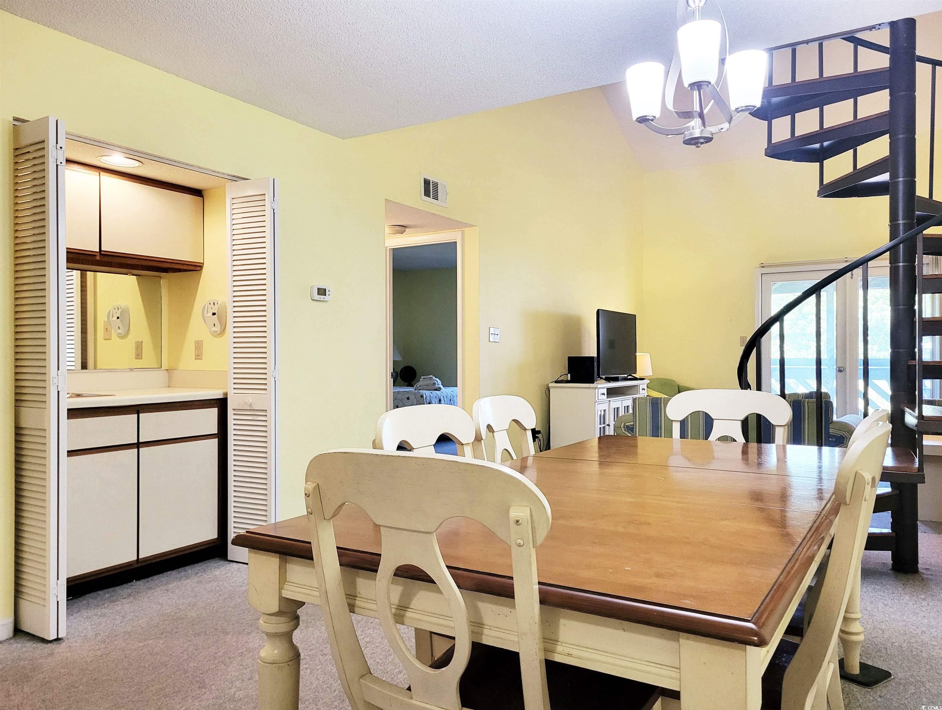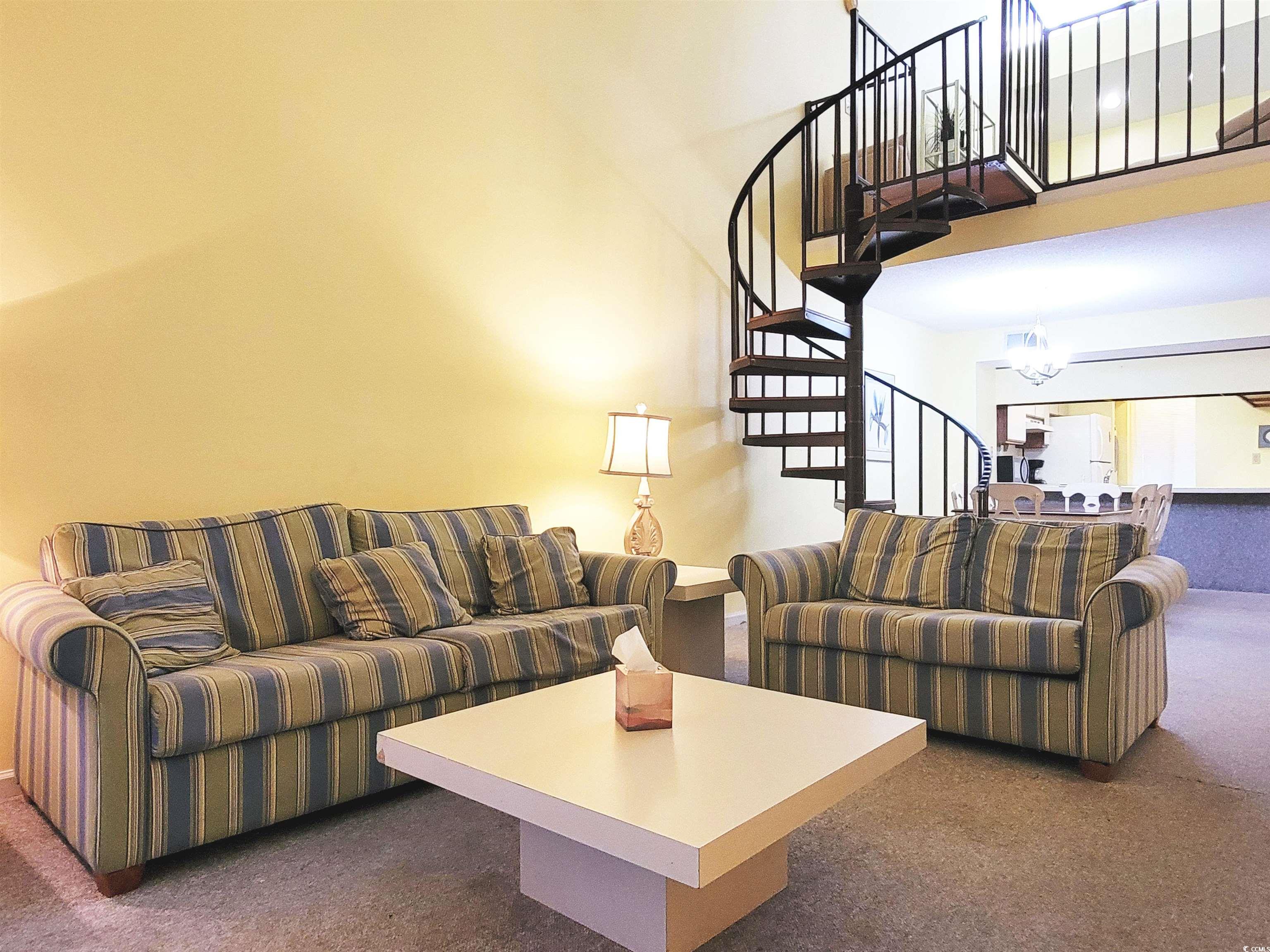 Welcome to Heron Pointe - a serene coastal community in Myrtle Beach's desirable Arcadian section. This fully-furnished 3-bedroom, 2-bathroom condo offers an open floor plan with vaulted ceilings and ceiling fans, creating a spacious and comfortable living environment. The spiral staircase leads to a versatile third bedroom or loft area, perfect for guests or a home office. Enjoy the expansive private screened porch overlooking the outdoor pool, ideal for relaxing or entertaining. The community features both indoor and outdoor pools, a jacuzzi, sundeck, and a grilling area with picnic tables. Just a short walk to the beach, this condo is perfectly situated near shopping, dining, golf courses, and entertainment venues. Whether you're seeking a vacation home, primary residence, or investment property, this condo in a quiet community offers exceptionally large bedrooms and all the amenities for comfortable coastal living.