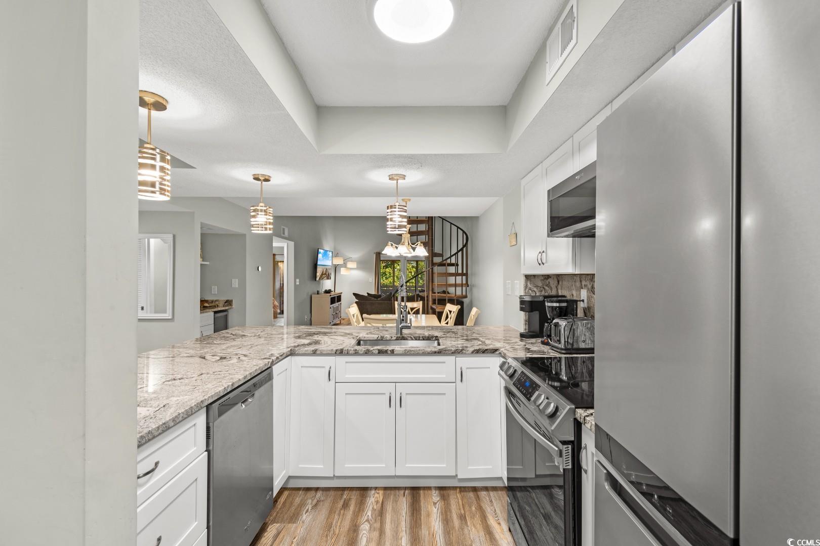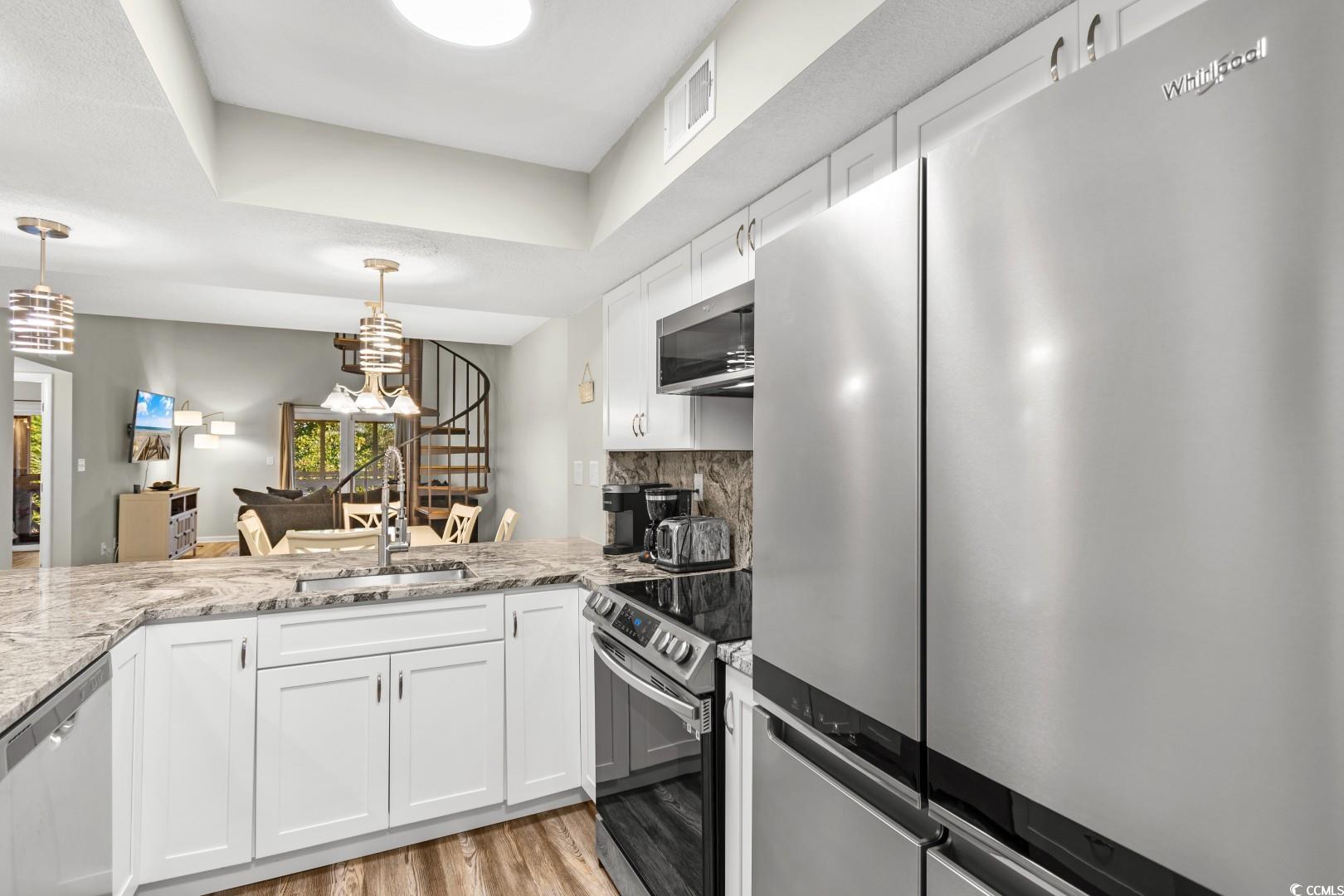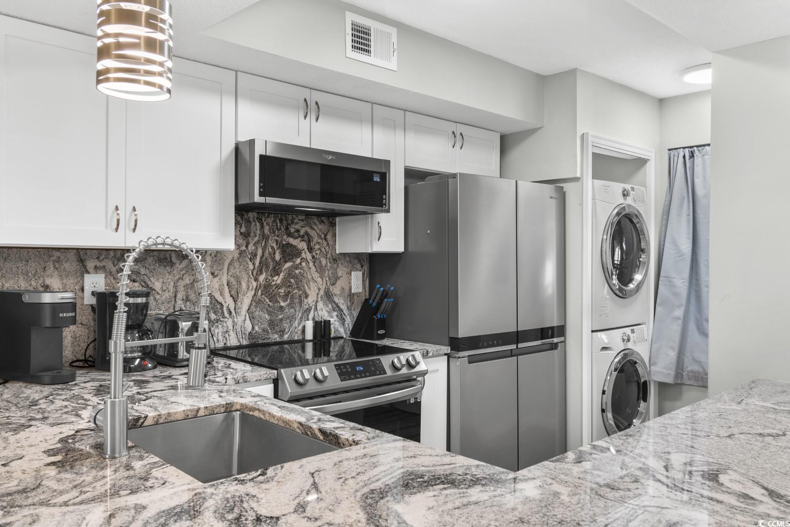 Don't miss your opportunity to own this fully furnished 3 bedroom, 2 bathroom condo in the quiet community of Heron Pointe in Myrtle Beach! Featuring an open floor plan with LVP flooring throughout the main living areas and high vaulted ceilings. The kitchen offers a breakfast bar, stainless steel appliances, updated countertops with beautifully coordinated backsplash and a wet bar! The large bedrooms have plenty of closet space, and easy access to bathrooms. Enjoy the enormous screened in balcony, accessible from both the living and master bedroom. Heron Pointe offers the best amenities including indoor and outdoor pools, a sun deck, a sauna, a jacuzzi, golf cart charging stations, and a grilling area! Perfectly situated right on the marsh with beautiful views, near all of the Grand Strand's finest dining, shopping, and entertainment attractions, and just a short 5-minute walk to the beach. Whether you are looking for your forever home, a second home on the beach, or your next investment opportunity, you will not want to miss this. Schedule your showing today