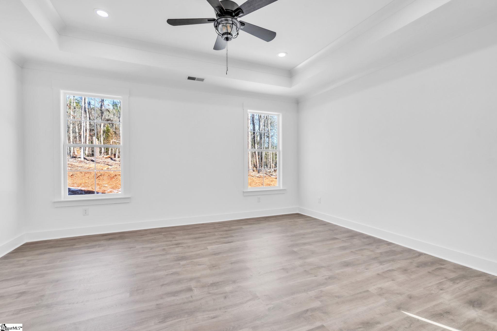 Welcome to your peaceful retreat in Woodmear subdivision! Nestled on a serene .99 of an acre lot, this stunning Silver Plan home offers over 2,830 sq ft of luxurious amenities. Featuring 3 bedrooms and 2.5 baths on 1st floor another full bath upstairs with 2 more large rooms this beautifully crafted residence showcases quality construction by Southern Homes & Associates. The exterior boasts charming vinyl siding on front, and the front door will be stained the color of the columns. The porches are complemented by craftsman columns on the front and back, along with attractive stone accents. Inside, you'll find an inviting foyer adorned with crown molding and wainscoting, leading to an open-concept layout filled with natural light. Enjoy the elegance of luxury vinyl plank flooring throughout, with hardwood treads on the stairs. The Great Room features vaulted ceilings with wood beams and a cozy corner fireplace, perfect for gatherings. The gourmet kitchen is a chef’s delight, equipped with shaker-style white soft-close cabinets, a stylish backsplash, and a white apron farm sink. The raised bar seamlessly connects the kitchen to the Great Room and Dining Room, ideal for entertaining. The primary suite offers a trey ceiling and a luxurious en-suite bathroom, complete with his and her separate vanities, linen cabinets, and a spacious dual-head ceramic tile shower with a glass door. Additional features include ceramic tile in the bathrooms and laundry room, 9-foot ceilings, and ample windows throughout. Step outside to your covered back porch enjoy your morning coffee and soak in the tranquility of the woods at back of the property. This home is complete and ready to close!