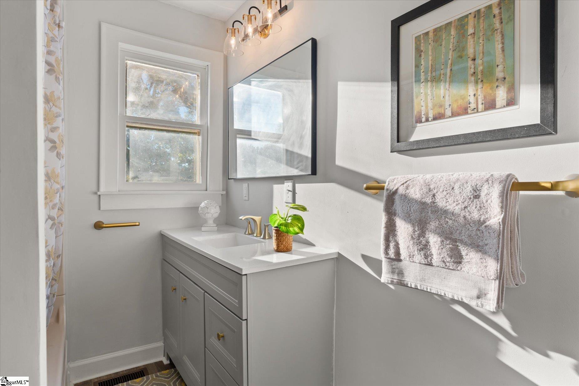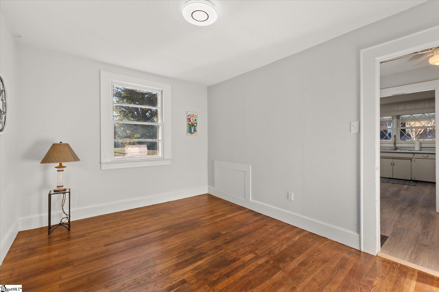 This house will charm your socks off. Located in the up-and-coming Wellford community. Spectacular location, one you do not want to miss. The home has been recently renovated and has great curb appeal. It features 2 beds and 1 bath but does have some extras that I think will appeal to you. Let's take a closer look. The property is just shy of 1 acre. It has a flat chain-link fenced front yard. The gate leads you up to the front of the house, which has a very large rocking chair front porch with newly added columns to add to the country charm. The roof has been replaced with a brand-new metal roof. You enter into the den, a cozy room with a stone fireplace with a new mantle; the floors have been replaced with updated luxury planks. This will be your hangout room to watch movies or football games by the fire. The kitchen has an eat-in table and chairs in the middle of the room with new counters and updates to the cabinets with paint and new hardware. There is a brand new stainless fridge and stove that do stay with the home. There is a laundry area set up for an electric washer and dryer. The full bath has been renovated with a new cabinet and countertop. Then there are two spacious bedrooms, both with closets and refinished original hardwoods. One would make a great primary bedroom, and the other could be your work-from-home office. Let's head downstairs to the basement. A large unfinished space you could finish out, or you may just want the extra storage space with the luxury of not having to go outside; it does have its own exit door. You will love the 1-car extra-deep garage complete with electric door opener. The perfect spot to park your baby and work on it whenever you like would make an awesome workshop. This place is a winner with a newer water heater, new HVAC, new roof, new paint, updated and replaced floors, new lighting throughout, updated electrical, and more. So what are you waiting on? Let's set up an appointment, and take a look for yourself before someone else beats you to it.