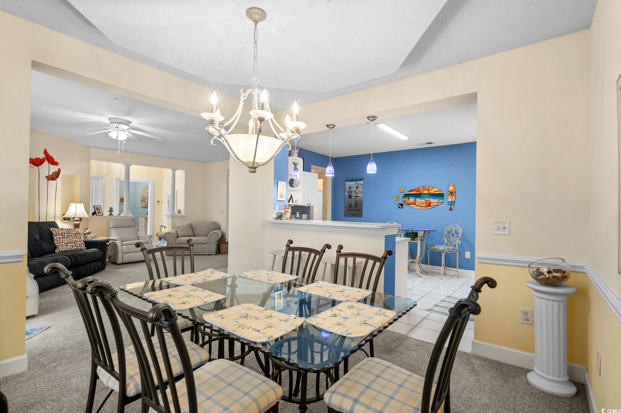 Welcome to Harbour Cove at Barefoot Resort! This stunning fully furnished 3-bedroom, 3-bath top-floor end unit offers over 2,150 heated square feet of spacious coastal living. Featuring two master suites, a formal dining room, and a large laundry room, this condo combines comfort and functionality. The kitchen is beautifully appointed with quartz countertops, while the Easy Breeze screened patio creates a perfect three-seasons room for relaxing year-round. This home also includes a private, oversized garage for added storage and convenience. Located in a quiet five-building community, residents enjoy access to Harbour Cove's private pool, the expansive North Tower pool, and the exclusive Barefoot Resort beach cabana. Golf enthusiasts will love the transferable golf membership providing access to the renowned Norman, Fazio, Love, and Dye courses. Ideally situated in North Myrtle Beach, Harbour Cove is just minutes from the ocean and the popular Barefoot Landing, offering endless shopping, dining, and entertainment options. Experience resort-style living at its finest in one of Barefoot Resort's most desirable communities!