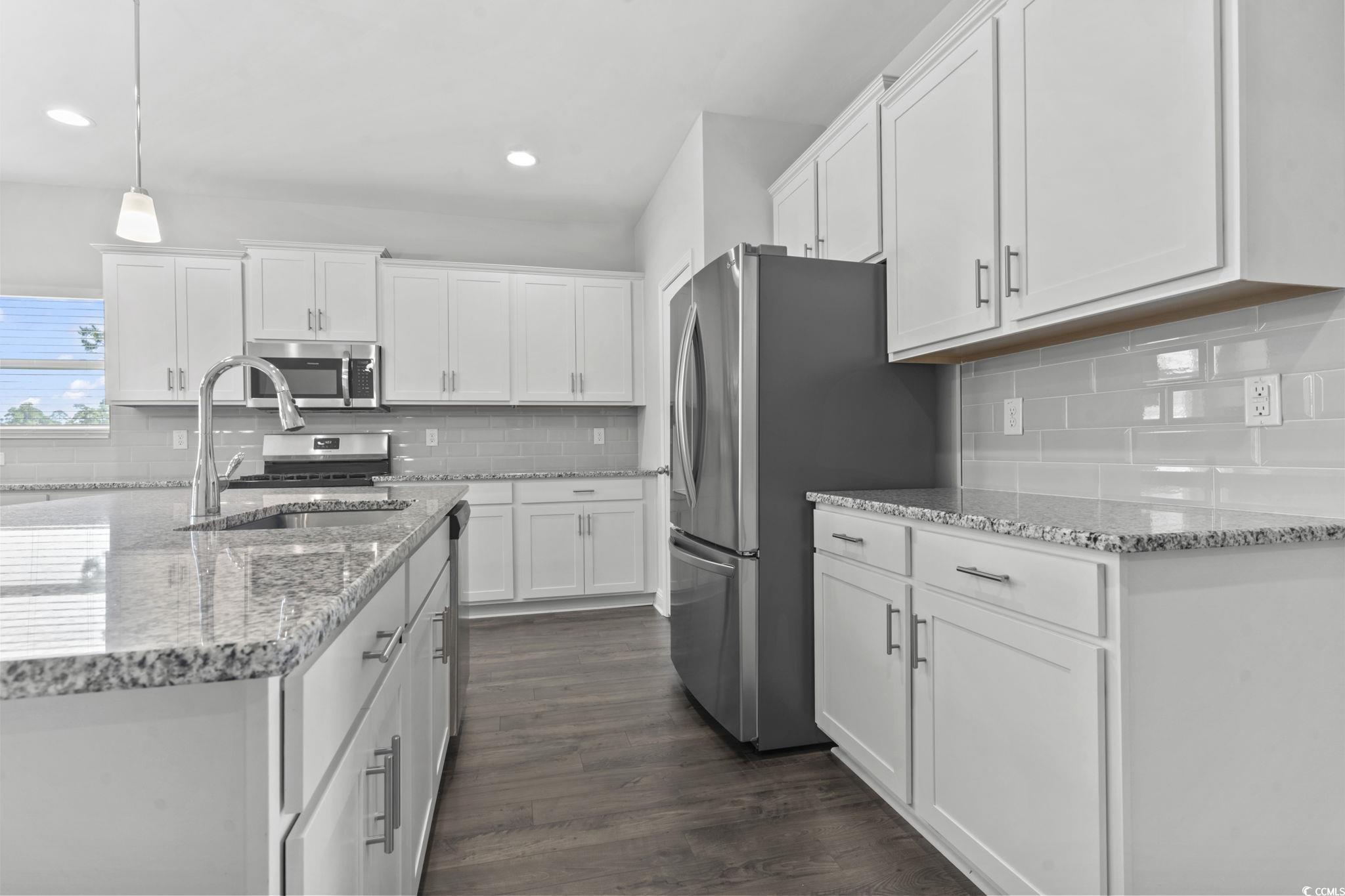 Better Than New! This immaculate 4-bedroom, 2.5-bath home offers a spacious layout with a dedicated office and versatile bonus room. The beautifully designed kitchen features stainless steel appliances, ample cabinetry, generous counter space, and a large walk-in pantry. The first-floor primary suite includes an en-suite with quartz countertops, dual separate vanities, and a walk-in tile shower. Upstairs are three additional bedrooms, a full bath with dual vanities and quartz countertops, and the bonus room. Enjoy abundant storage, a welcoming front porch, covered back porch, and fenced backyard. Conveniently located near International Drive and Highway 90 with easy access to downtown Conway, Myrtle Beach, and North Myrtle Beach. Why wait for new construction when you can enjoy all the upgrades and convenience of this better-than-new home today?