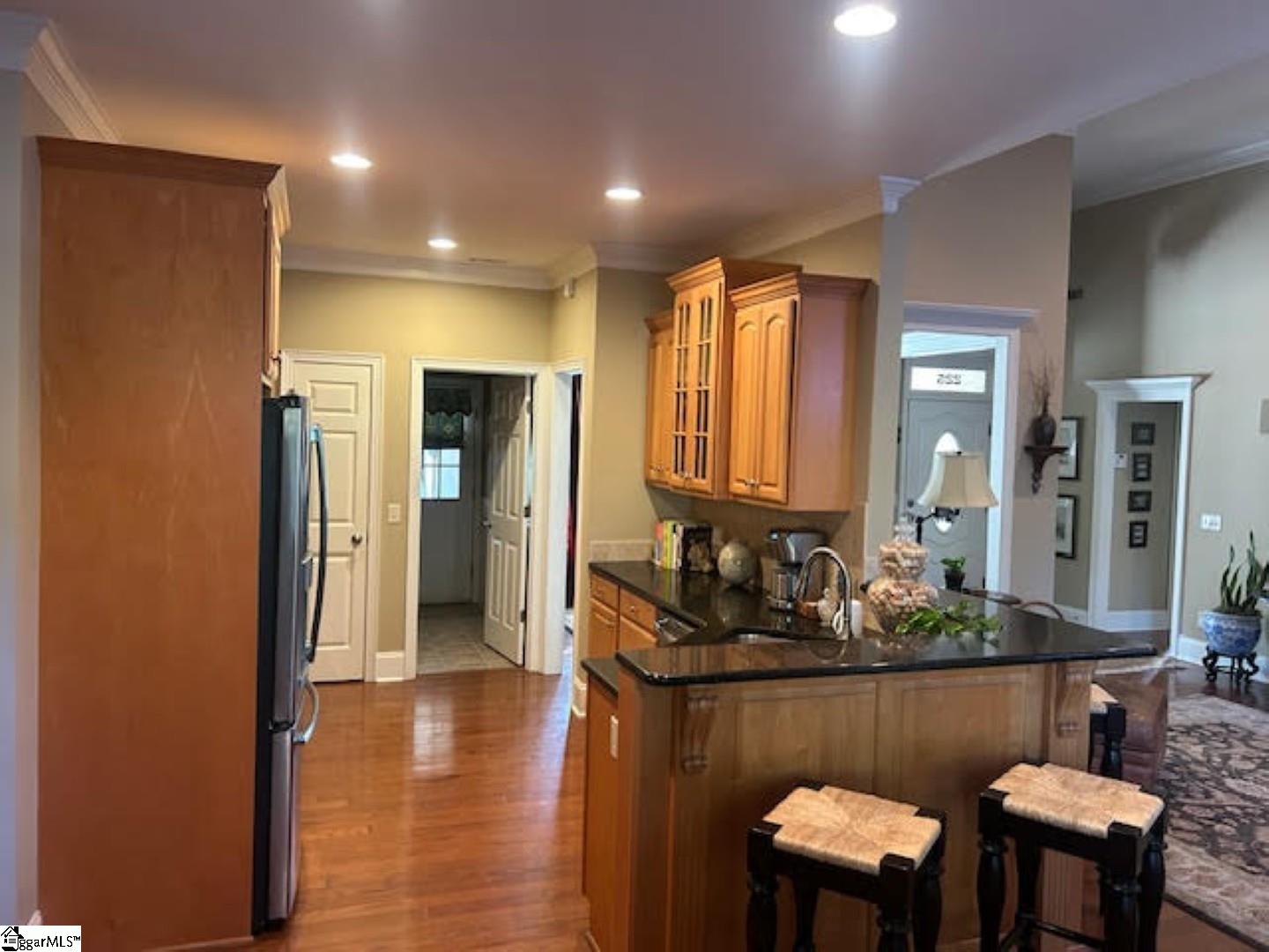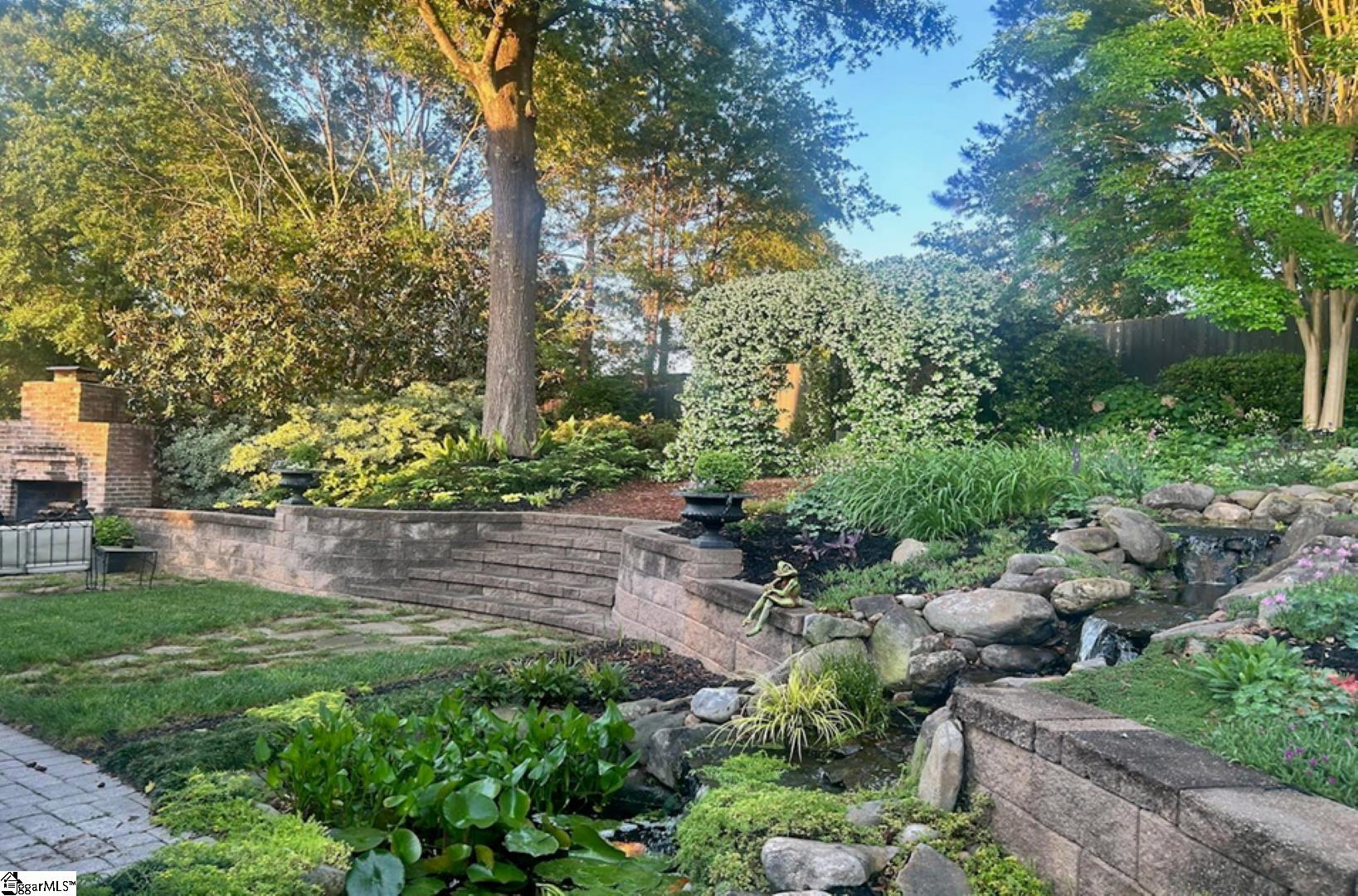 LOOKING FOR LOW MAINTENANCE- Timeless curb appeal and classic architectural style, well-appointed four- sided brick home conveniently located near shopping, restaurants, and no more than 8 miles from Downtown Greenville. HOA $200 per year. The home is spacious, 2650 sq ft with 4 bedrooms and 3 full baths with classic shutters. It sits on .25 acres. The oversized Primary suite on main level has a beautiful double tray 10 ft. ceiling with pocket door, a large bath, separate shower, soaking tub, granite countertop, double sinks, and tile floor, pocket door and a walk-in closet. Two guest bedrooms are on the main opposite side of the house with full bath. Entry to the first floor opens to foyer and family room with gas fireplace, formal dining room with 14ft coffered ceiling, breakfast room and kitchen with all stainless-steel appliances with 10ft ceilings. The kitchen has quartz countertops and breakfast bar seating, pantry, and laundry/mudroom access with tile flooring. The family/breakfast room leads to a backyard oasis with a screened porch with two flanking patios, paver walkways perfect for extended entertainment or relaxation perfect for grilling by waterfall / pond feature combo with a brick wood burning fireplace in a private fence in backyard. Upstairs is a versatile flex space with fourth guest bedroom, full bath shower/tub combo, walk in closet and bonus room with storage closet used as in-law suite. The bonus could be converted to a theater/game room/hobby room. Ease of living with hardwood floors on main floor and 2-inch wooden blinds throughout the home, Central Vac System, Home Alarm, Outdoor landscape lighting and Sprinkler System, and two (2) Trane heating and air systems for each floor and Vinyl double pane tilt windows for easy cleaning. Crown molding throughout the home. Surround sound in family room with speakers in the primary bedroom and bath and screen porch. Great location close to shopping, GSP Airport (6 miles away), Downtown Greenville (8 miles away). Bridgeway Station (2.6 miles), and Downtown Greer, (10 miles). If you like to travel, jumping onto I-85 or 385 is easy access. Schedule appointment to view by calling 864-304-8411.