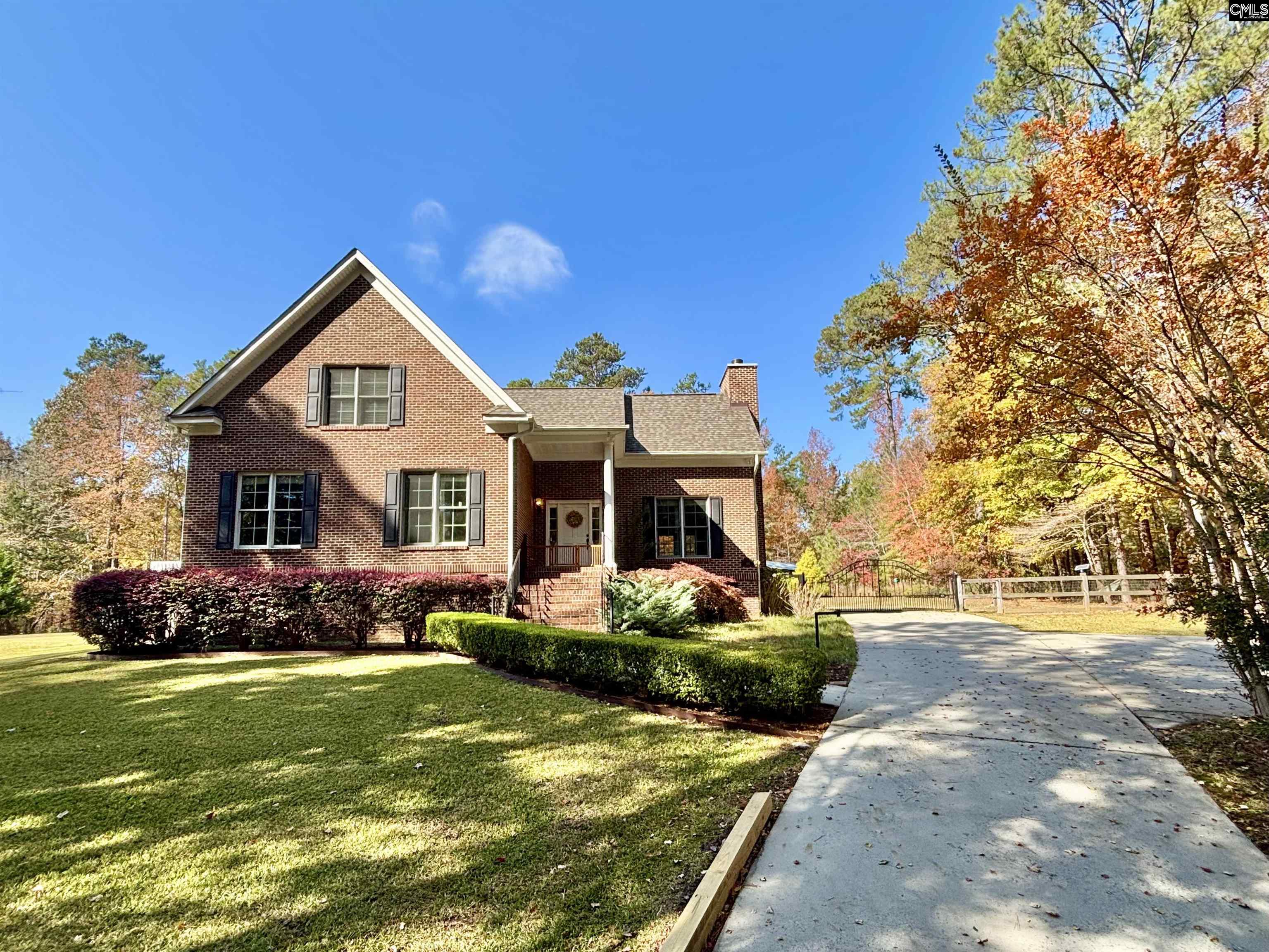 Leave the hustle and bustle behind you as you head home each day along gentle rolling hills, scenic fields, and beautiful tree lined roadways. Tucked into a quiet culdesac, the winding driveway crosses a small creek through the woods and leads to this full brick home on the top of the hill. Beautifully landscaped lawn covers the flat area at the top of the property, and a keypad opens the decorative gates leading to the 2-car garage on the back of the home. A covered front porch welcomes you inside to white oak hardwoods, 9-inch baseboards, and crown molding. The living room features a wood-burning fireplace encased in floor-to-ceiling bookshelves, recessed lighting, and French doors lead to a screened porch. Around the corner, the kitchen includes granite countertops, a smooth-top stove with double ovens, a double-drawer dishwasher, under cabinet lighting, a walk-in pantry and another small closet pantry, and access to the laundry mudroom with utility sink. The large formal dining room views the stunning autumn display through the front windows. The owner's suite on the main level features a private deck, recessed lighting, custom dual vanities and shelving, a walk-in shower and clawfoot soaking tub, a walk-in closet, and a separate bathroom linen closet. Across from the owner's suite is a full bathroom and spacious office. Upstairs, Bedrooms 2, 3, and 4 all have generous walk-in attic storage. Bedrooms 2 & 3 have skylights, and Bedrooms 3 & 4 have walk-in closets and share a Jack & Jill bathroom with private vanities. The large bonus room also features walk-in attic storage, and the upstairs hallway provides a walk-in closet. Outside, the brick patio provides seating and an outdoor stone fireplace. A fenced area around a portion of the back yard is perfect for a pet, and there's even a shed, and a chicken coop with a run! 30 minutes to downtown columbia, and just 10 minutes to the small town of Blythewood with shopping and dining. End each day with a sigh of relief as you enjoy the quiet, beautifully wooded surroundings. This is the perfect place to call your new home. Disclaimer: CMLS has not reviewed and, therefore, does not endorse vendors who may appear i