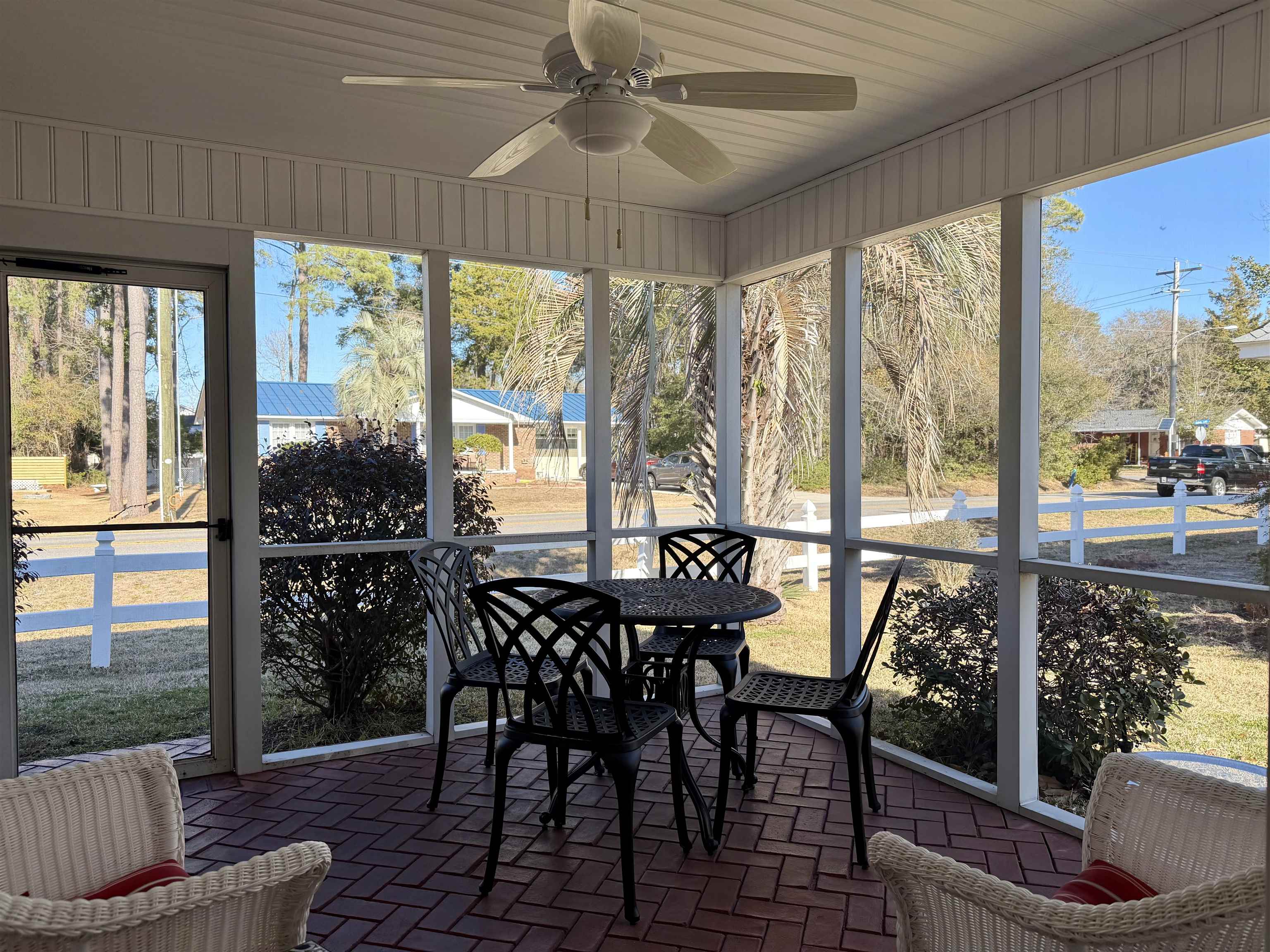 Welcome to Your Dream Home in Paradise! Nestled within the highly sought-after gated golf cart community of Oceanside Village, this meticulously maintained 3-bedroom, 2 and 1/2-bathroom residence is the epitome of comfortable living. From the moment you step through the elegant tile entry adorned with a decorative inlay, you'll be captivated by the abundant natural light that bathes the open concept living space. The heart of the home boasts soft closed cabinets, and an eat-at bar that seamlessly blends with the living and dining areas, creating an ideal space for entertaining family and friends. The double doors can be closed to the bedrooms, providing a peaceful haven for quiet time when needed Retreat to your master en suite, featuring double vanities, a walk-in shower, and a separate toilet closet for added privacy. You'll also enjoy the convenience of spacious closets to keep your wardrobe organized and accessible. Embrace the outdoors on your charming brick paver screen porch, where you can sip your morning coffee or unwind after a long day. The stamped concrete driveway and brick paver walkway lead you to your inviting entry door, enhancing the curb appeal. This home is not just a residence; it offers a lifestyle! Enjoy exclusive access to private beach parking, perfect for sun-soaked days by the ocean. Engage in friendly competition with neighbors on the bocce ball, pickleball, and tennis courts, or take a refreshing dip in the newly renovated indoor pool and hot tub. Kids will love the splash pad, and your furry friends will have a blast at the bark park! Whether you're looking for a primary residence, a vacation getaway, or an investment property, this is the place where memories will be made. Don't miss your chance to own this slice of paradise—schedule your private showing today!