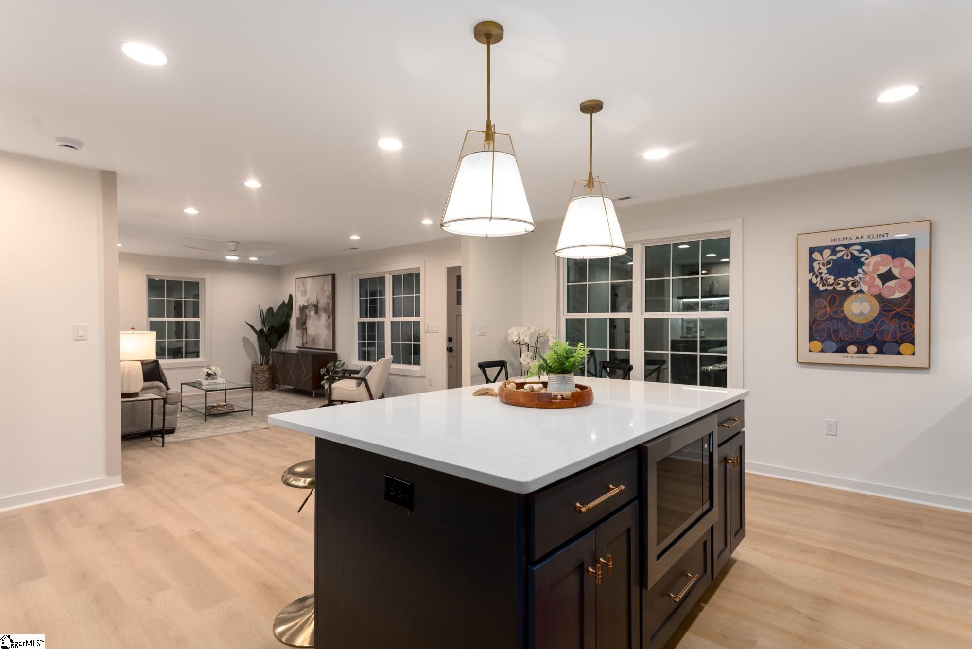 Welcome to your new home in the best location Greenville has to offer! Perfectly positioned near Cleveland Park, Downtown, Midtown, and I-385, you’re never far from everything that makes Greenville special. This home features all-new everything, but let’s start with the kitchen — truly a foodie’s dream. Highlights include a large island for gathering, a premium 36" gas range, gorgeous quartz countertops, and a dedicated coffee bar/wet bar to satisfy your morning (and evening) cravings. Under-cabinet lighting sets the perfect ambiance for cozy evenings or lively dinner parties. And right across from the kitchen? A massive butler’s pantry for all your small appliances, dry goods, and extra storage. The open-concept living room flows seamlessly from the kitchen, anchored by a beautiful accent wall that adds style and warmth. Down the hallway, two spacious bedrooms share a Jack and Jill bathroom with dual sinks and a private toilet/shower area — perfect for family or guests. Tucked just off the dining area is a dedicated home office, plus a stylish half-bath for visitors. The primary suite is a true retreat, featuring vaulted ceilings, abundant natural light, and a large walk-in closet with plenty of room for everything she could want. The en-suite bathroom stuns with custom tile work, glass shower doors, and thoughtful finishes throughout. And for the perfect start (or end) to your day, step out from the primary bedroom onto your private back deck — ideal for quiet morning coffee or evening unwinding.