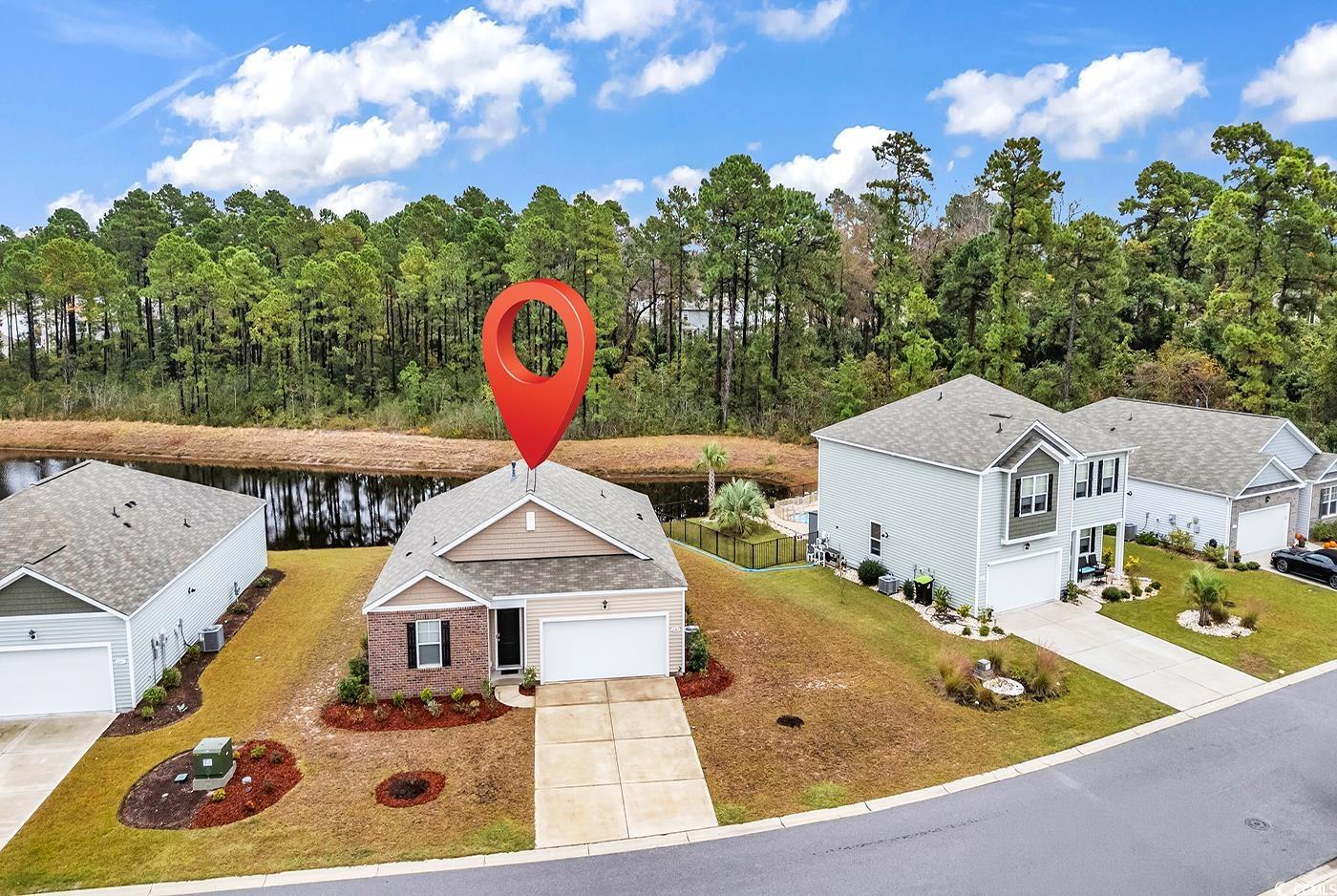Welcome to this beautifully maintained 3-bedroom, 2-bath ranch home built in 2021. Lightly lived in and used only as a vacation retreat, this home feels like new! You’ll love the open layout featuring luxury vinyl plank flooring in the main living areas and cozy carpet in the bedrooms. The kitchen comes fully equipped with all appliances. The washer and dryer are included in the utility room as well, making this home truly move-in ready. Step outside to a screened-in back porch overlooking a peaceful pond, perfect for relaxing or entertaining. Additional highlights include a spacious two-car garage and a convenient location, minutes to shopping and just 20 minutes from the beach. Whether you’re looking for a permanent residence or a low-maintenance getaway, this home offers comfort, style, and a serene setting.