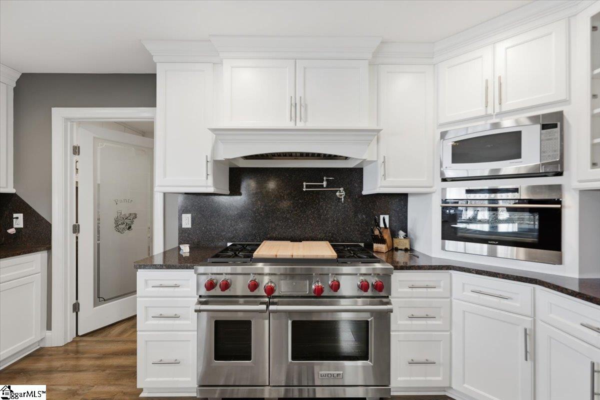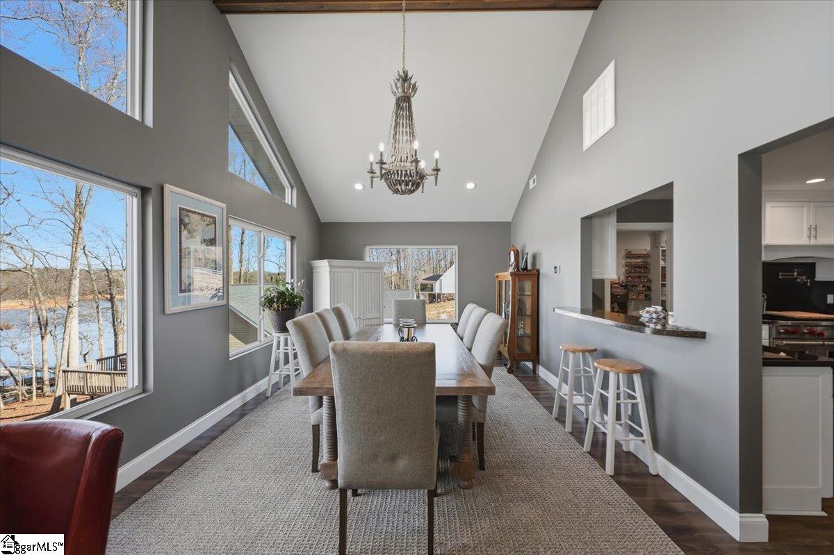 Escape to your dream lake house with deep water dock and spectacular views. This exceptional four-bedroom, three-full bathroom home is a private oasis nestled on the shores of lake Hartwell, just five minutes from Sadlers Creek State Park with easy access to I85. Perfectly designed for both relaxation and entertainment, the property is ideal for families, nature lovers or anyone looking to enjoy the serene beauty of lake living. The main level, adjacent to the attached two-car garage, includes the primary bedroom with ensuite bathroom and second bedroom with full bathroom, as well as the spacious, open-concept den, living and dining areas that boast panoramic views of the lake. The updated, gourmet kitchen is equipped with stainless steel Wolf appliances, ample cabinetry and large walk-in pantry, perfect for culinary enthusiasts. The lower level offers secondary living quarters that include two additional bedrooms with jack and jill full bathroom, large family room with recreation/flex space, kitchenette as well as access to workshop and ATV/golf cart garage. Expansive patio area overlooks the wooded, well-manicured back yard with lake front. The gently sloped, paved drive provides access to deep water dock (ranging from twelve to twenty-two feet deep depending on water levels), offering two covered boat slips with lifts (equipped with jet ski ramps), composite decking and dock lifeguard system. This cove is a fisherman’s dream, providing the winning catch for the last two consecutive Bassmaster tournaments. Don’t miss your chance to own this slice of paradise.
