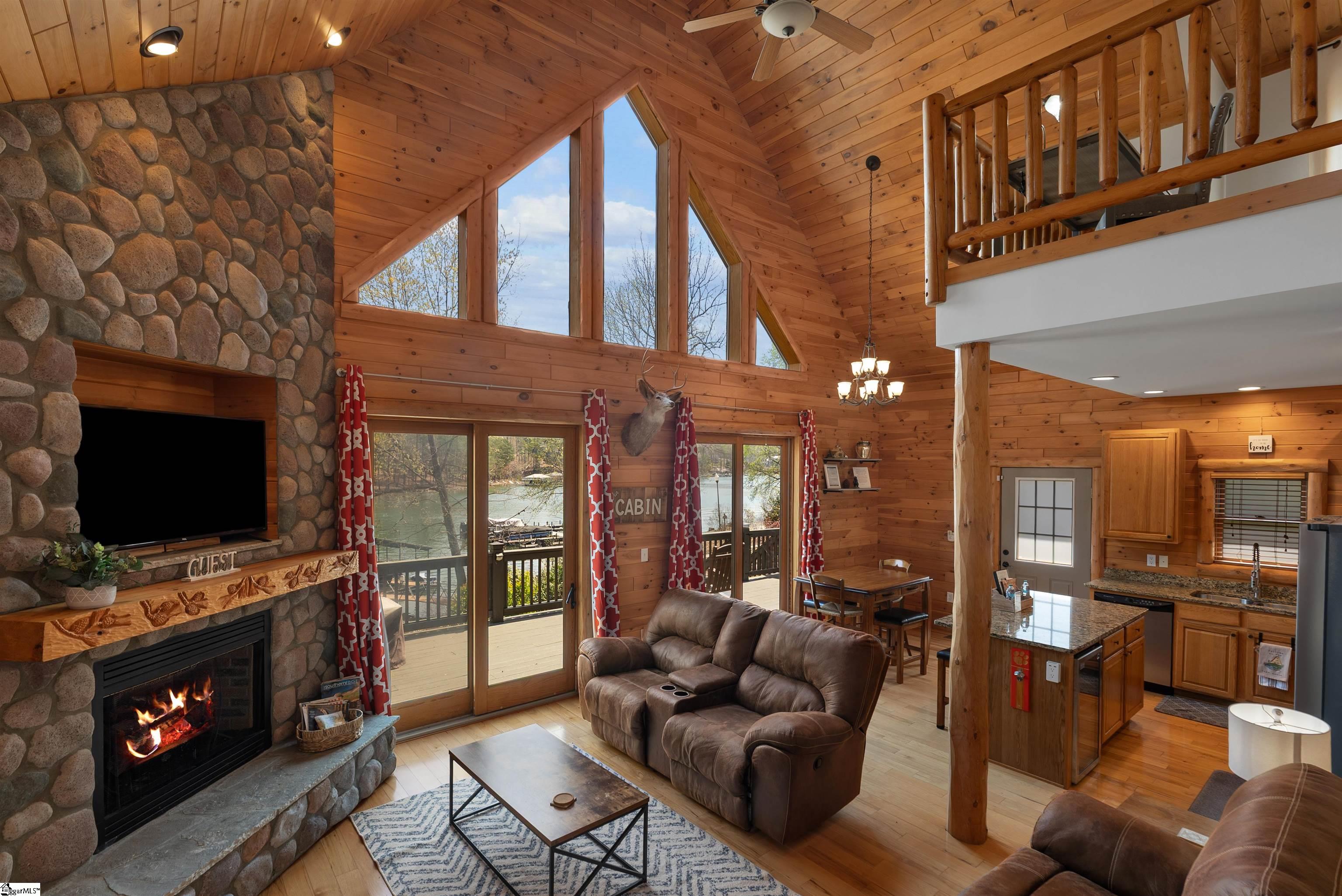 Welcome to your laid-back lake escape at 227 Serenity Bay on Lake Keowee —a warm, inviting cabin-style retreat designed for memory-making, relaxation, and effortless family fun on the water. This spacious getaway offers the perfect blend of togetherness and privacy, with a thoughtful layout that comfortably accommodates family and guests. The main level features a bright, open living area with vaulted ceilings, a cozy stone fireplace, and a well-equipped kitchen with granite countertops and stainless appliances—ideal for everything from quick breakfasts to full family dinners. One of two primary suites is conveniently located on this level, along with a laundry room and powder bath. Step outside to the expansive deck overlooking the lake, where the real magic happens. With a gas fire pit and grill already in place, you’re all set for sunset BBQs, storytelling, and s’mores from day one. Upstairs, a second private primary suite offers a peaceful retreat, along with a versatile loft space—perfect for a home office, reading nook, or game area (with high-speed internet available for work or streaming). The walkout lower level is built for entertainment, featuring a large second living/recreation space, wet bar, full bath, and additional sleeping areas. With a third bedroom and a flexible bonus room currently used as a fourth bedroom, there’s plenty of room for guests, kids, or rental groups to spread out and enjoy. At the water, your deeded boat slip (#1) with lift and dock box makes lake days simple and stress-free, while the community boat ramp adds convenience. With short-term and long-term rentals allowed, this property is not only a fantastic personal retreat but also an income-producing opportunity. Two levels of lakefront deck and patio allow you to focus on enjoying the lake life from the moment you arrive. Whether you’re looking for a weekend escape, a full-time family getaway, or a rental-friendly investment, this welcoming cabin delivers comfort, flexibility, and endless opportunities for fun on the water. Available fully furnished for a turn key experience. Start enjoying the Lake Keowee life today!