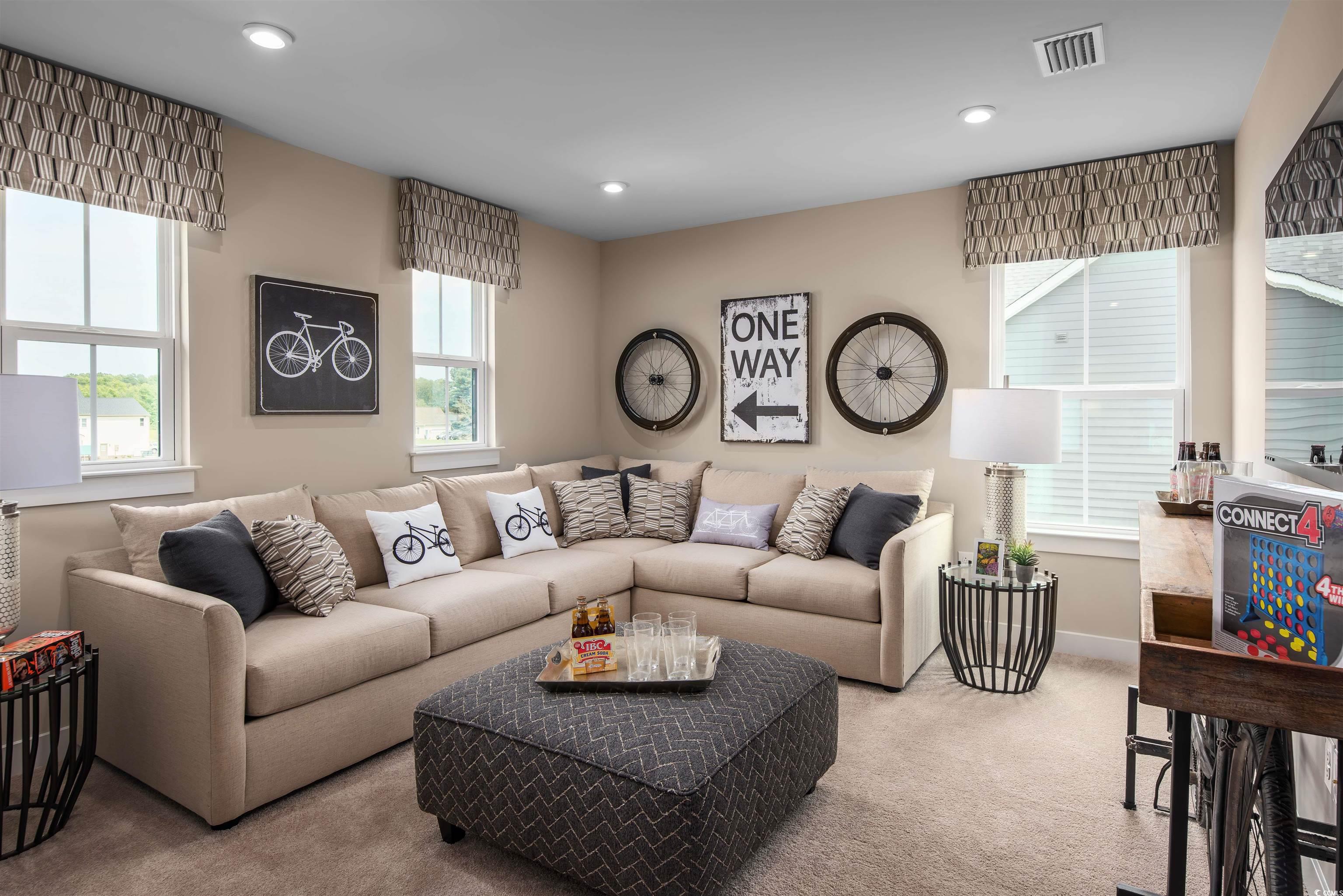 Welcome to Grande Dunes North Village, an amenity-rich, gated, waterway community with quick access to Highway 31 Bypass to easily navigate the entire beach. North Village is located within 10 minutes of the beach, Tanger Outlets, Barefoot Landing, Starbucks, Grand Strand Medical Center and hospital, Publix, and variety of family-friendly restaurants and fine dining. Once through the gated entrance, you'll quickly notice the difference in North Village. With mature landscaping and unique topography, North Village looks and feels established. When you're not enjoying the comfort of your new home, take a quick stroll or a fun golf cart ride to the on-site community clubhouse, fitness center, outdoor resort pool, pickleball courts, playground, and entertainment lawn. There are also dedicated walking trails throughout the neighborhood. When you want a change of pace, enjoy your private membership to the Grande Dunes Ocean Club, an exclusive beachfront amenity with a bar, restaurant, resort pool and hot tub, and parking to easily step onto the sand. The Lehigh single-family home combines smart design with light-filled spaces. Enter the inviting foyer, where versatile flex space can be used as a playroom, living room or office. The gourmet kitchen boasts a large island and walk-in pantry and connects to the dining and family room. Off the 2-car garage, a family entry controls clutter and leads to a quiet study.
