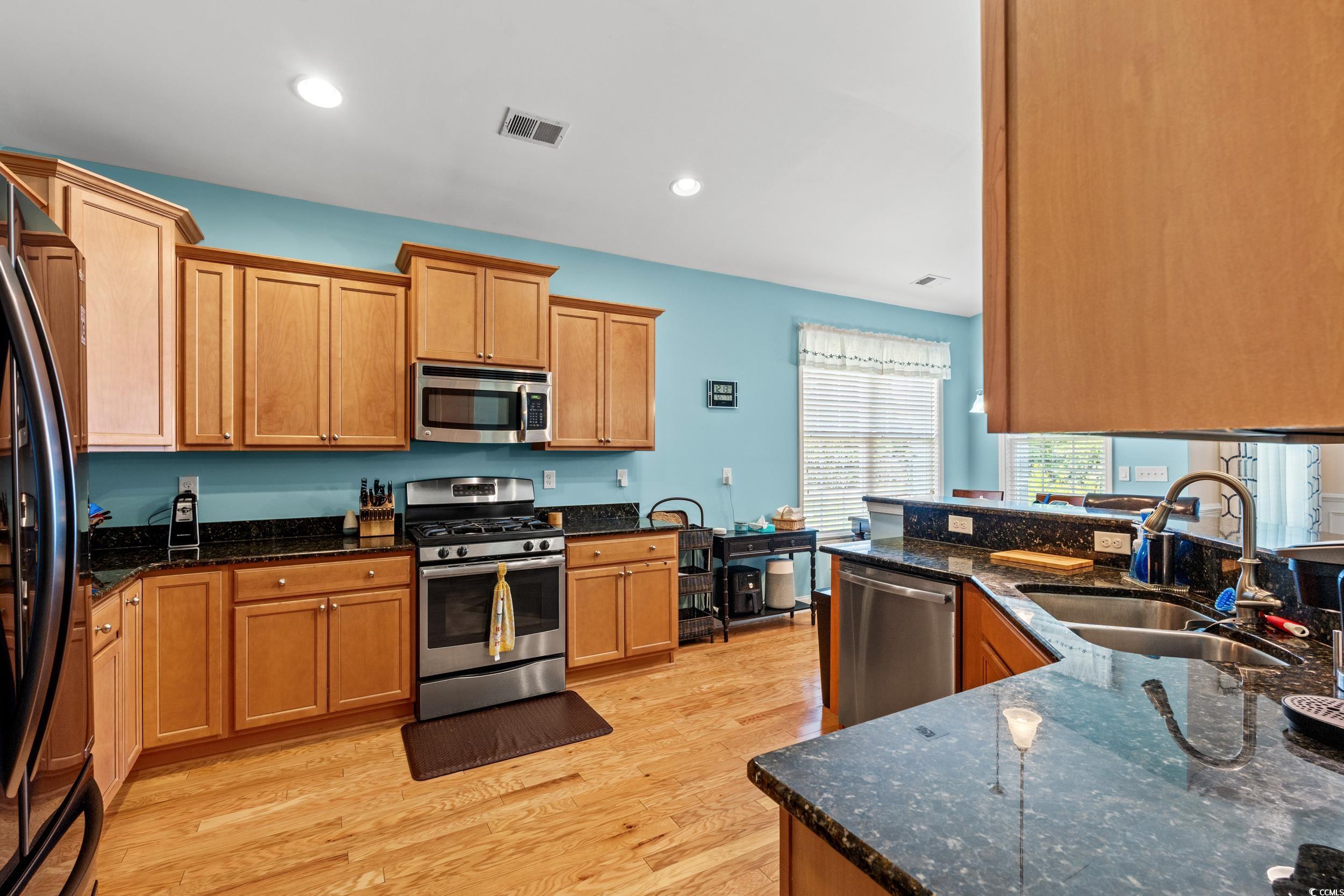 Coastal Charm in Myrtle Beach - Your Dream Home Awaits! Nestled in a desirable Myrtle Beach location, this meticulously maintained home offers the perfect blend of comfort and convenience. Imagine being mere minutes from the sandy shores of the beach, the vibrant shops and restaurants of Market Common, and the natural beauty of Myrtle Beach State Park. This is coastal living at its finest! This inviting home boasts an all season carolina room, a screened in garage, wood floors, updated appliances and so much more. The layout is ideal for both relaxing evenings and entertaining friends and family. Pride of ownership is evident in every detail, ensuring a move-in ready experience. The community itself enhances the lifestyle with fantastic amenities including a sparkling community pool, and clubhouse for social gatherings. Embrace the outdoors and enjoy the friendly atmosphere. The neighborhood's designation as a natural gas community offers potential energy savings. Plus, being golf cart friendly adds a fun and convenient way to explore the local area! Beyond the immediate neighborhood, you'll find convenient access to Myrtle beach state park, market commons, top-rated golf courses, entertainment venues, grocery stores, medical facilities and so much more. Everything you need is within easy reach. Don't miss this opportunity to own a delightful home in a prime Myrtle Beach location. Schedule your private showing today and discover the coastal lifestyle you've been dreaming of.