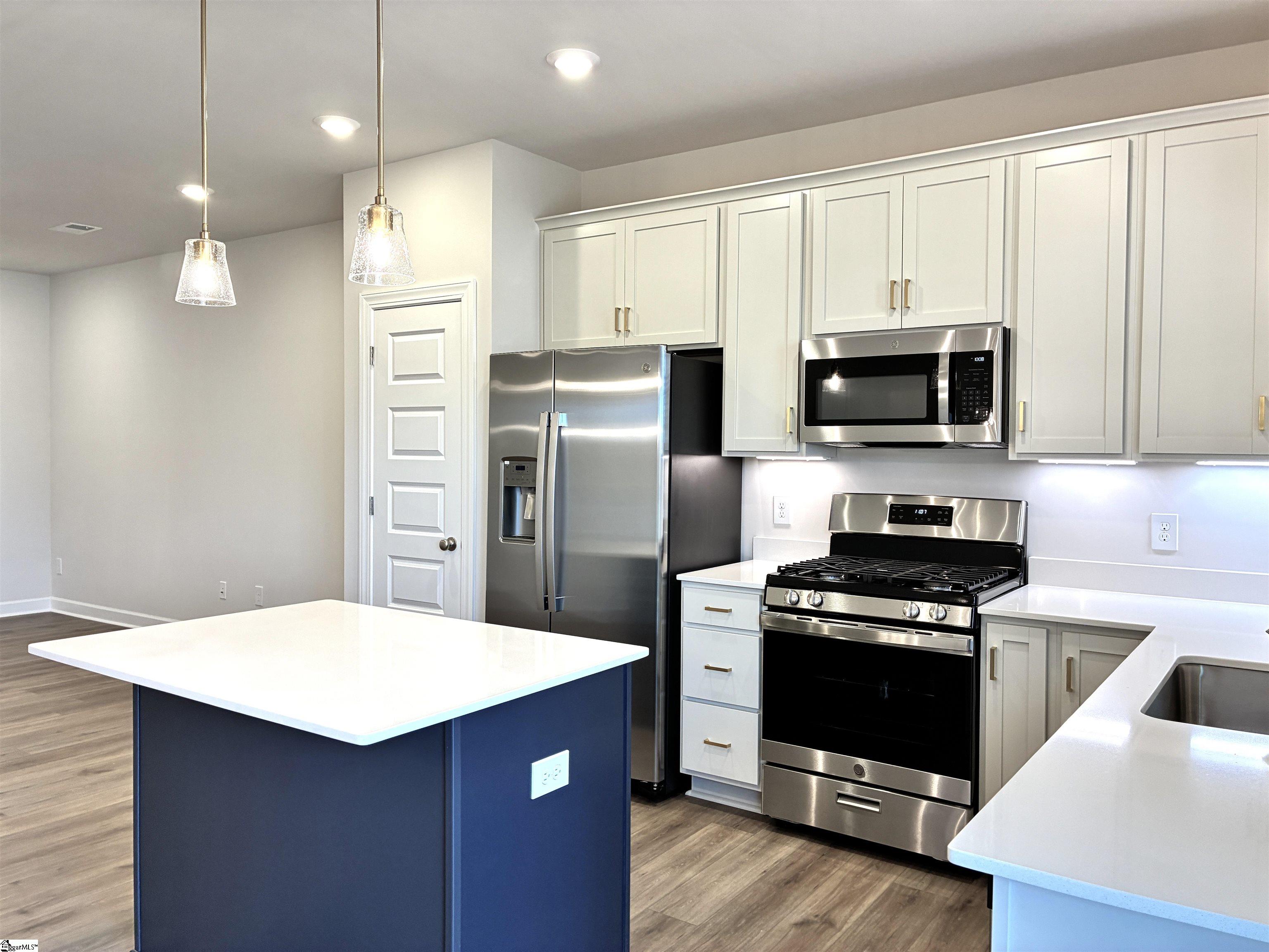 Move In Ready!...This Custom Curated Santa Barbars style Carson plan has a spacious living room with Minka ceiling fan, LED disc lights, 2” White Blinds that leads right into a lovely open concept kitchen and dining area. Sherwin Williams City Loft interior paint keeps this home fresh and light with a hint of classic sophistication. 5” wide Polaris Wild Dunes luxury vinyl plank flooring throughout 1st floor main living areas and window lined dining area lets just the right amount of light in. Kitchen includes Fulton Shell off-white cabinets, Fashion White Quartz countertops, under cabinet lighting, Satin Brass modern hardware, Pendant Lights and Fulton Harbor blue Island which creates a move-in-ready, perfectly designed kitchen for those who love to cook and entertain at the same time. GE Stainless appliances include gas range, over-the-range microwave, dishwasher and refrigerator. This 3 bedroom, 2 ½ bath includes Shaw Midway Plaza Wheat Field carpet in second floor bedrooms. Laundry room comes complete with hook up for washer /dryer and shelving for all your laundry accessories. Spacious owner’s bedroom with Tray Ceiling, Minka Ceiling Fan and walk-in closet. Beautifully designed owner’s bath has a full walk-in shower, Fulton Harbor blue cabinets, Arctic White Quartz top double vanity with white undermount sinks and Streamline Carrara White resilient flooring. Been looking to create that cozy outdoor space, well now you can on your own rear covered porch. Just the right size for an outdoor loveseat, couple of chairs, outdoor rug and voila…. Your private Outdoor Oasis!