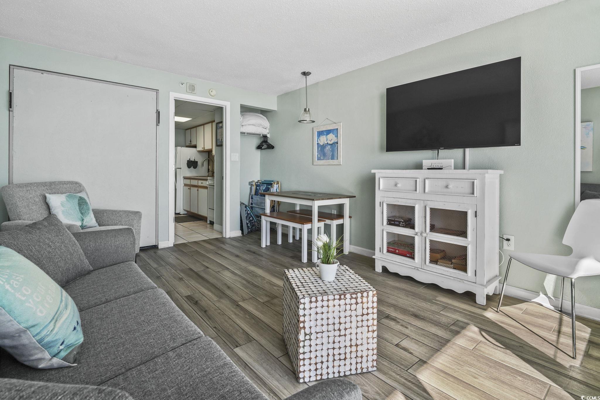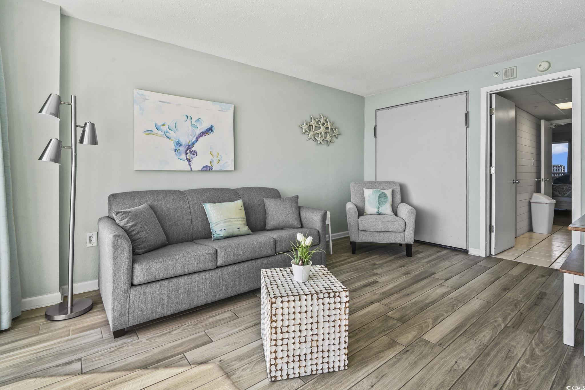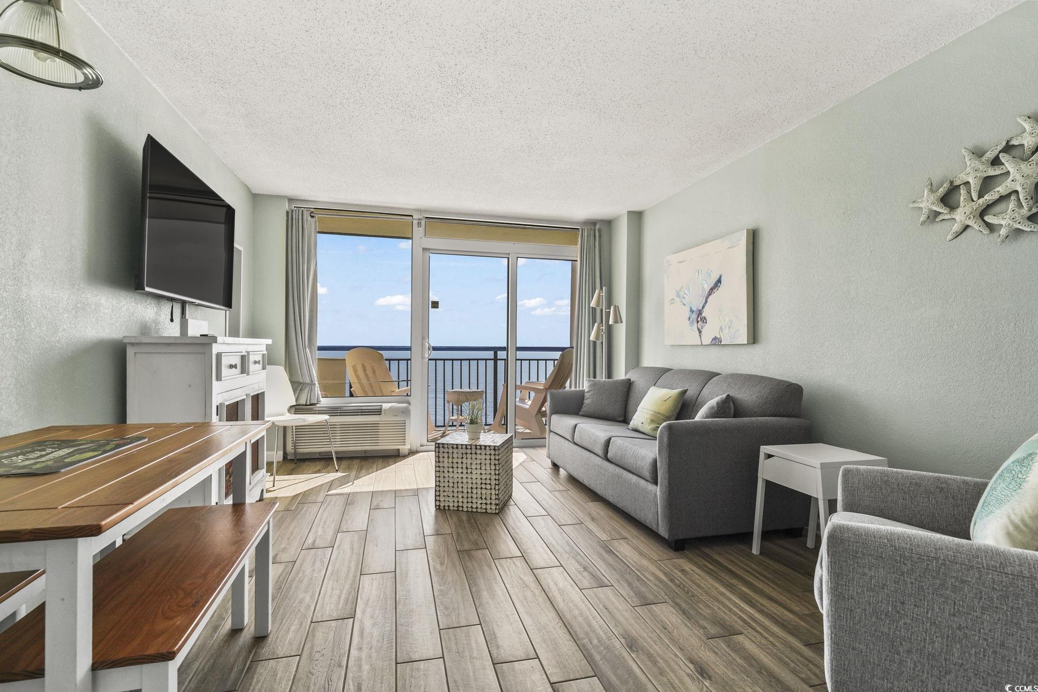 Welcome to Unit 1437 at the Boardwalk Beach Resort, a homey feel direct oceanfront condo is on the top, 14th floor offering outstanding views and dependable rental potential in the heart of Myrtle Beach. No neighbors above you, no street noise! You can only hear the waves... This fully furnished one-bedroom unit sits high above the shoreline and delivers a bright, open layout with a private balcony overlooking the Atlantic. The living area and bedroom can easily sleep six people with a king-sized bed in the bedroom, Murphy bed and queen sleeper sofa in the oceanfront room. The space is thoughtfully arranged for comfort, and the kitchen provides everything needed for easy stays. Jacuzzi tub in the bathroom is a great way to end the beach day. Boardwalk Beach Resort provides direct beach access along with indoor and outdoor pools, a lazy river, hot tubs, and one of the most convenient locations in Myrtle Beach. You are minutes away from the Boardwalk Promenade, close to Broadway at the Beach, and within short distance of the Myrtle Beach Convention Center. Parking is simple, and the building’s amenities make it attractive to both vacationers and owners seeking a low-maintenance coastal retreat. The building has strong appeal for both vacationers and owners looking for a low-maintenance coastal getaway. This top-floor unit is a rare find. Don't miss the opportunity and schedule your viewing today to experience a little slice of paradise.