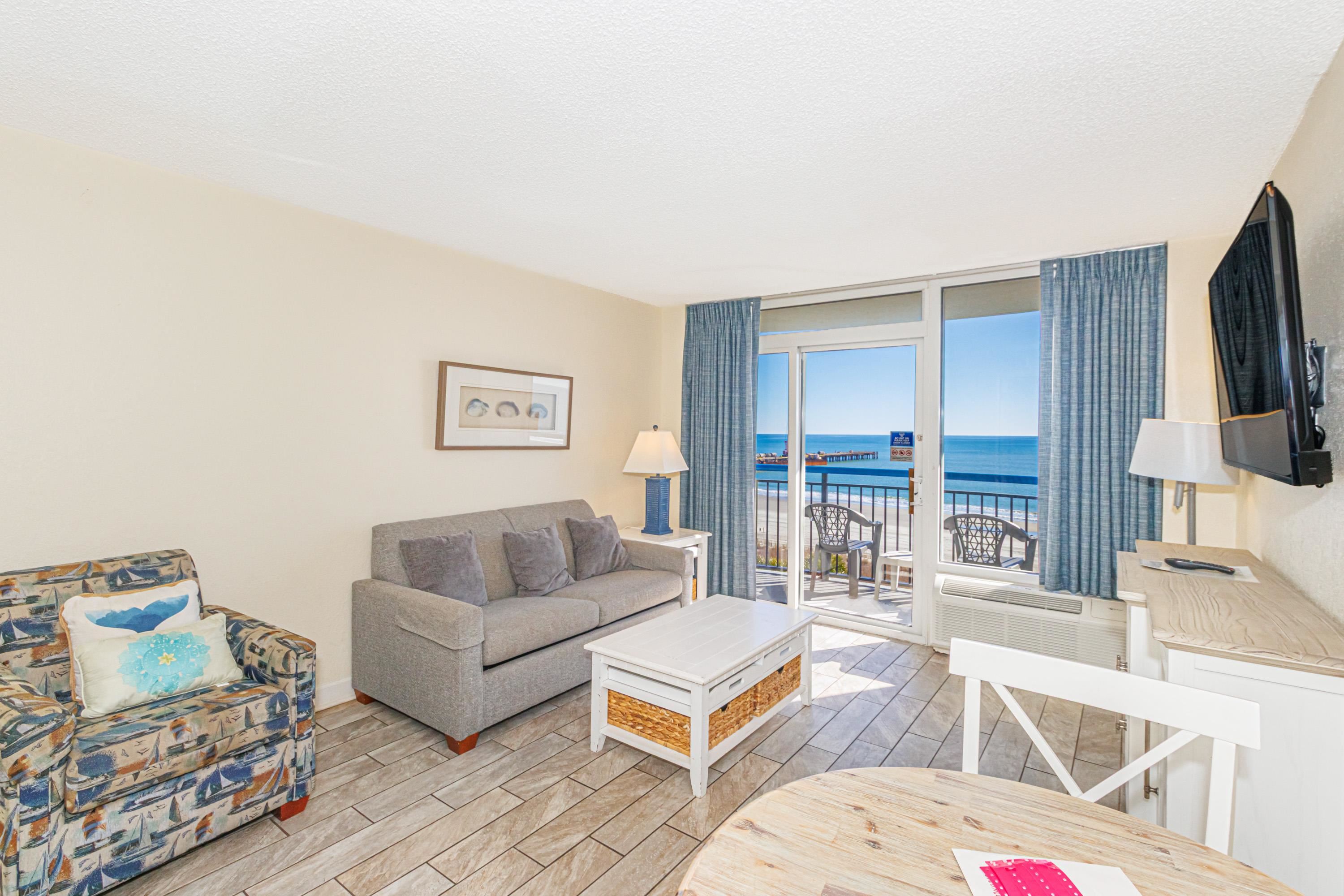 Discover one of the best oceanfront 1BR/2BA floorplans in Myrtle Beach. This highly desirable layout features a true, private bedroom, a rare second full bathroom, and two oceanfront balconies—an exceptional find for a one-bedroom condo. Ideally positioned on the 5th floor, the unit offers outstanding ocean views while still capturing the beauty of the beach, dunes, and palm trees below. The interior showcases tile flooring throughout, an updated kitchen, and is sold fully furnished and turnkey—ready for immediate enjoyment or rental. The Boardwalk Resort has seen significant and positive HOA improvements in recent years, including multiple building updates and enhancements that add long-term value. An excellent option as a second home, vacation rental, or even a primary residence, this condo is located on 23rd Avenue North, surrounded by new development and just minutes from Myrtle Beach’s top dining, entertainment, nightlife, and attractions.