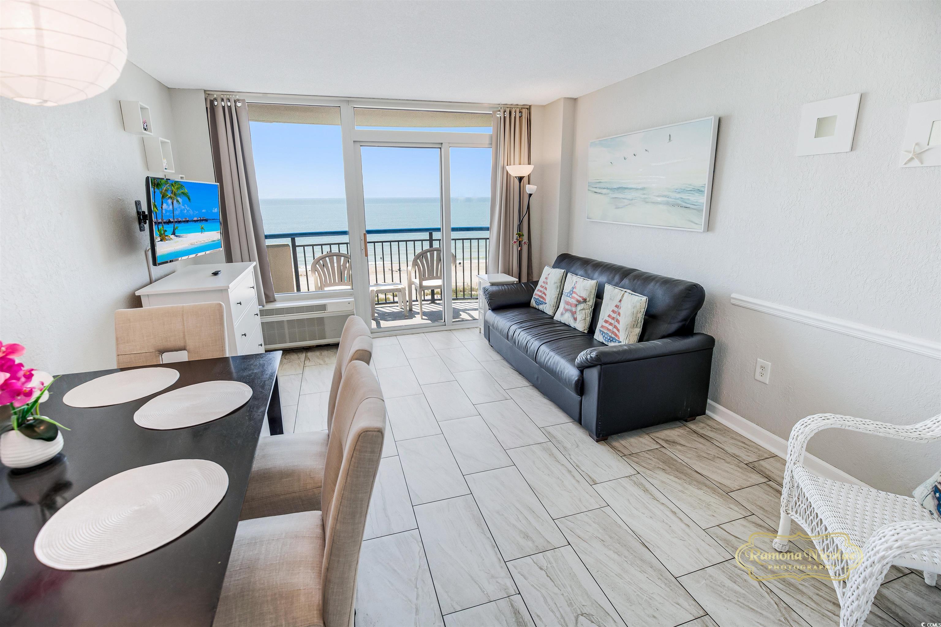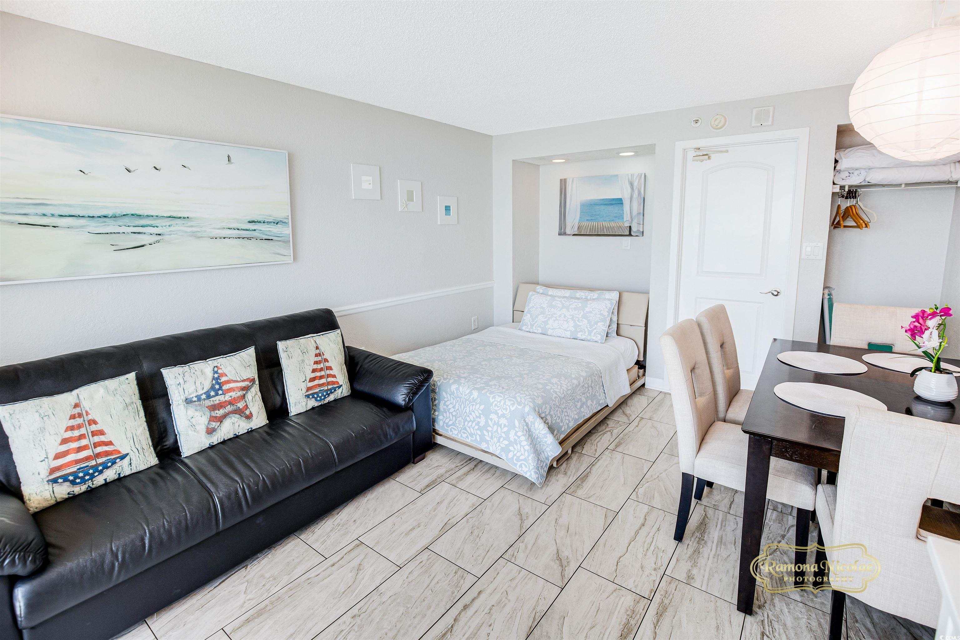 Welcome to your beautifully updated, impeccably maintained oceanfront 1-bedroom, 1-bath condo at The Boardwalk Resort—complete with the option for owner financing. This fully furnished unit offers breathtaking direct ocean views from the living area and a large private balcony where you can enjoy sunrises, sunsets, and everything in between. Step inside to find a stylish living space featuring luxury plank tile flooring, elegant décor, quality furnishings, and a convenient Murphy bed for additional guests. The kitchen is equipped with a range, microwave, refrigerator, and new cabinetry, providing everything you need for effortless meal preparation. The bedroom boasts a king-sized bed and tasteful furnishings designed for ultimate comfort. The bathroom offers a spacious vanity, walk-in shower, and a relaxing jacuzzi tub—your own private retreat after a day at the beach. The Boardwalk Resort delivers exceptional amenities, including indoor and outdoor pools, hot tubs, a kiddie pool, lazy river, and a beautifully manicured oceanfront lawn area. Step outside and you’re just moments away from the Atlantic Ocean and all that Myrtle Beach has to offer. Located in the heart of Myrtle Beach, you’ll be close to the Sky Wheel, Broadway at the Beach, the iconic Boardwalk, plus countless shopping, dining, entertainment, golf, and attractions—all at your doorstep. This condo is privately owned and managed, ensuring a personal touch. Your oceanfront paradise awaits. Enjoy your morning coffee with the sunrise and your evening cocktail with the sound of the waves. Schedule your appointment today to view this stunning, move-in-ready coastal retreat! Owner Financing is a possibility!