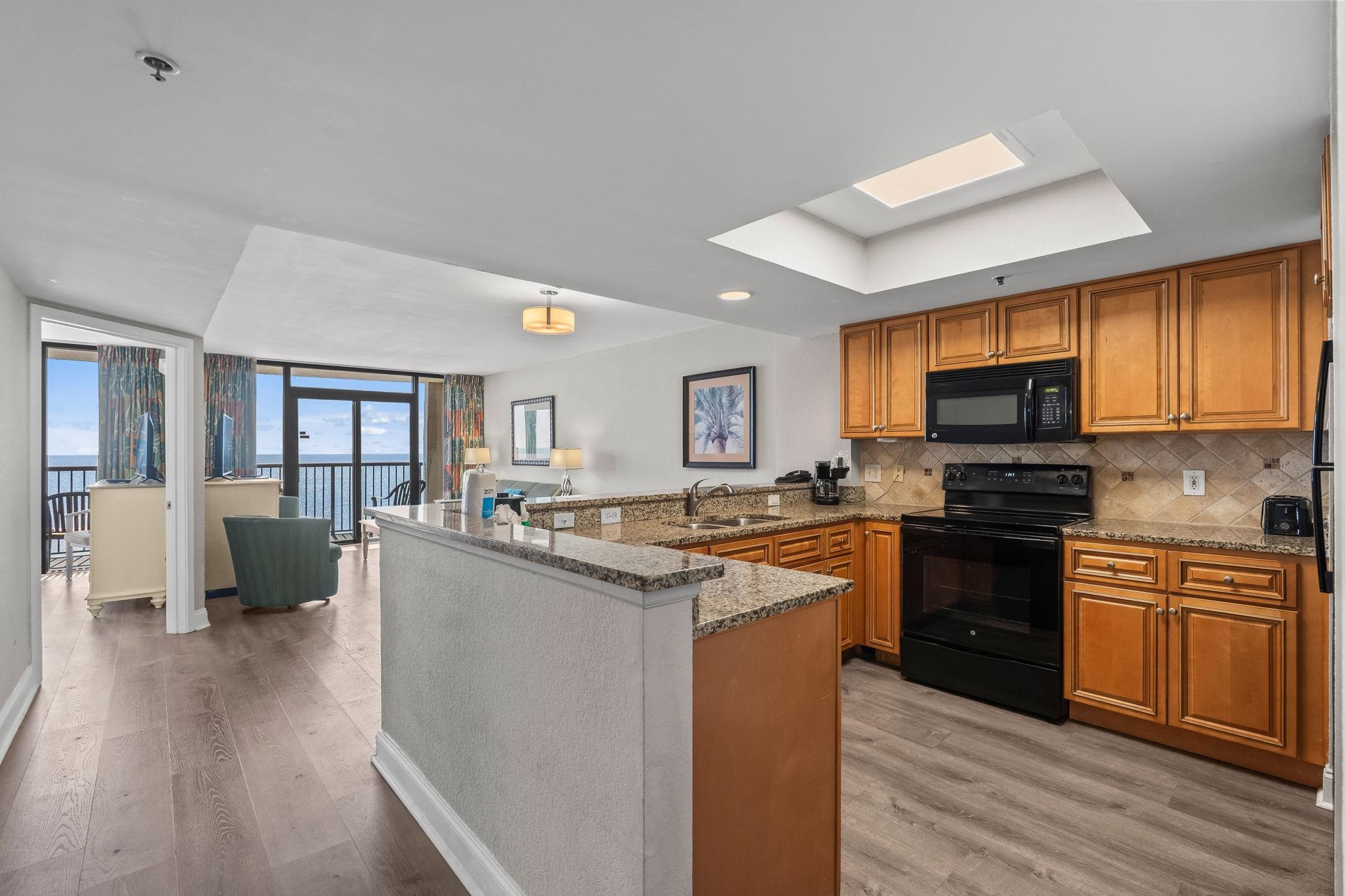 GREAT INVESTOR OPPORTUNITY! Direct oceanfront 3BR/2BA condo in Compass Cove North Tower. Located on the 10th floor, this fully furnished unit features a full kitchen with granite countertops, updated black appliances, spacious living and dining area, washer/dryer, and a private balcony with ocean views from most rooms. The oceanfront primary suite offers balcony access and a private bath. HOA includes all utilities, making it ideal for rental income or personal use. Resort amenities include indoor and outdoor pools, hot tub, lazy river, kiddie waterpark, fitness room, and onsite coffee shop. Centrally located in Myrtle Beach, just minutes to shopping, dining, entertainment, Coastal Grand Mall, the airport, Market Common, and more. Turn-key opportunity in a high-demand oceanfront resort.