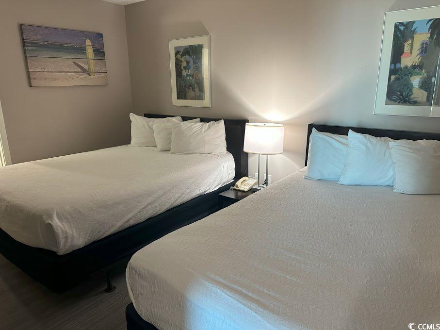 Enjoy endless ocean views from this stunning 2BR/2BA condo located in the Seaside Inn Resort in North Myrtle Beach. The unit features a pristine coastline ocean view, large private balcony and a bright open floor plan. It also offers a spacious living room, and master bedroom has (2) double beds and a jetted jacuzzi tub surrounded by tiled backsplash in the master bathroom. The second bedroom has (2) double beds as well that is great for guests or family. This unit has a new washer & dryer (2024), HVAC (2019), carpet (2023), dishwasher (2020) and the stove replaced in (2022). As part of the resort community, you’ll have access to the exceptional amenities including the oceanfront outdoor pool and hot tub, indoor lazy river and pool and hot tub, modern fitness center and seasonal breakfast room. Additionally, the Seaside Inn Resort has an on-site parking garage and enclosed corridors so you'll always be covered and out of any weather elements. All with only a few steps to the beach and ocean. HOA includes all utilities, building insurance and HO6 contents insurance. Don’t miss your chance to own your dream escape. Schedule a showing today!