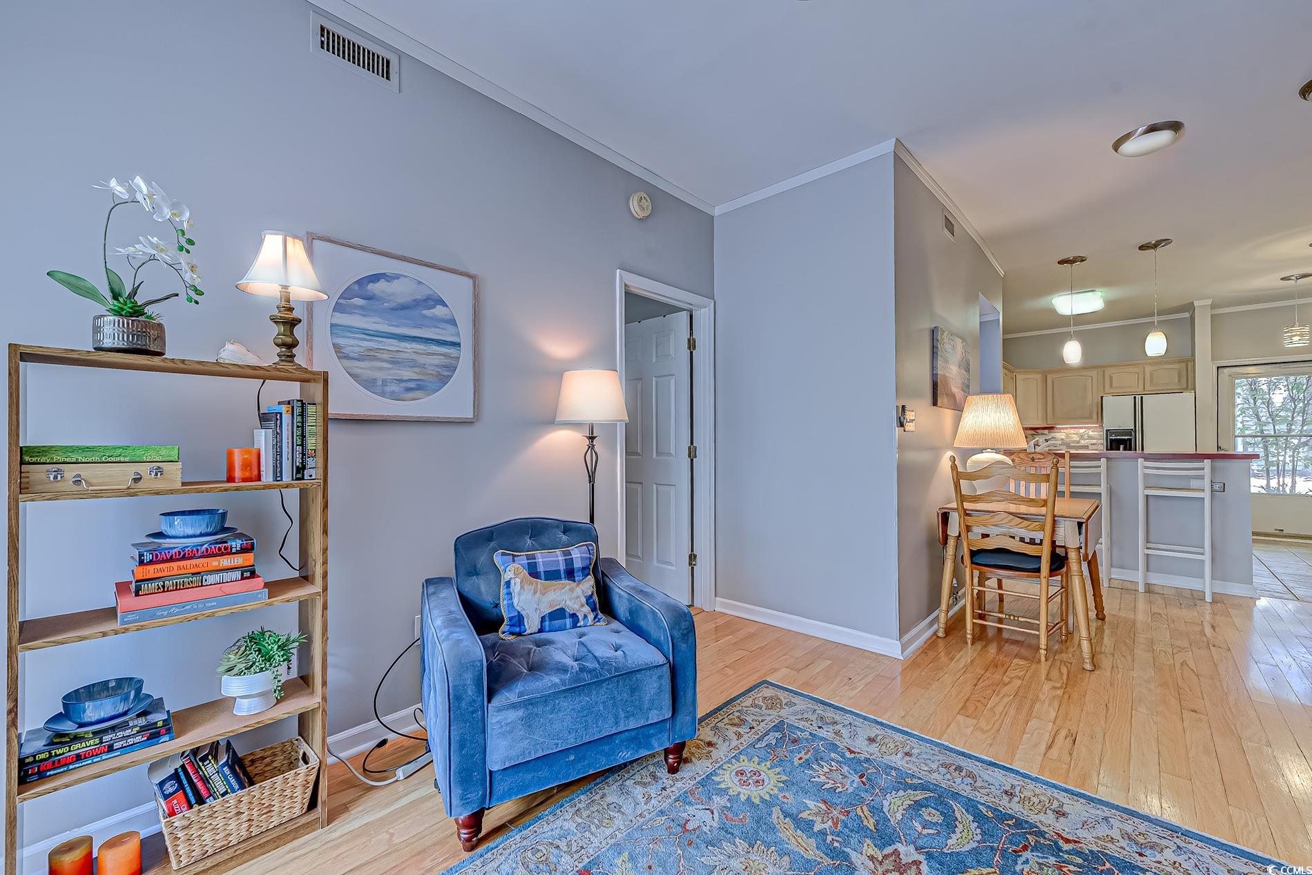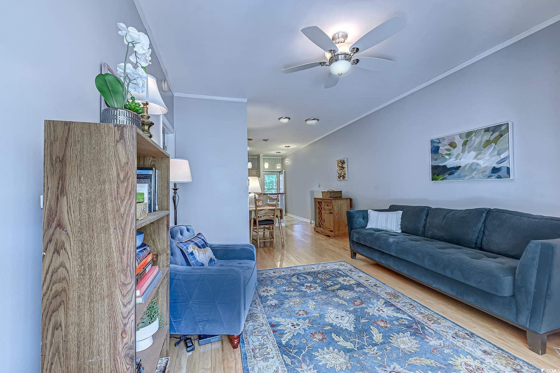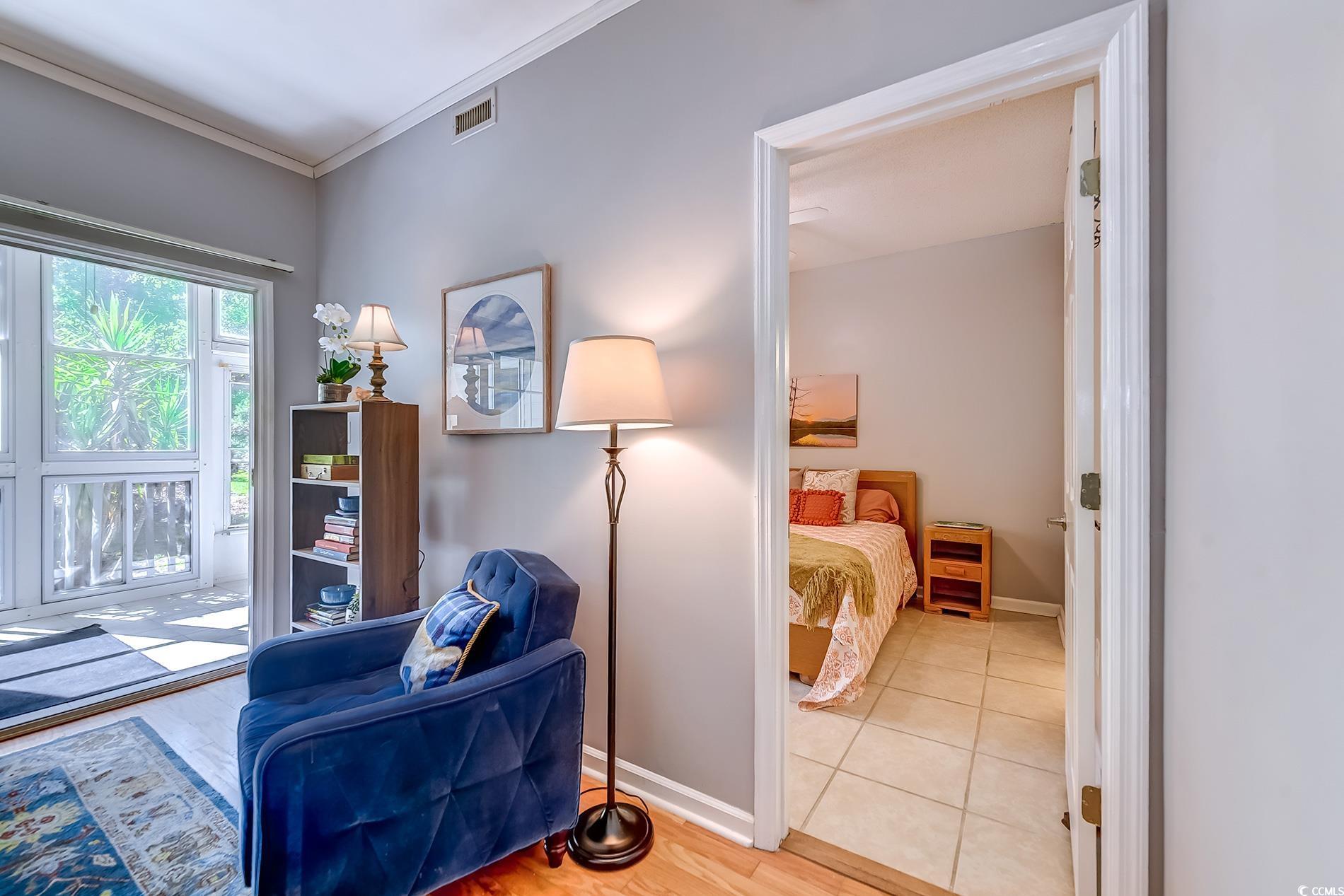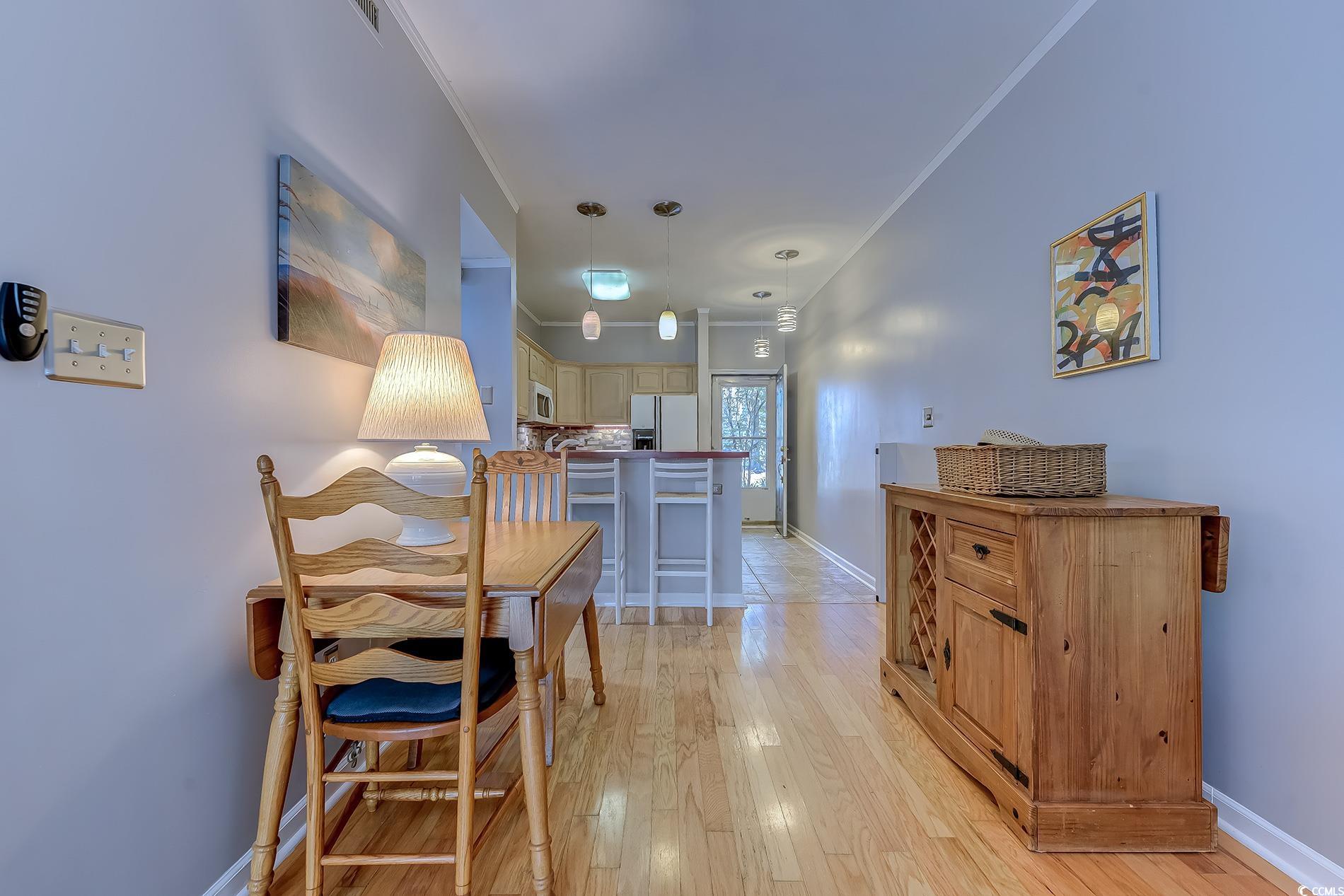 Move-in ready 2 bedroom, 2 bath condo in the popular Sweetwater community in Murrells Inlet. This 1st floor single level unit is just steps away from the saltwater pool and nestled among lush green landscaping. Located approximately 3 miles to the beautiful blue Atlantic, with newer HVAC (2020), new hot water heater, dishwasher, garbage disposal (2025), and newer walk-in shower. This condo features an open floor plan with attractive wood floors and tile throughout. Spacious living room with ceiling fan and dining area. Kitchen with white appliances, natural cabinets, backsplash, tile floors, and breakfast bar with pendant lights. Laundry area with stackable washer & dryer. Split bedroom plan with primary bedroom with ceiling fan and walk-in closet overlooking the nicely landscaped backyard. Primary bath with large walk-in shower with seat. Good sized guest bedroom at the front of the condo with ceiling fan and window and guest bath with shower/tub. Sliding glass doors from the living room lead to a spacious screened porch with windows overlooking the backyard and just a short walk to the pool. This 3-season room will be a favorite spot to start your day and sip your favorite morning beverage or end your day enjoying those delightful evening breeze! An attached storage room on the porch will provide space for all your beach chairs, umbrellas, golf clubs and all those extra items! Great amenities including swimming pool, tennis court, and optional boat storage for an additional fee. Conveniently located to the beach and close to shopping, restaurants, endless golf, hospitals and the Murrells Inlet Marshwalk. Call today for an appointment to see. You will not be disappointed. Nothing to do but move right in! Square footage and measurements are not guaranteed. Buyer is responsible for verification.