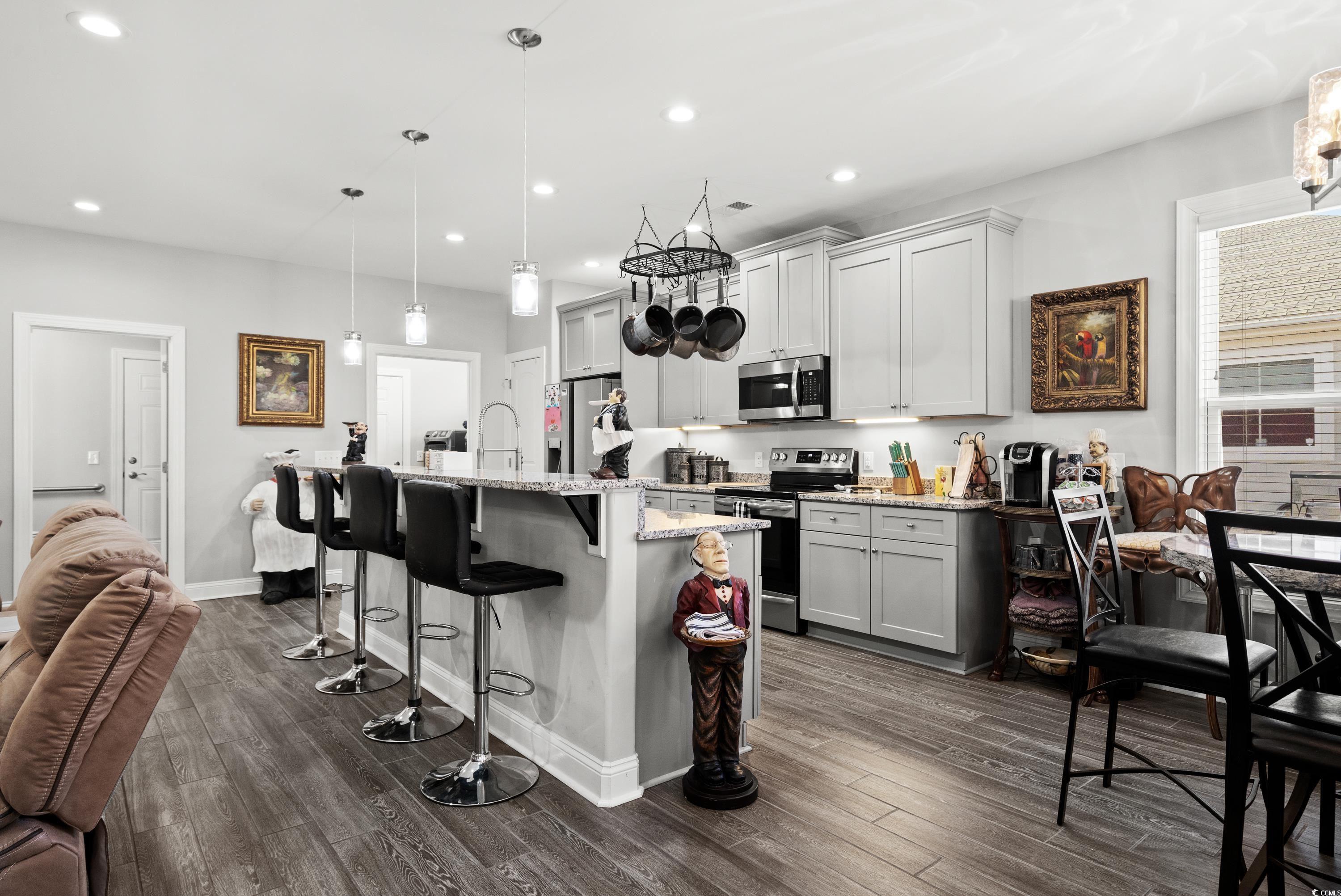 FANTASTIC LOCATION, NO HOA, ENCLOSED GARAGE WITH HIGH END KITCHEN DESIGNED FOR ENTERTAINING! Welcome to this delightful 3-bedroom, 2.5-bathroom home located in the highly desirable Forest Park neighborhood. Offering a perfect blend of comfort, functionality, and charm, this property comes with the added benefit of no HOA restrictions, giving you the freedom to truly make it your own. Step inside to discover a thoughtfully designed floor laid out with high end ceramic tyle throughout the entire home, highlighted by a spacious open-concept living area that seamlessly connects to the dining room and kitchen. The kitchen is a chef’s dream, featuring modern appliances, abundant cabinetry, and generous countertop space, ideal for preparing meals and entertaining. The breakfast bar is perfect for those quick mornings. The adjacent dining area creates a warm and inviting space for family gatherings or casual meals. The primary suite serves as your personal retreat, complete with a large walk-in closet and a private en-suite bathroom featuring dual sink vanities and modern finishes including am impressive tiled walk-in shower. Two additional bedrooms provide ample space for family members or guests. A convenient half-bathroom adds extra functionality to the layout, making this home perfect for everyday living and entertaining. One of the standout features of this home is the converted garage, which has been transformed into a versatile recreation room with a complete industrial style kitchen. Whether you envision it as a home theater, a gym, a home office or a playroom, this space provides endless possibilities to suit your needs. For those seeking additional storage, the property includes a large outdoor building/ golf cart garage perfect for tools, lawn equipment, or seasonal decorations. Outside, the home continues to impress with a serene setting where you can unwind at the end of the day and listen to nature. The property is equipped with a whole-house generator, providing peace of mind during power outages and ensuring year-round comfort and security. Located in the quiet and friendly Forest Park neighborhood, this home is conveniently close to the great blue Atlantic, parks, shopping, dining, and entertainment that Cherry Grove in North Myrtle Beach is famous for, yet it maintains a peaceful, suburban atmosphere. With its combination of practical features, spacious living areas, and charming details. Don’t miss the opportunity to make this exceptional home yours. Buyer is responsible for verification.